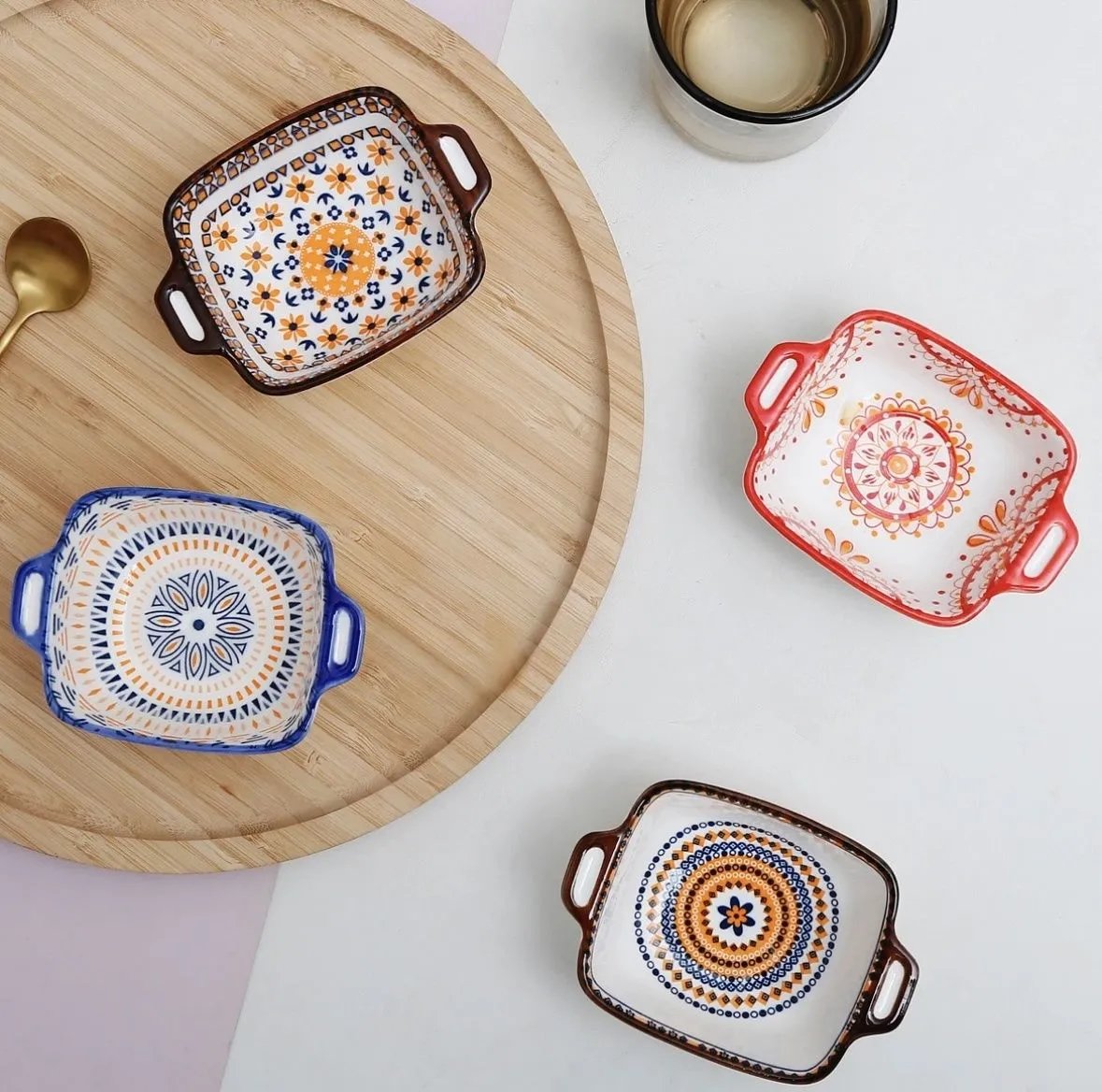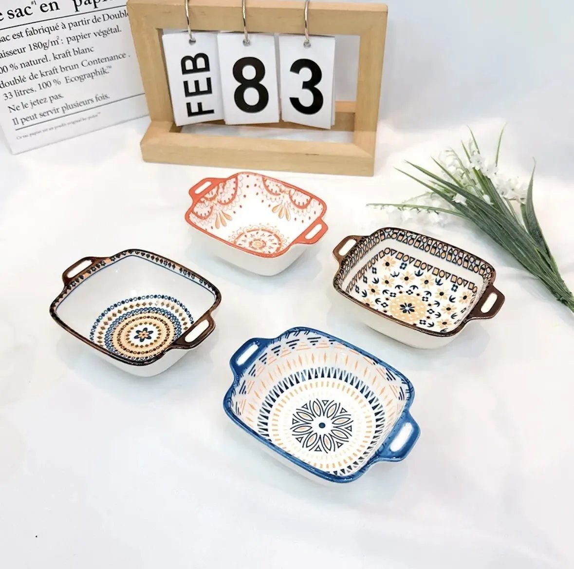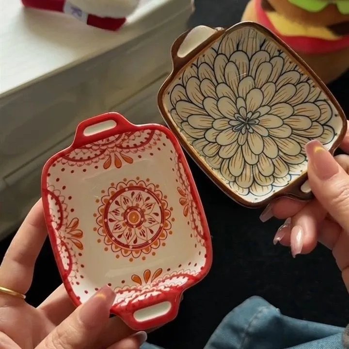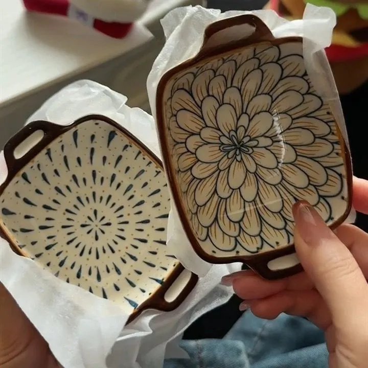 ✨【方形双耳款】 🔥方形设计+双耳小把手,防烫又防手滑 🌟异域风花卉纹,每一眼都像掉进艺术展! ✅ 花色随机发!每次拆箱都和开盲盒一样心跳加速! ✅ 收到无重复图案!你的盘子就是朋友圈独一无二的C位! ✅ 隐藏款概率掉落!传说中有海外专柜标价199元的限量设计款混入其中!