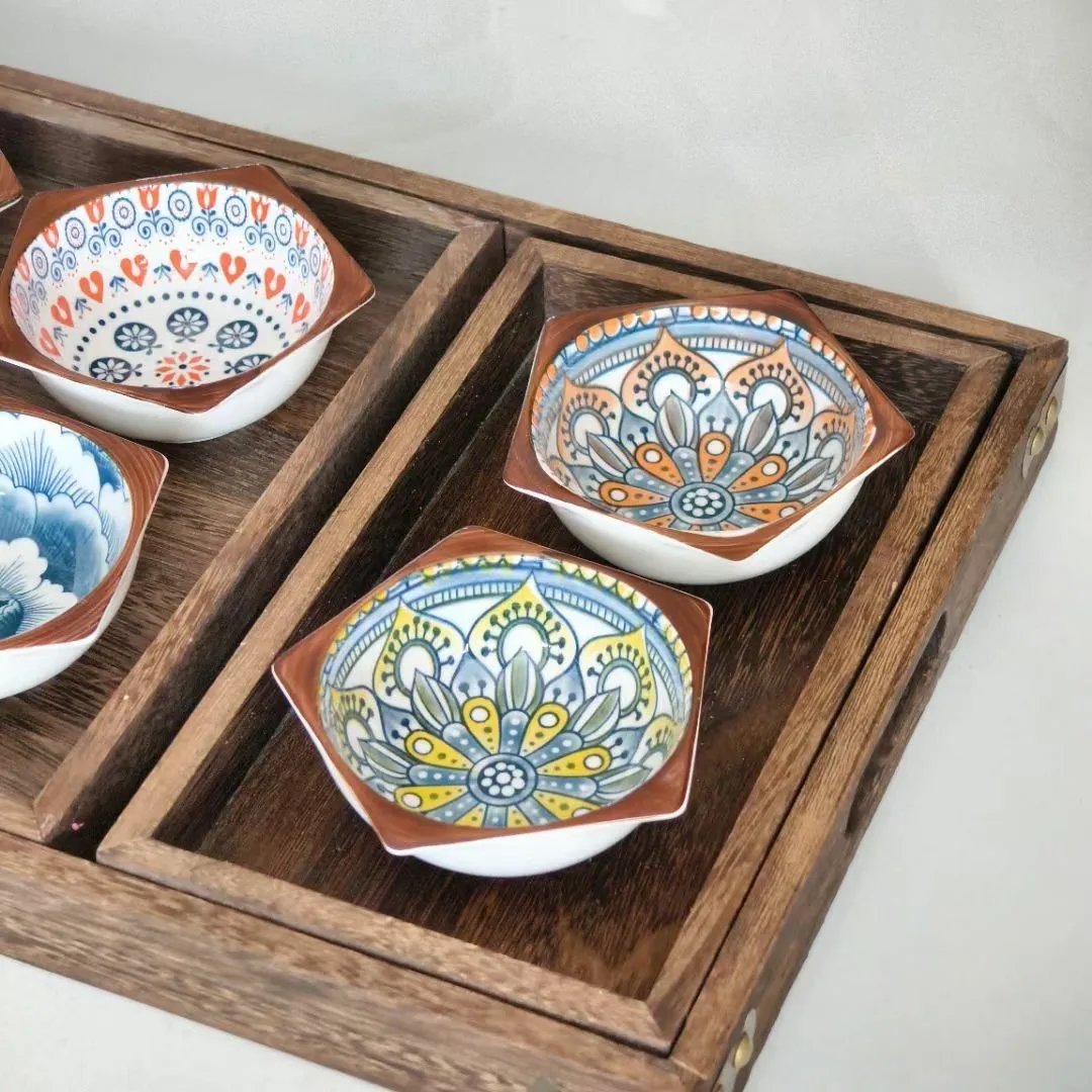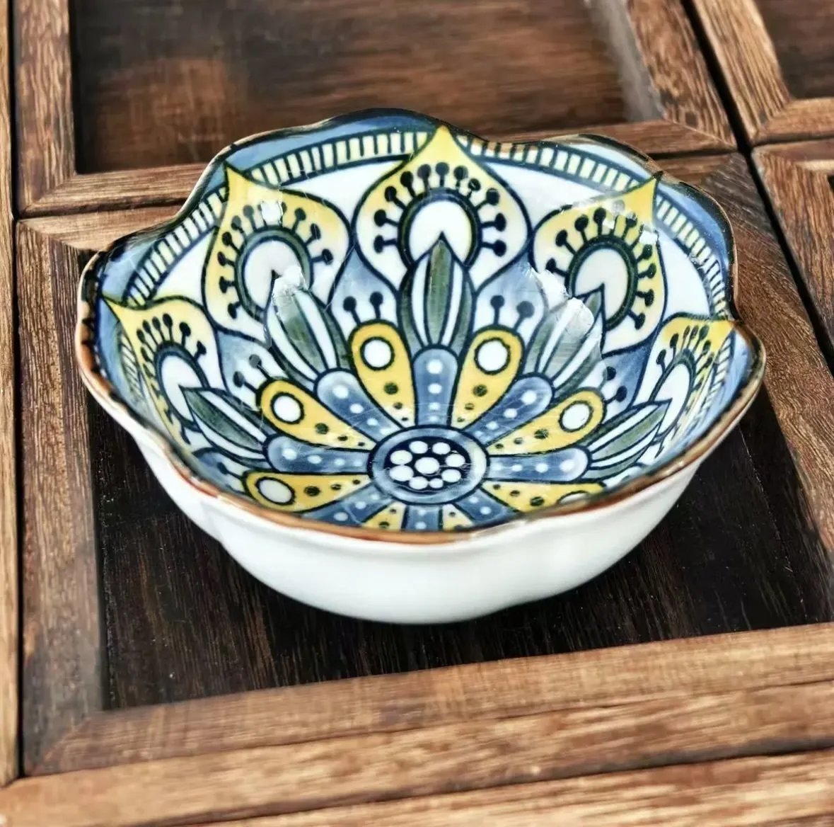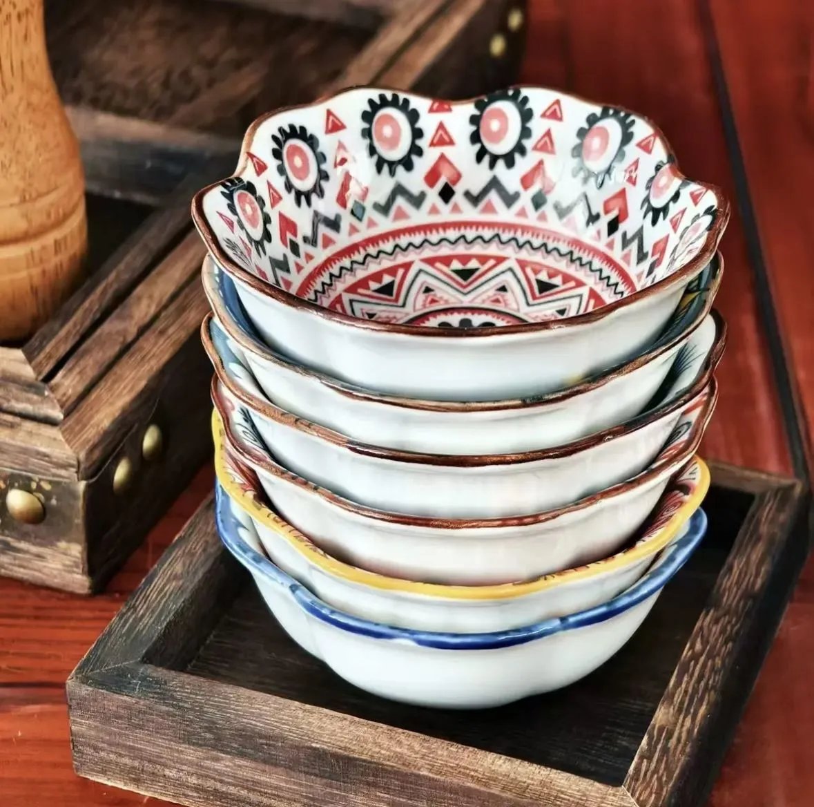 捡漏团6个19.9波西米亚风陶瓷料碗4英寸黄金尺寸蘸料、小食、甜品都可以装厚重手感媲美专柜大牌边缘立体浮雕设计基地直邮