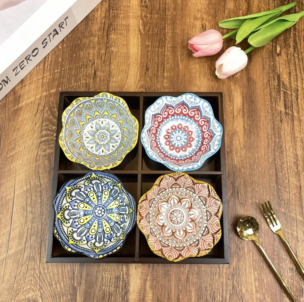 🔥 出口级釉下彩工艺:食品级釉面光滑如镜,微波炉/洗碗机/烤箱通用 🔥 4英寸黄金尺寸:🍯 蘸料CP组合/🥜 小食摆盘术/🍰 甜品氛围组 🔥 厚重手感媲美专柜大牌,边缘立体浮雕设计 🔥 每片独立气泡膜+定制防撞泡沫包装,暴力快递也毫发无损