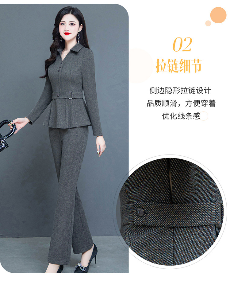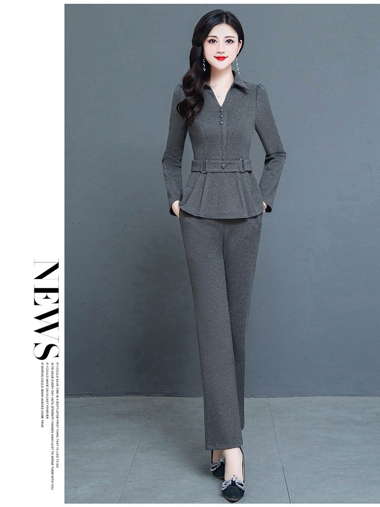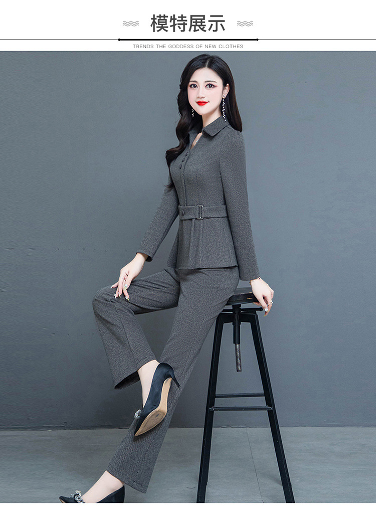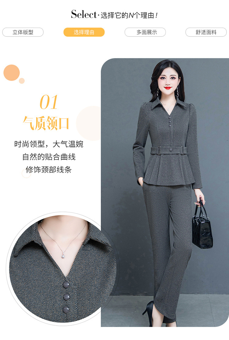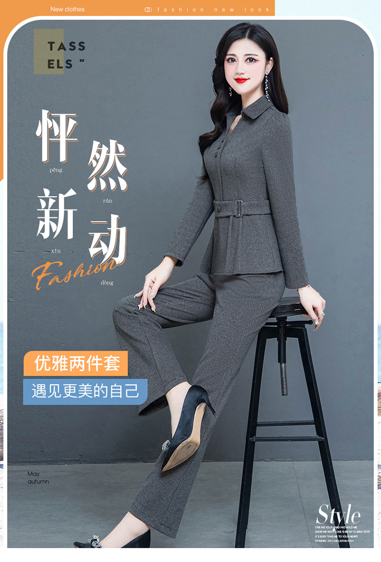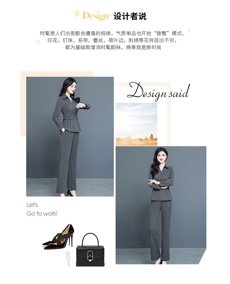 QYM 237727-Y收腰上衣打底衫+高腰裤优雅套装