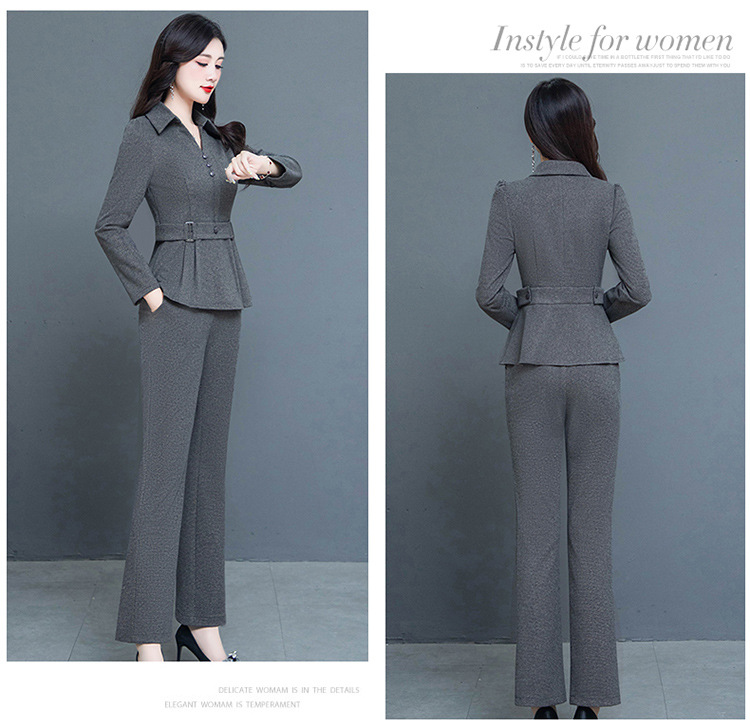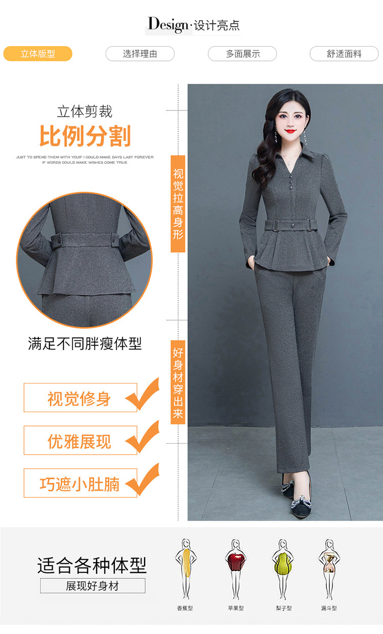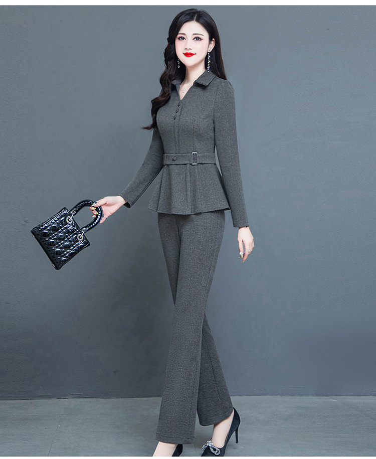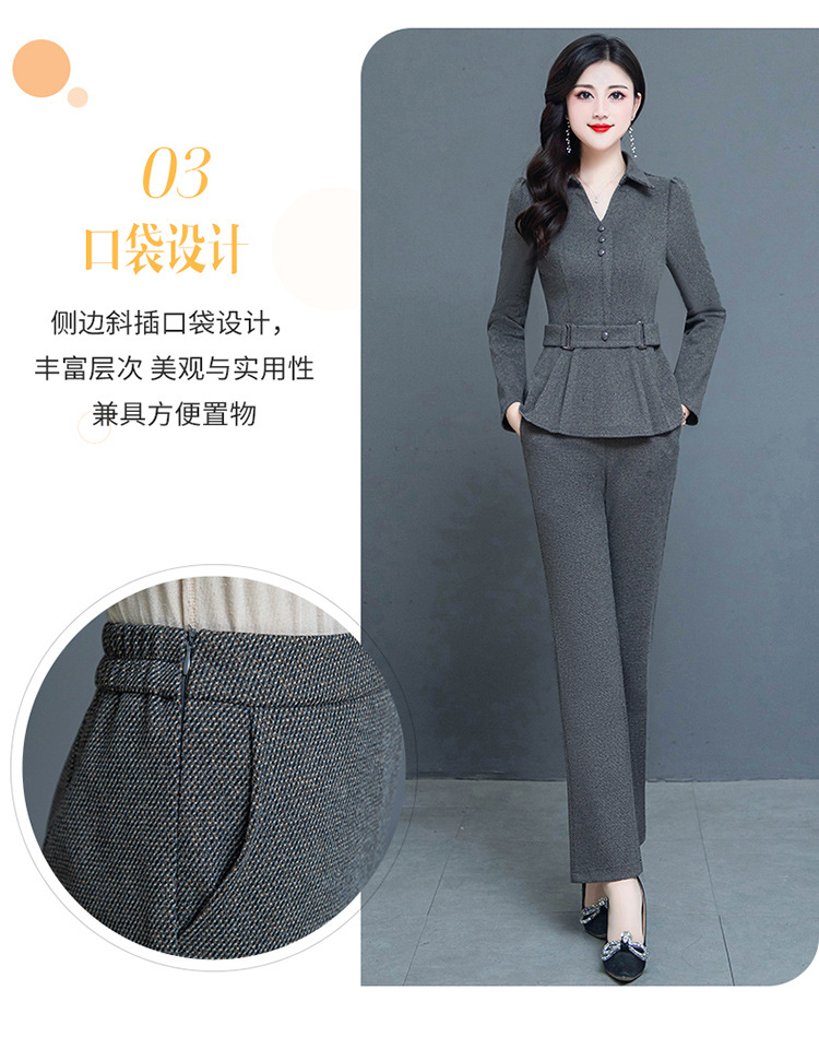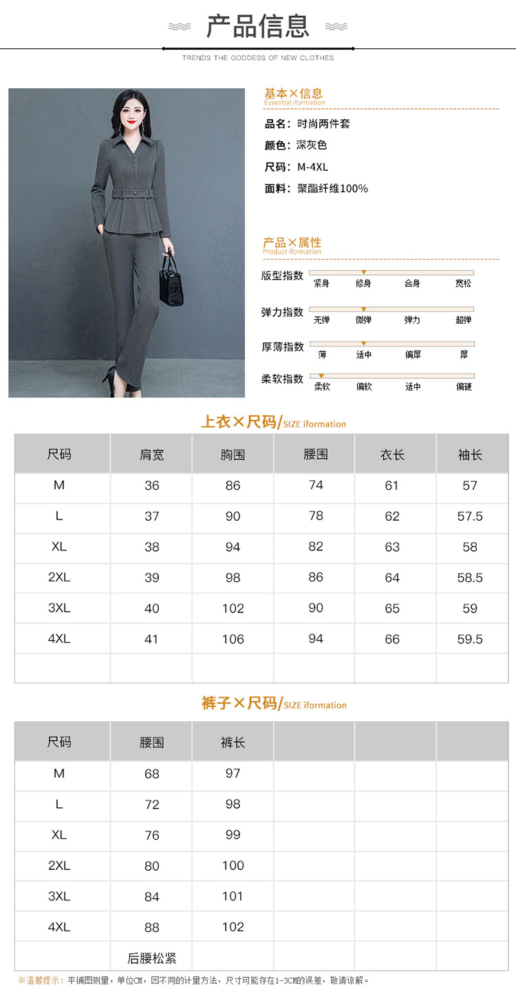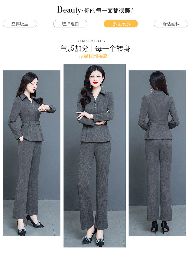 QYM 237727-Y收腰上衣打底衫+高腰裤优雅套装