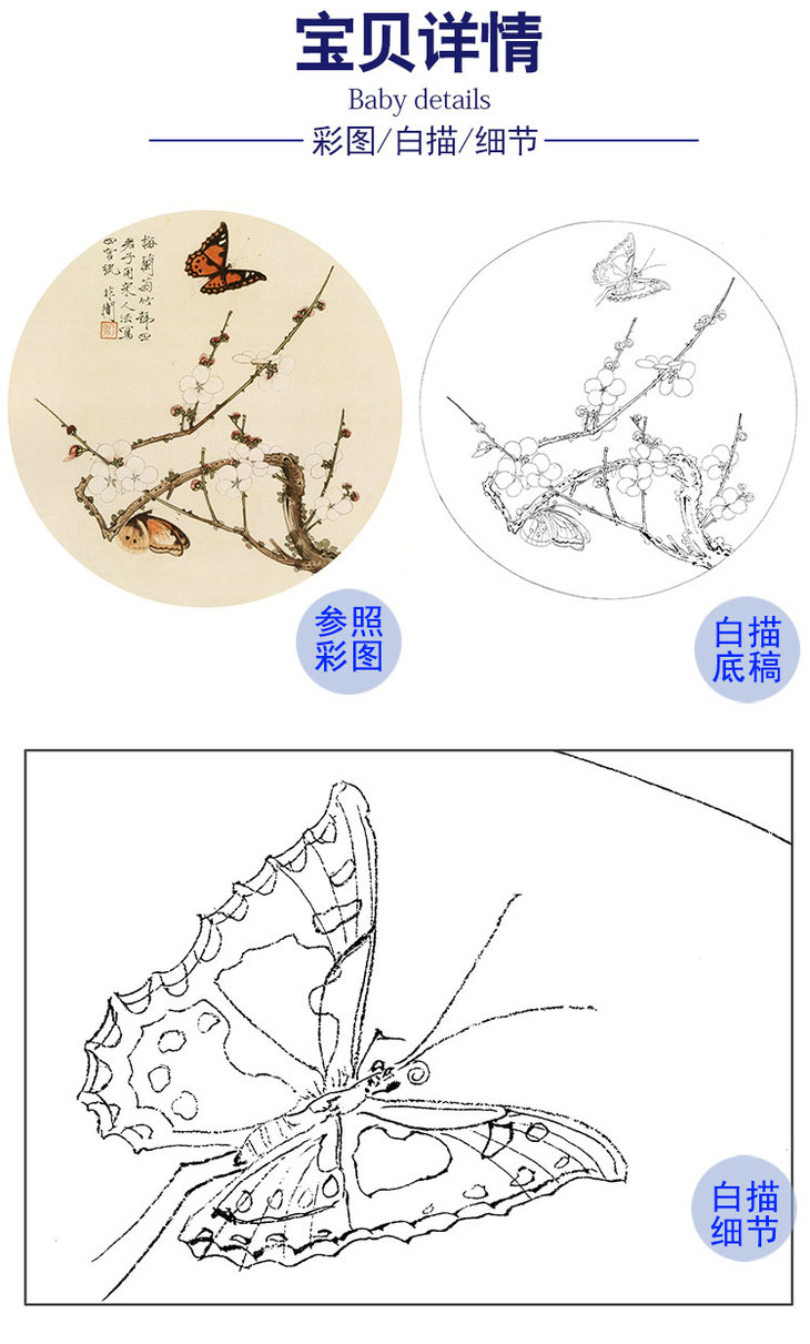 于非闇工笔花鸟白描底稿-圆形梅花小品-YF67