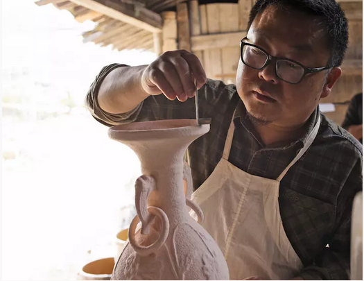 张家,从元代开始制青瓷。青瓷基因,在张家人身上代代相传。张晞,师从爷爷张高岳。张高岳,清末民国初期制瓷高手。张老在龙泉青瓷界个是泰斗级的人物,他的作品龙龟现在就被收藏于台北故宫博物馆。