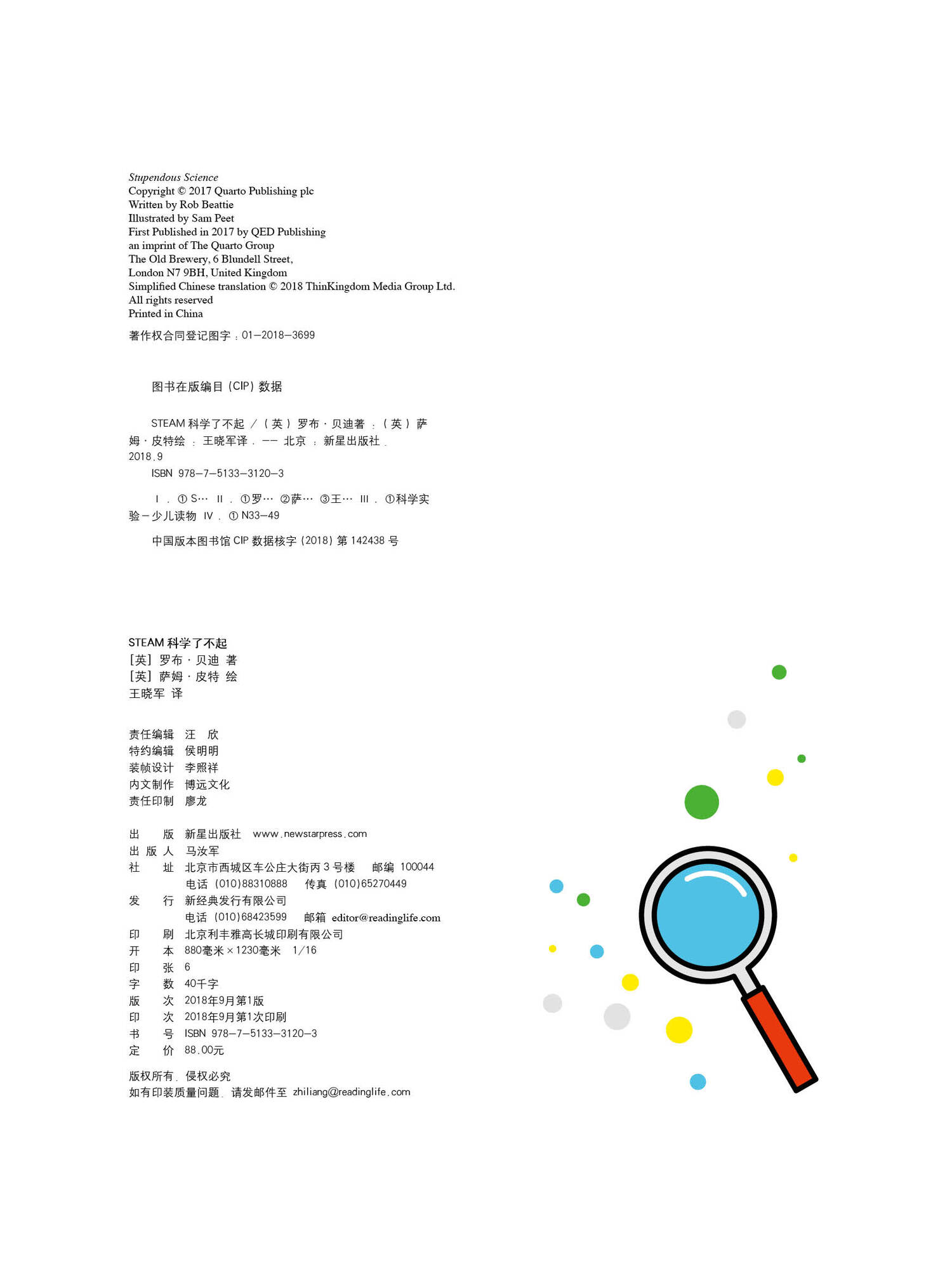 风靡世界的STEAM科学书来啦,手机做成投影仪、棒棒糖棍搭大桥、柠檬变身发电机……70个在家就能做的趣味实验,利用项目探索和动手实践,融会贯通化学、物理、生物和工程学各科知识。不需要复杂的材料包,只须开动脑筋,随处可见的日常用品就能大显身手,发生神奇的变化。