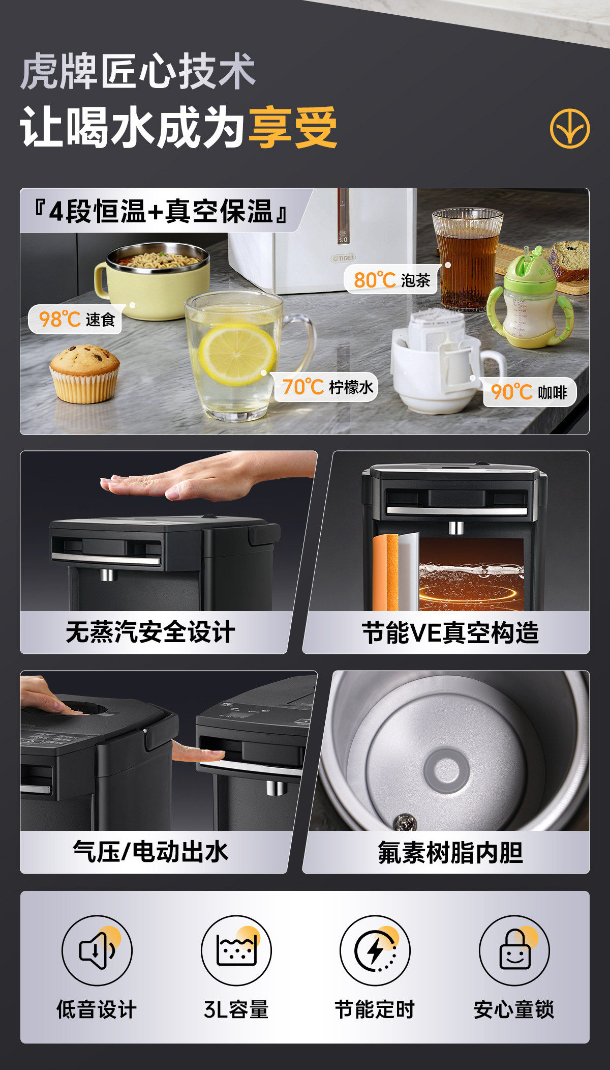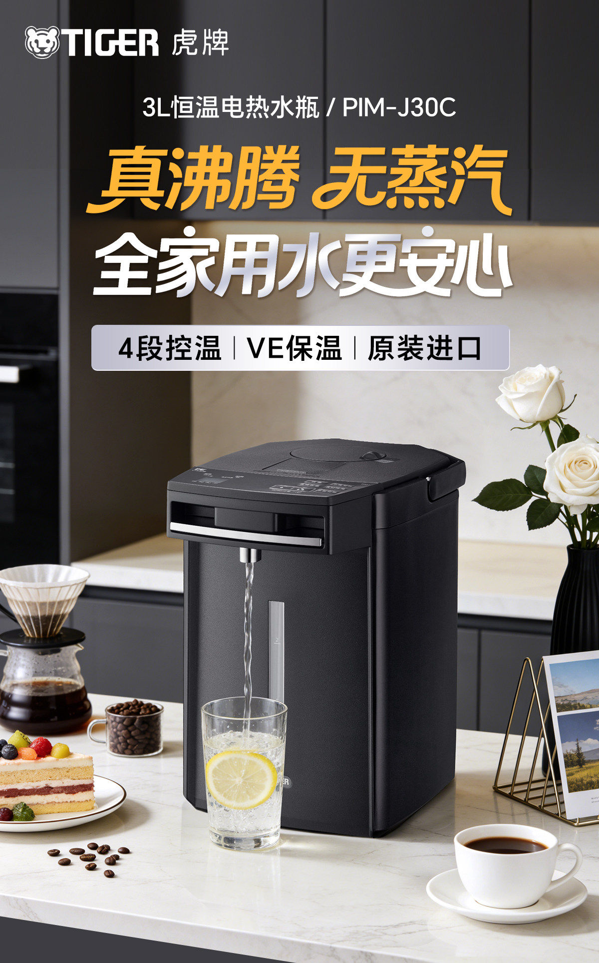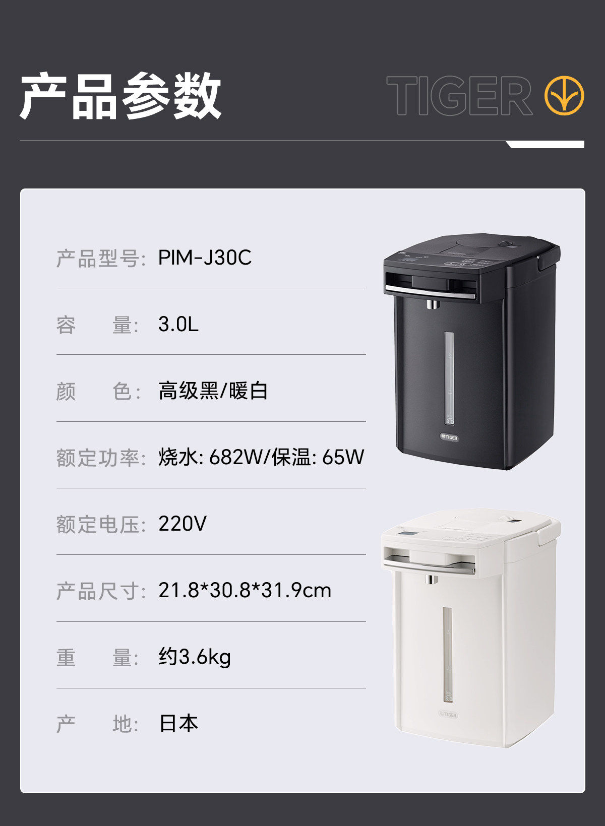 TIGER/虎牌 日本进口电水壶PIM-J30C无蒸汽智能恒温烧水VE保温壶3L