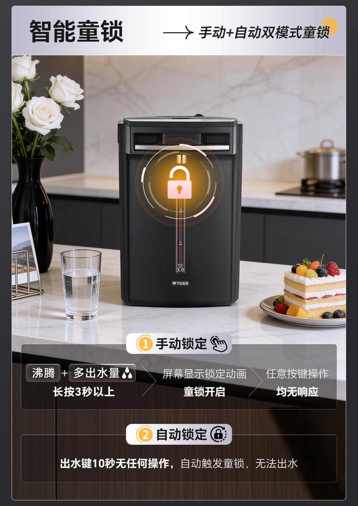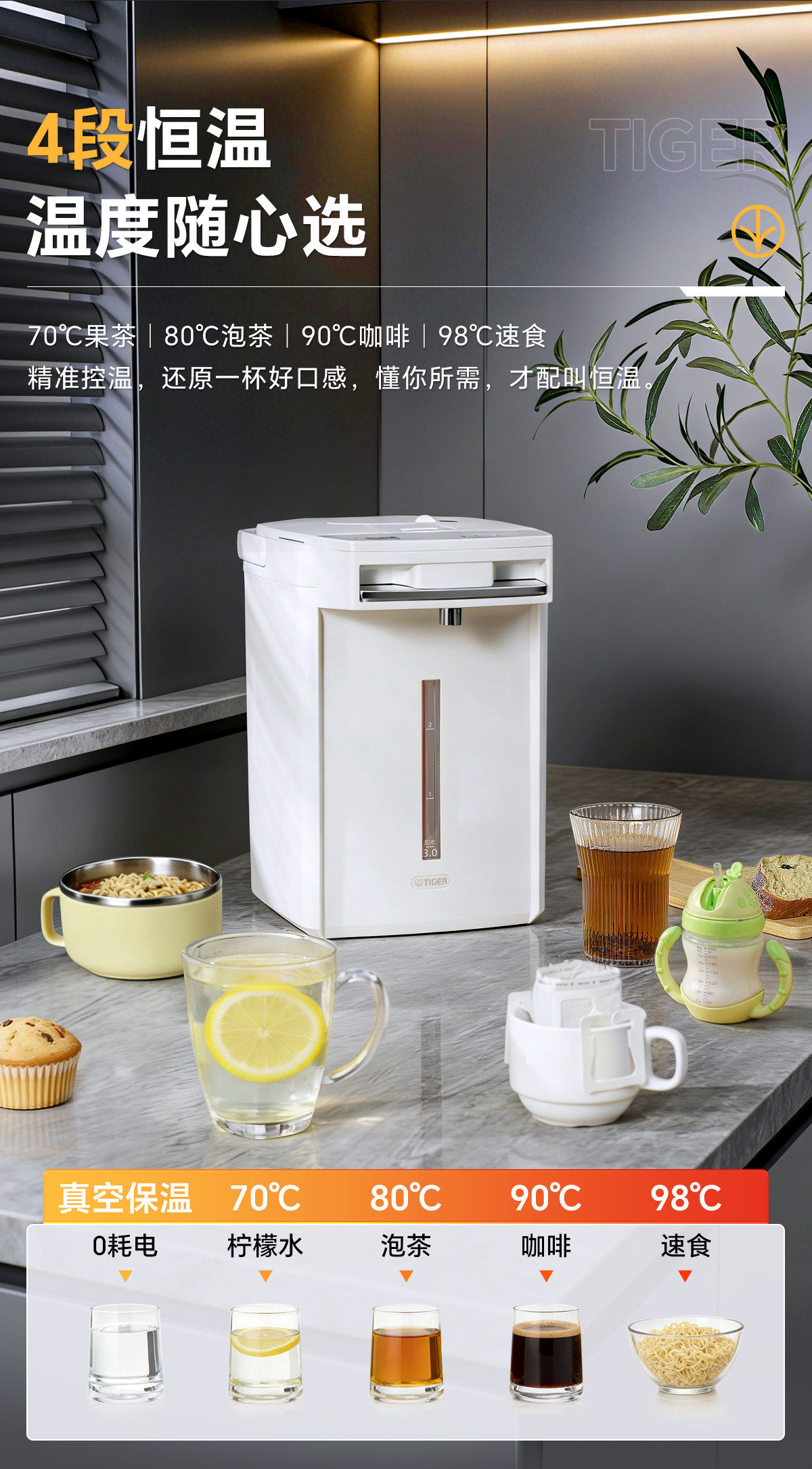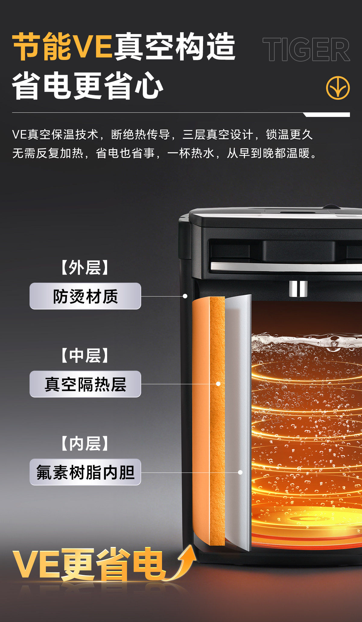 TIGER/虎牌 日本进口电水壶PIM-J30C无蒸汽智能恒温烧水VE保温壶3L