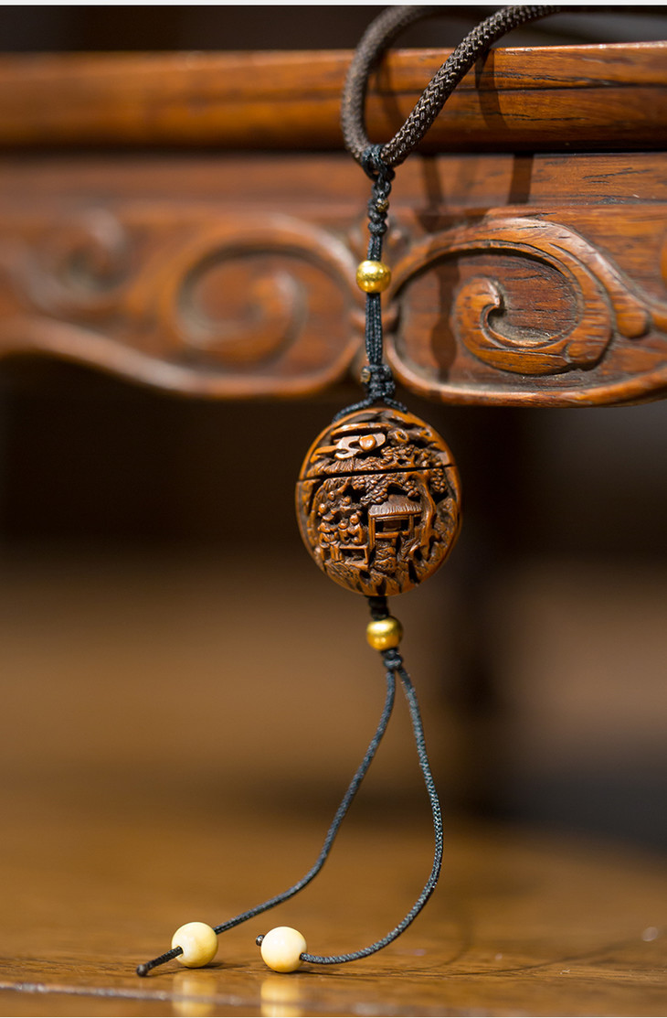 清乾隆 核雕松溪论画图挂件