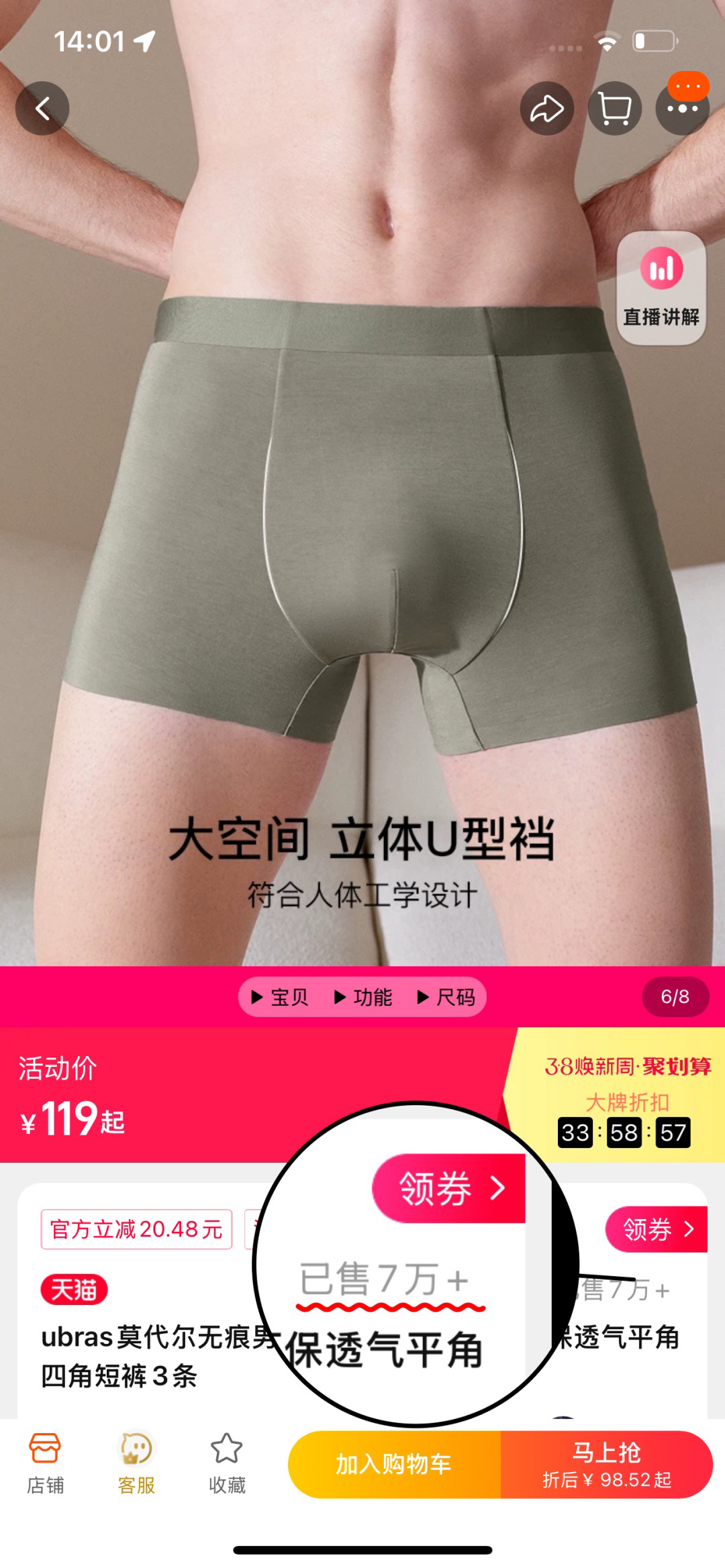 巨舒服❗️必须按头安利!Ub男士无痕莫代尔平角内裤!