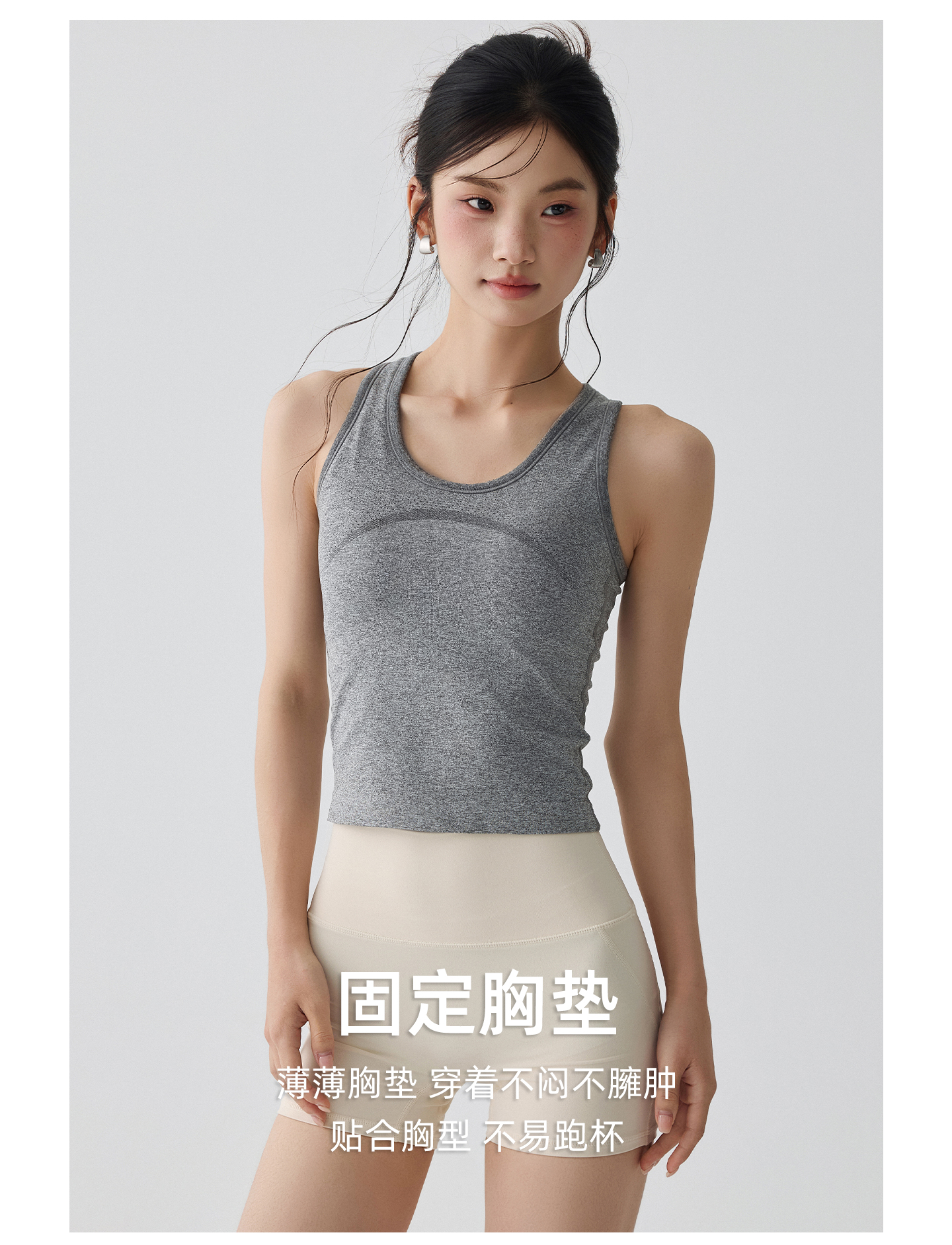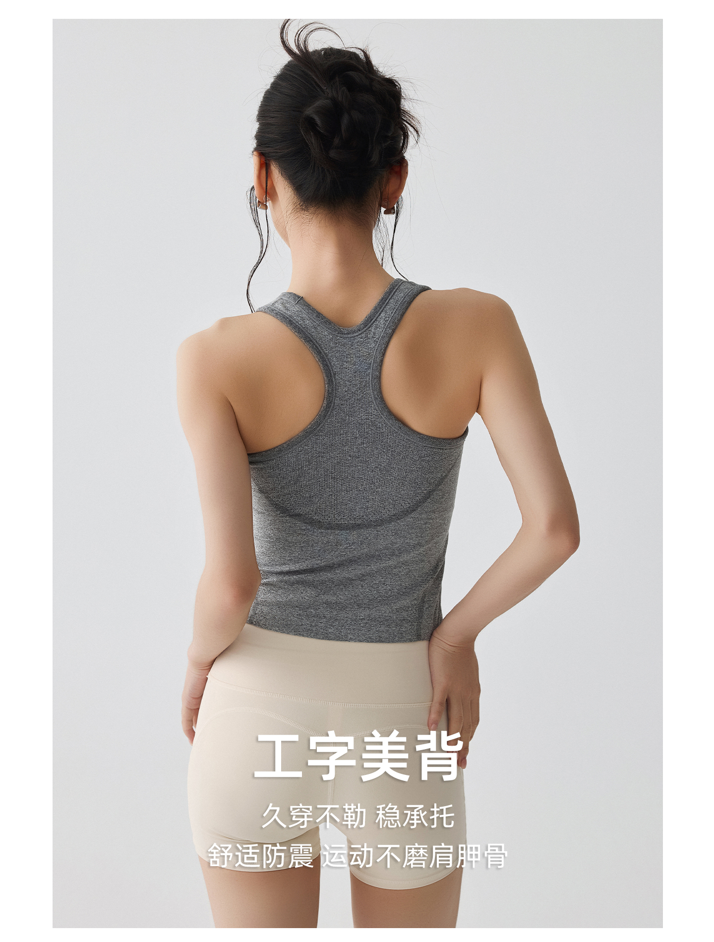 跃牌【美西西系列】新款带胸垫运动背心女高弹力工字背一体式瑜伽背心BX-275