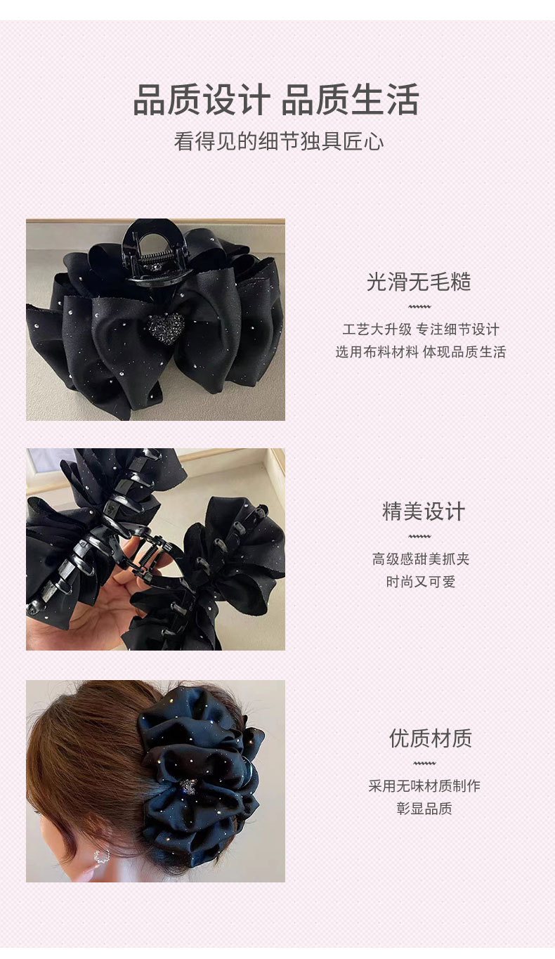 雀说新款满天星爱心水钻蝴蝶结抓夹轻奢高级感鲨鱼夹显发量发抓夹发饰AL060