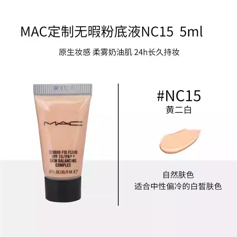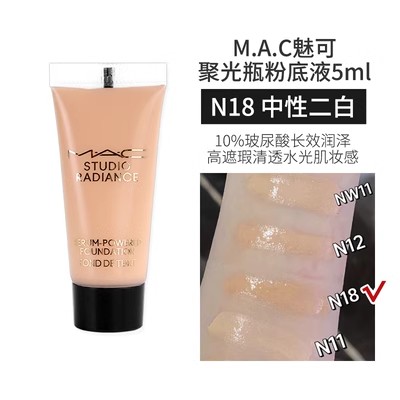 热卖!MAC魅可定制无暇粉底液5ml小样 N18