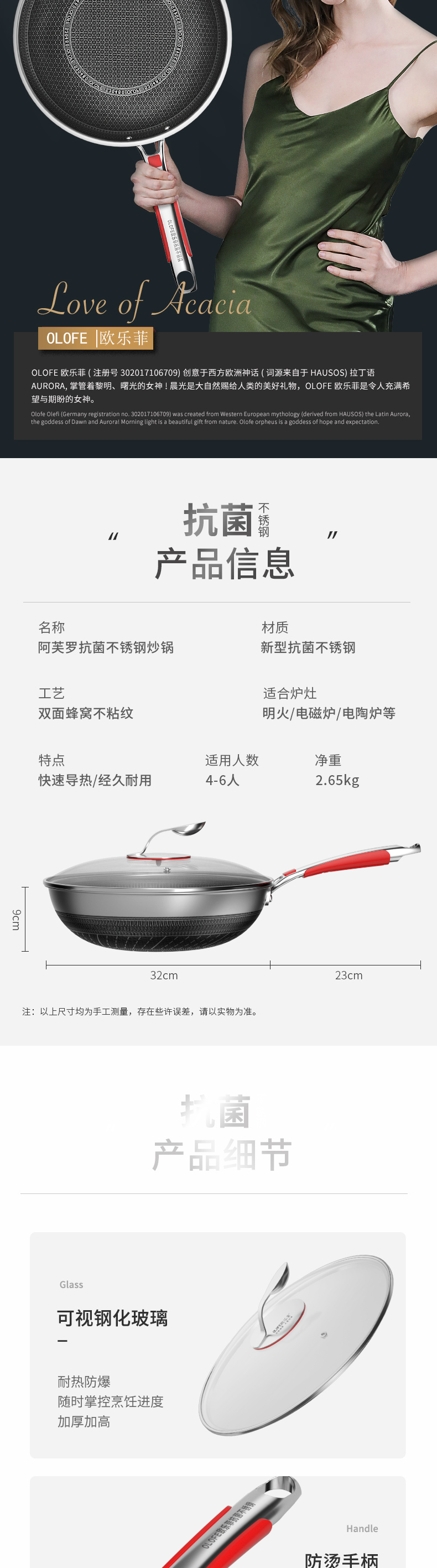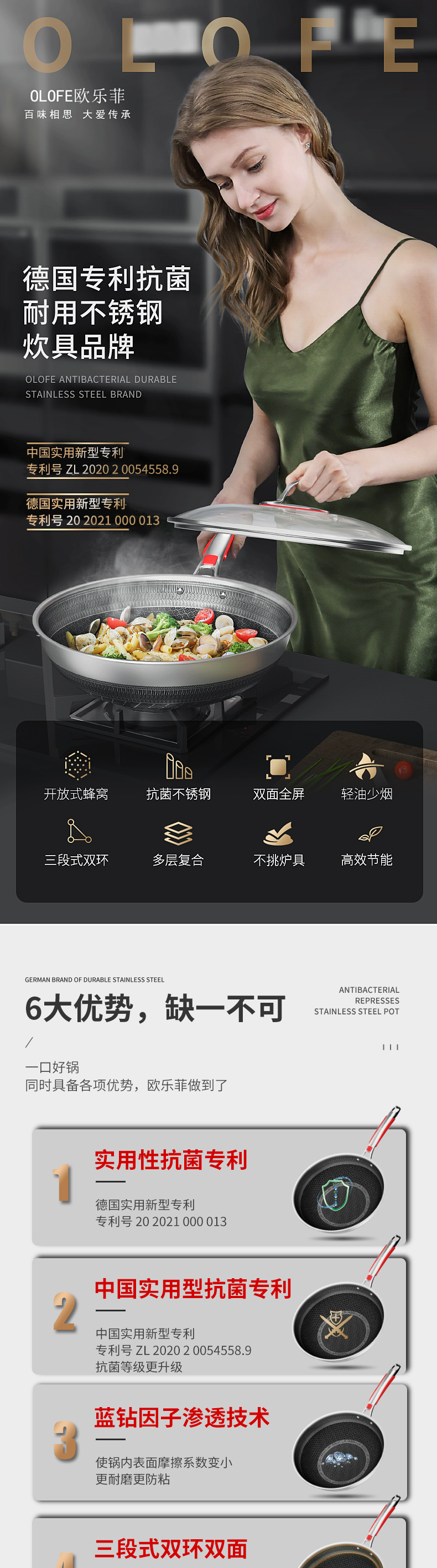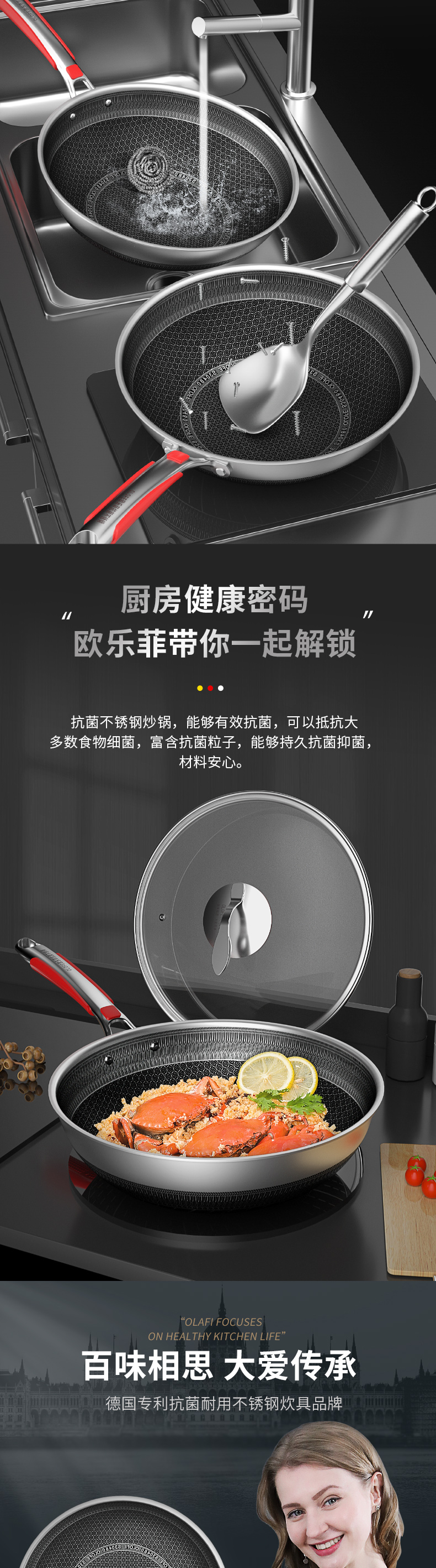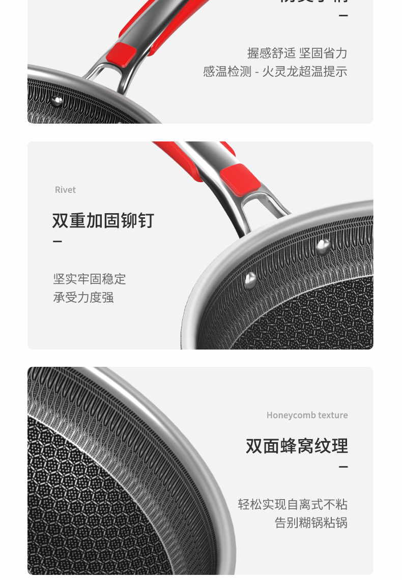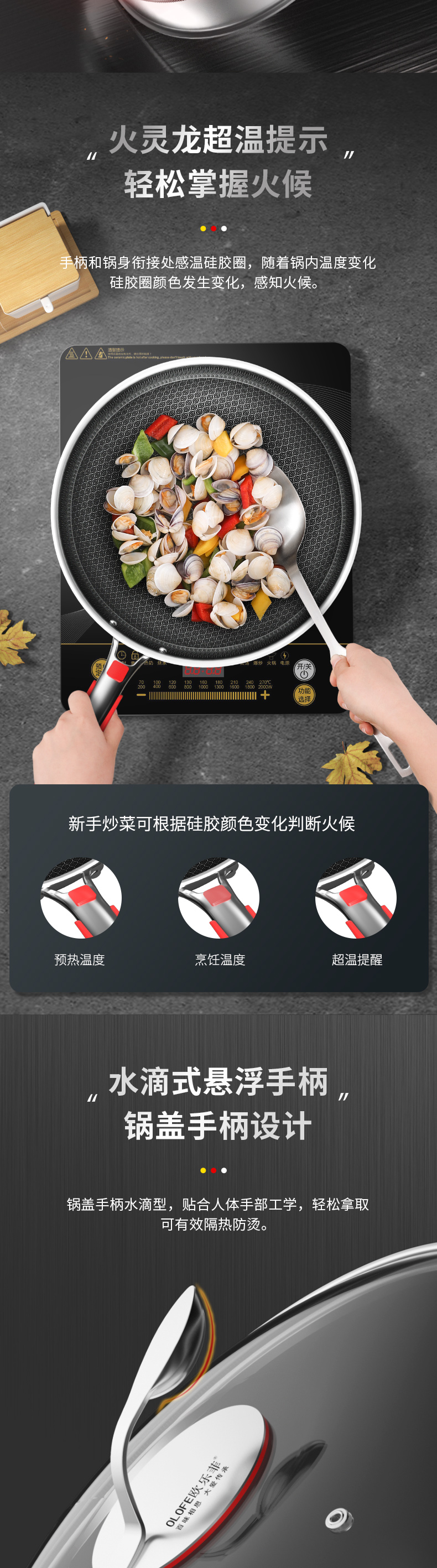 欧乐菲阿芙罗蜂巢三段式双环双面抗菌不锈钢炒锅(新款)OLO32K1