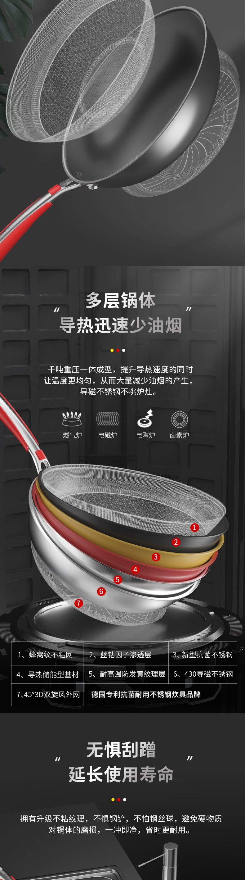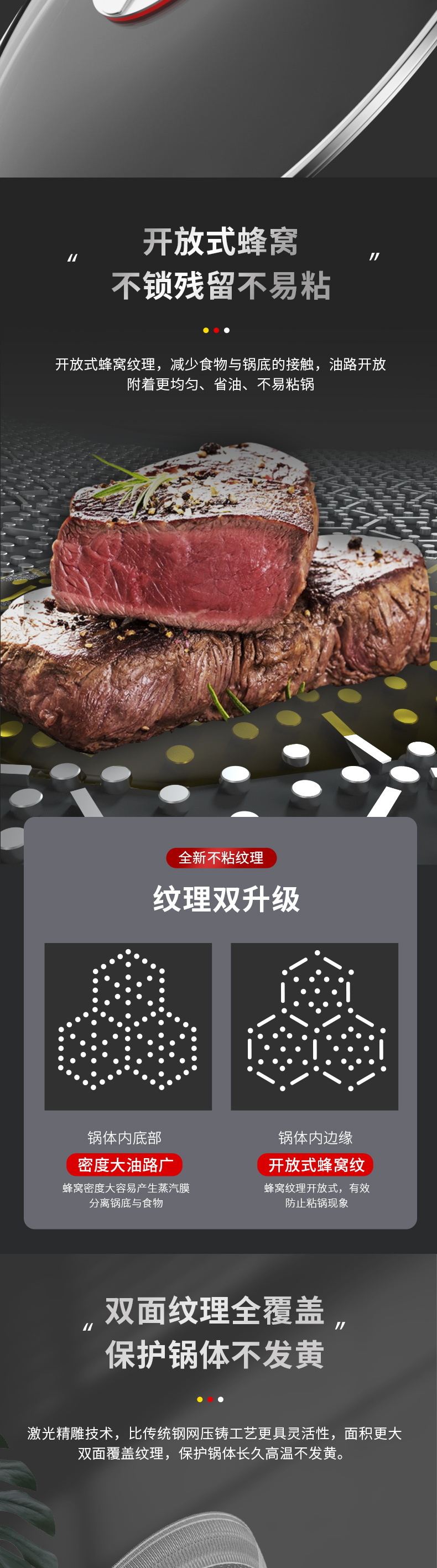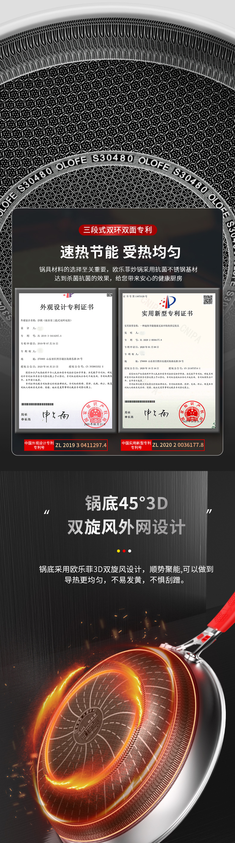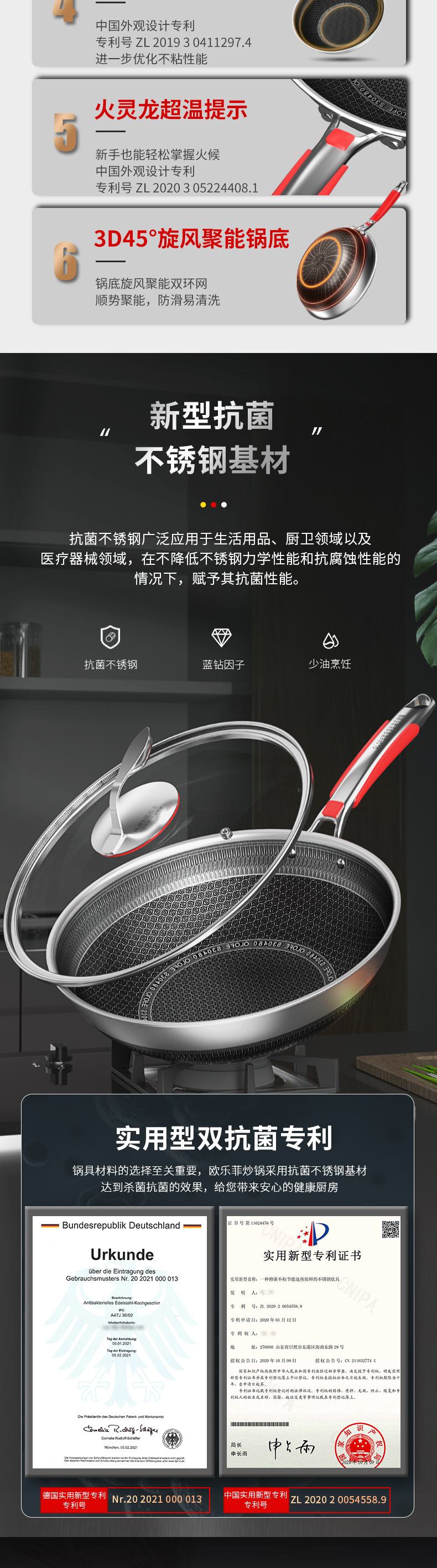 欧乐菲阿芙罗蜂巢三段式双环双面抗菌不锈钢炒锅(新款)OLO32K1
