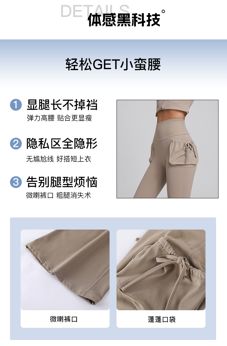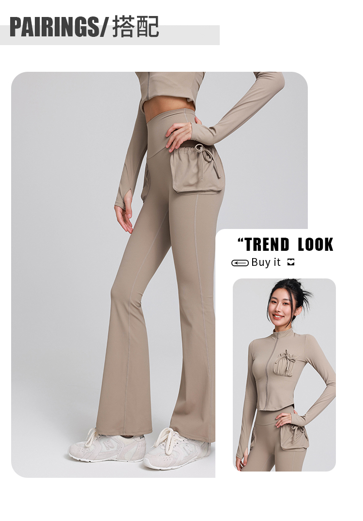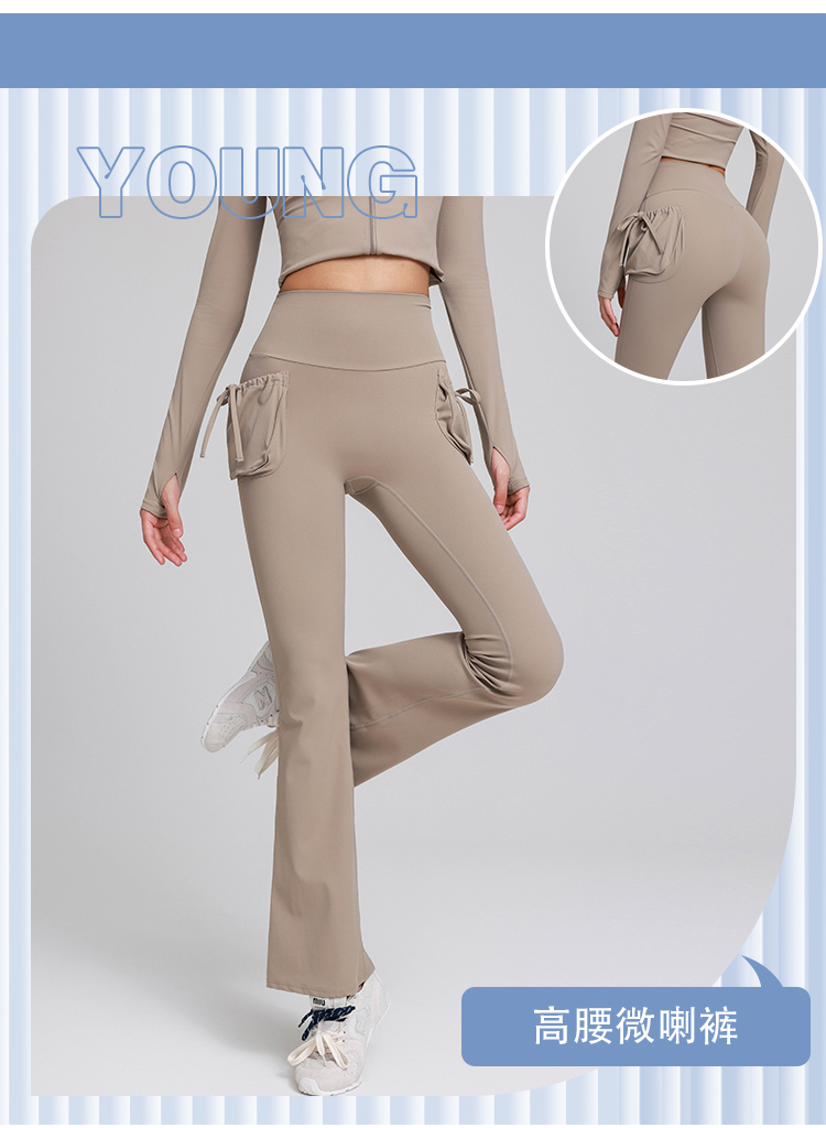 跃牌【禅语梵心】高腰双口袋显瘦喇叭裤长裤修身瑜伽裤女提臀跑步运动裤健身裤CK5679