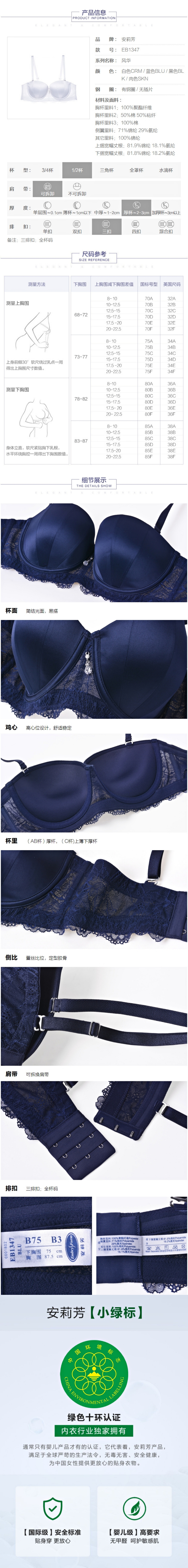 安莉芳光面1/2杯小胸聚拢文胸女可脱肩带内衣EB1347