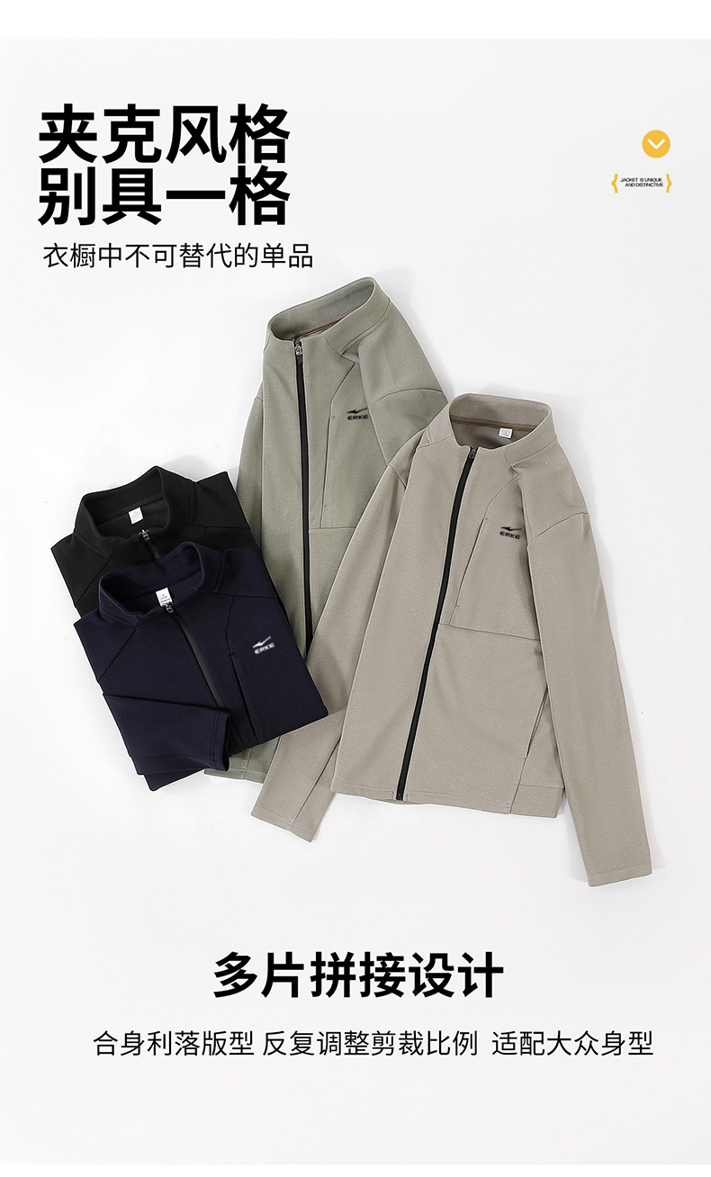 【夹克风格 多片拼接 利落版型】鸿星尔克320g春秋款华棉立领开衫卫衣EK-XW25828