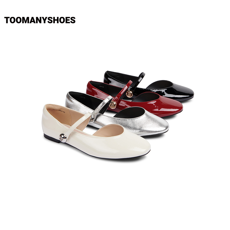 Toomanyshoes女鞋25新款海德公园平底芭蕾舞鞋复古银色玛丽珍单鞋
