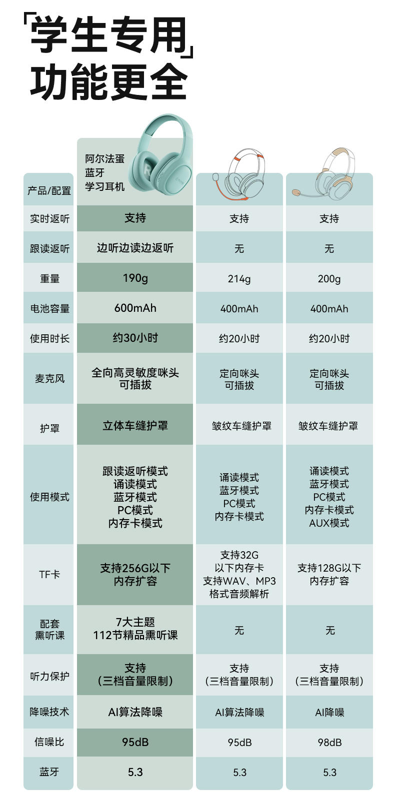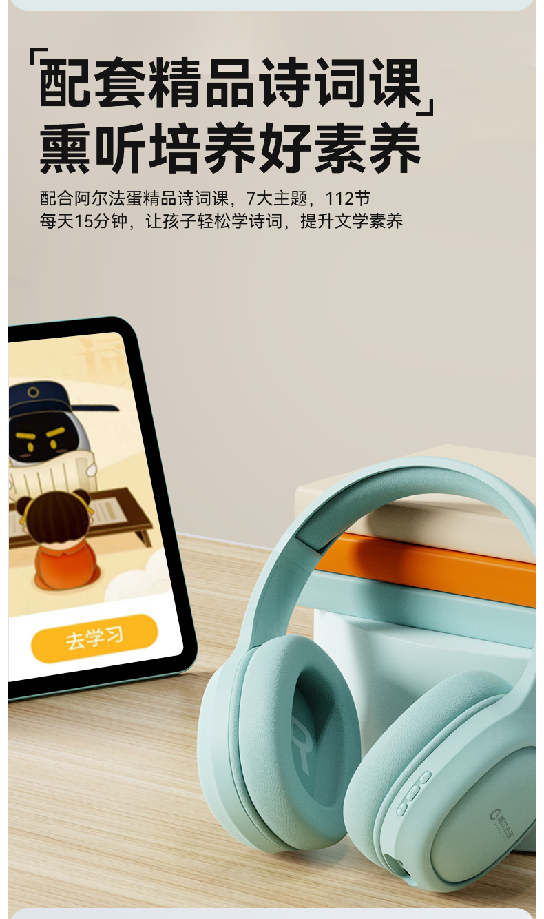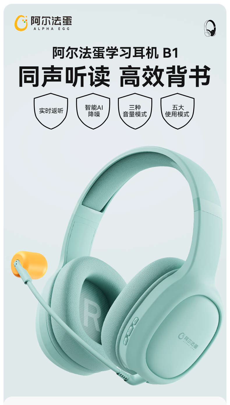 【开学季】阿尔法蛋学习耳机 B1 听读双同步 边听边读 清晰高音质 还原立体音效 降噪隔音 久听不伤耳