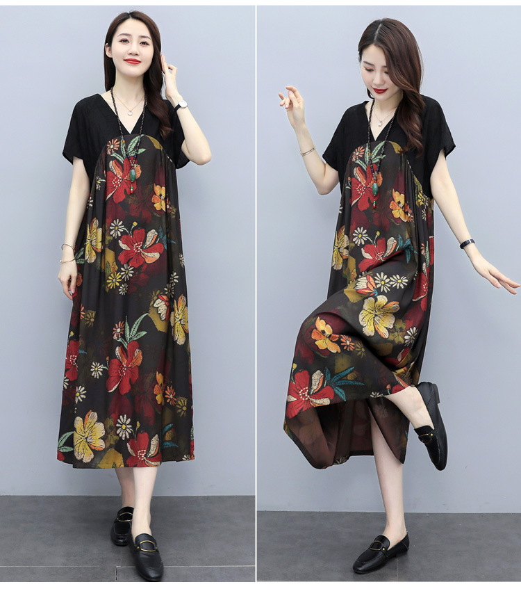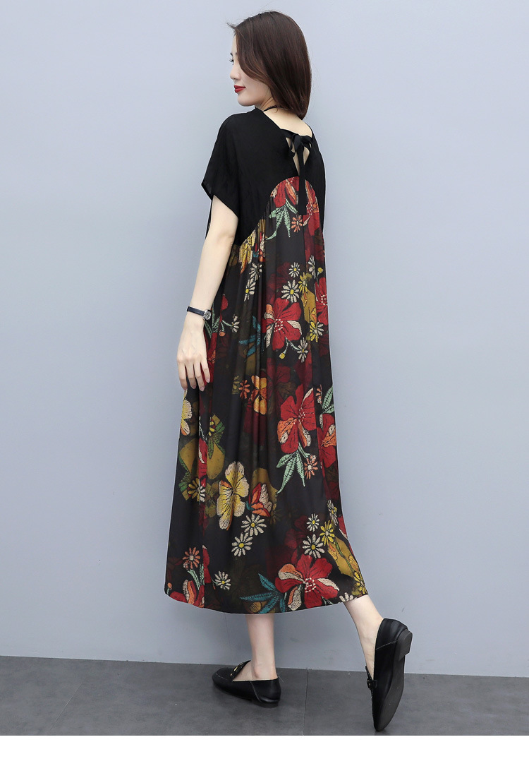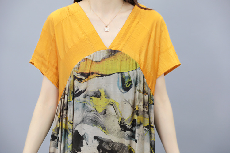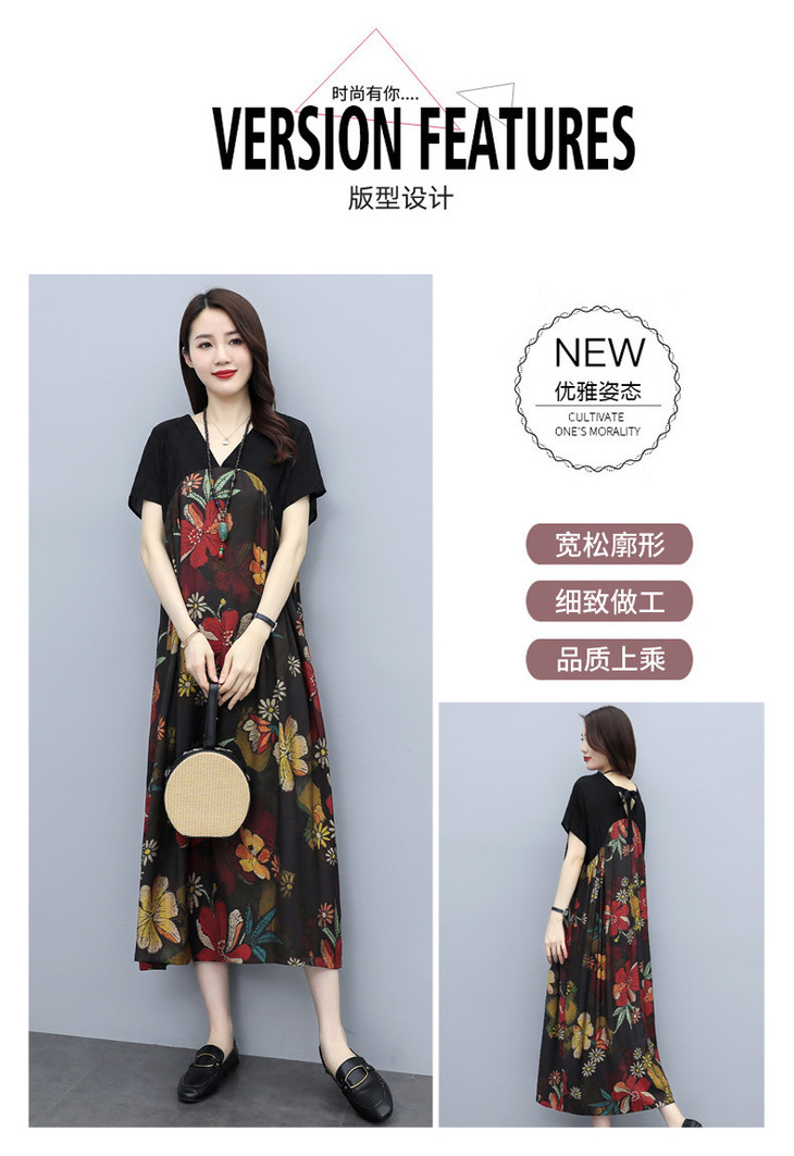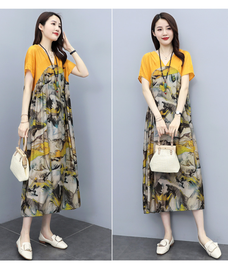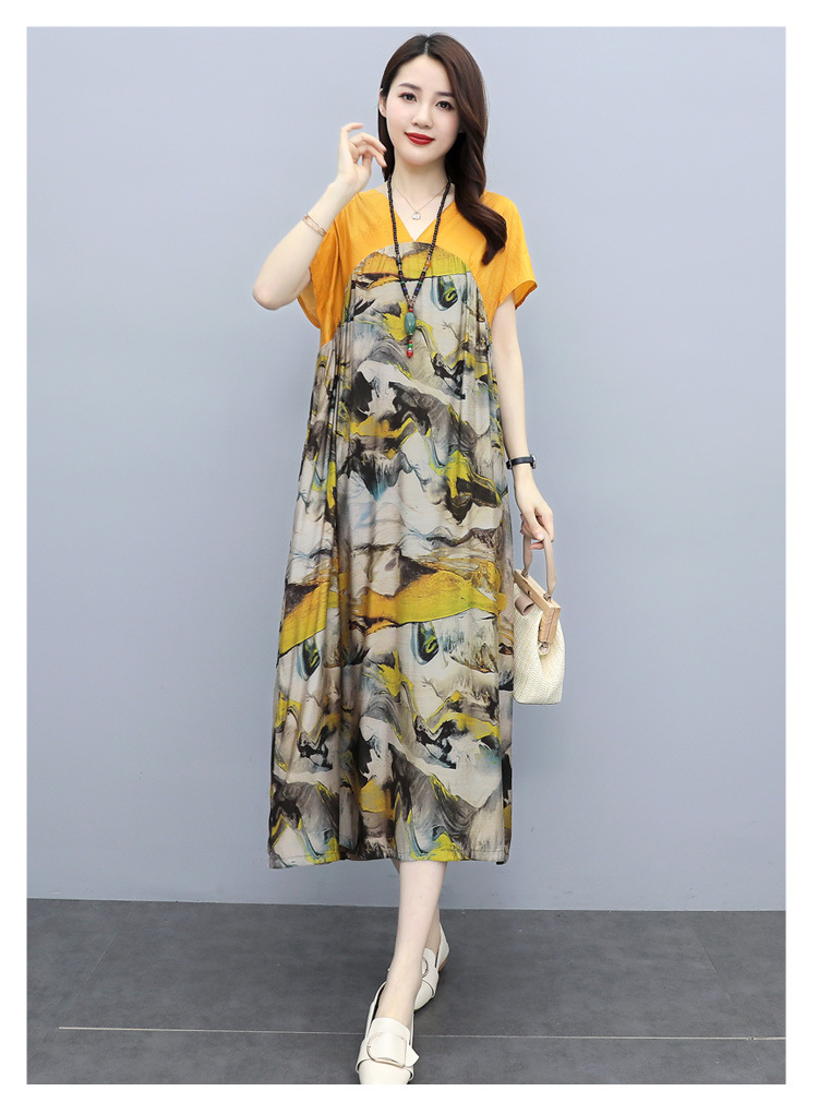 HR YZCB818时尚优雅气质宽松拼接印花连衣裙