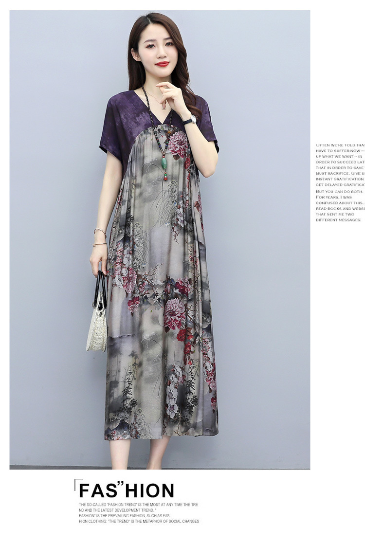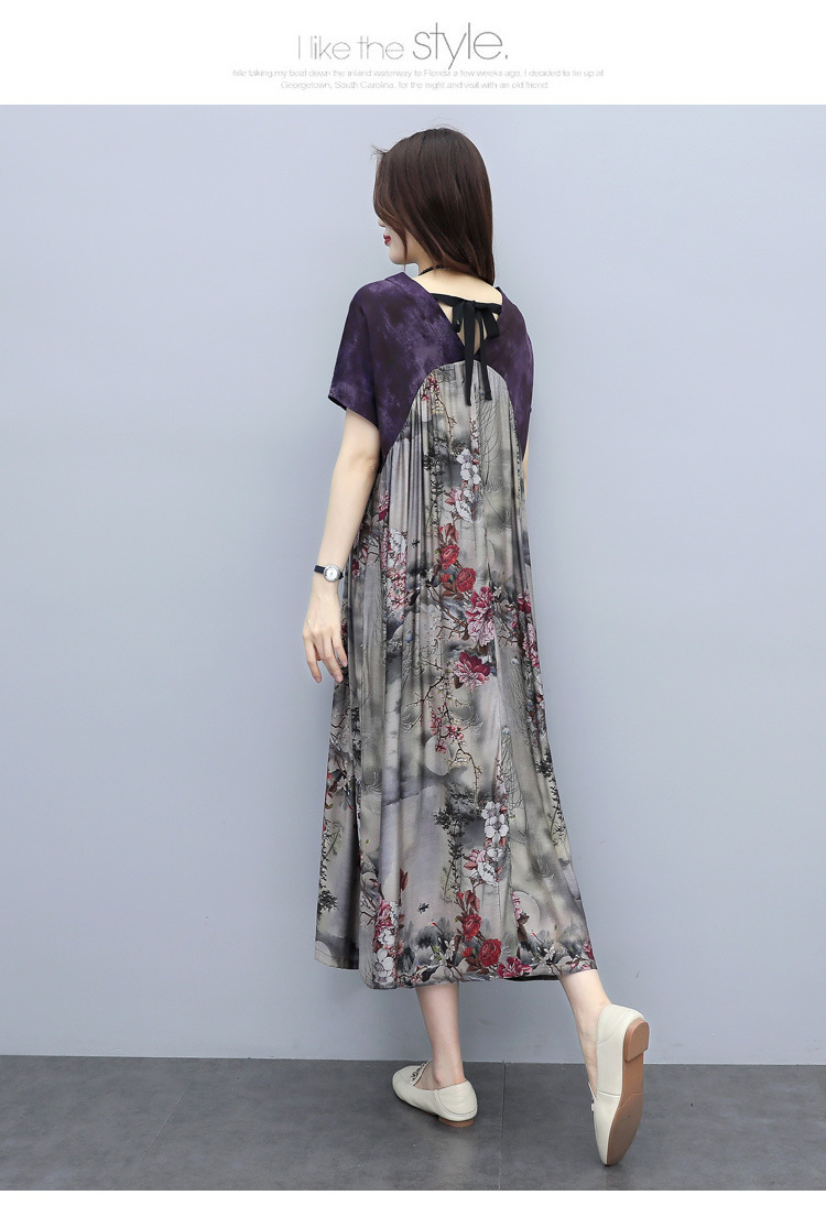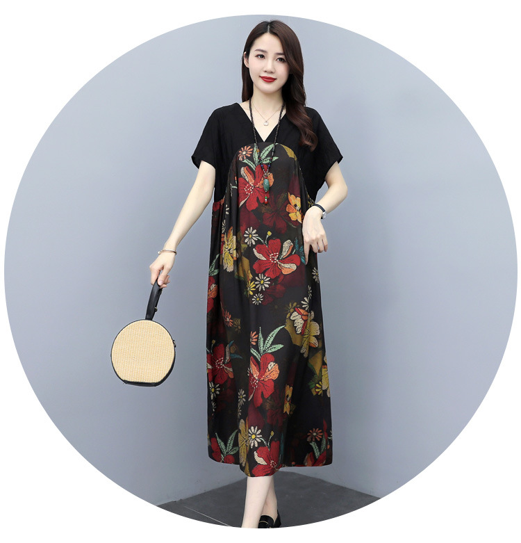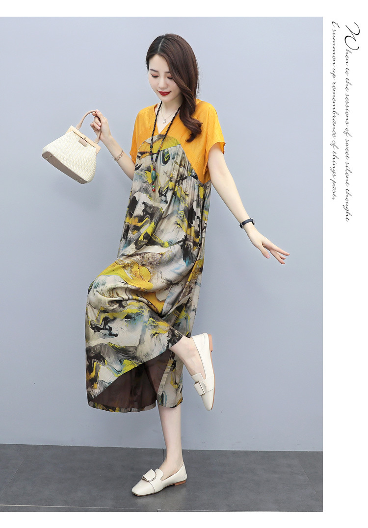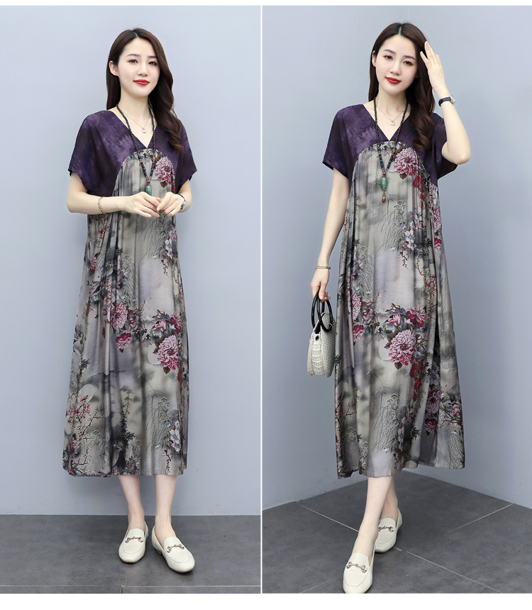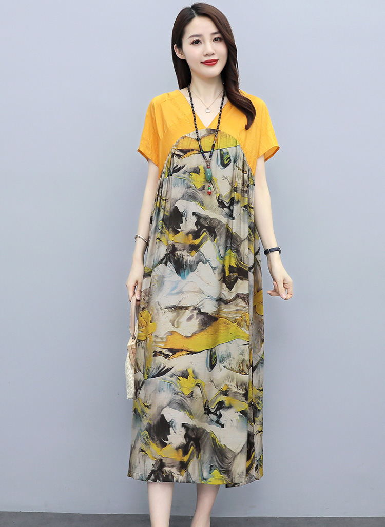 HR YZCB818时尚优雅气质宽松拼接印花连衣裙