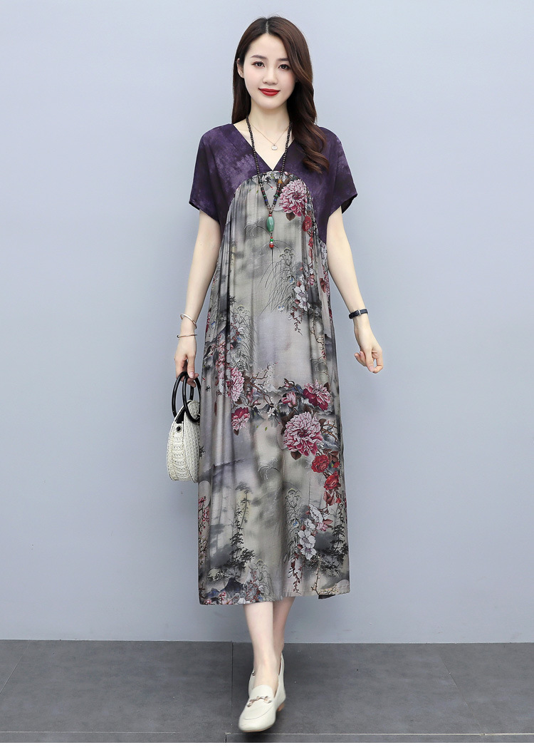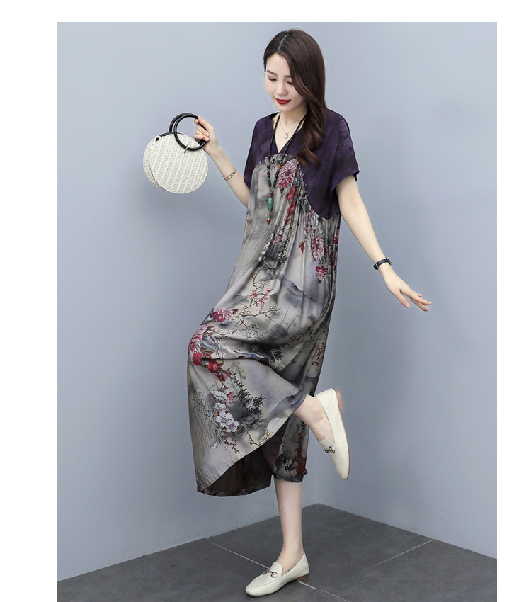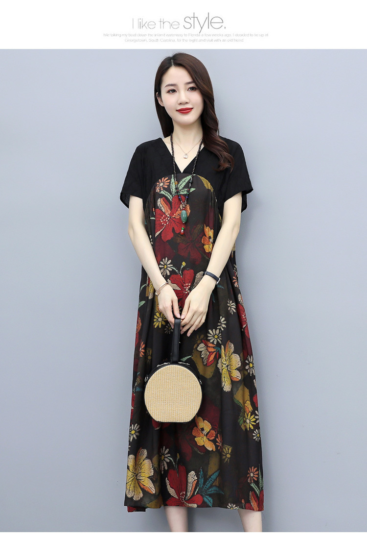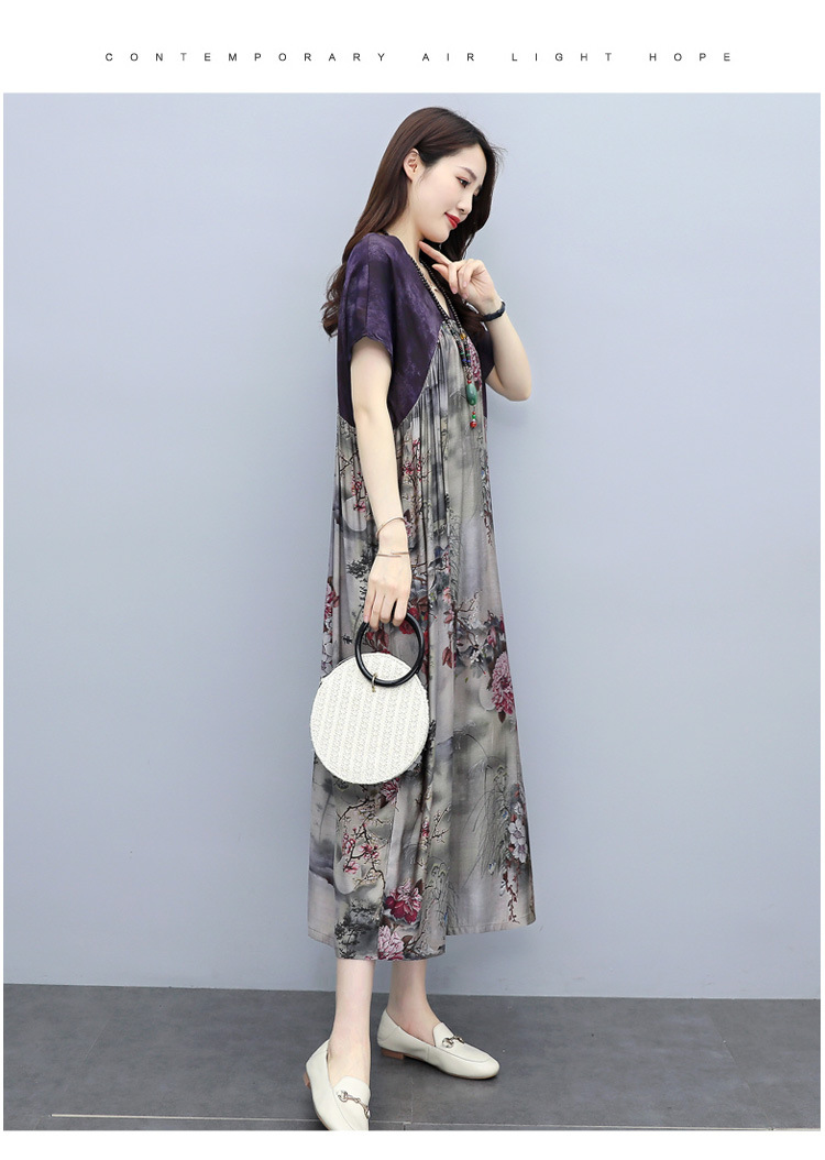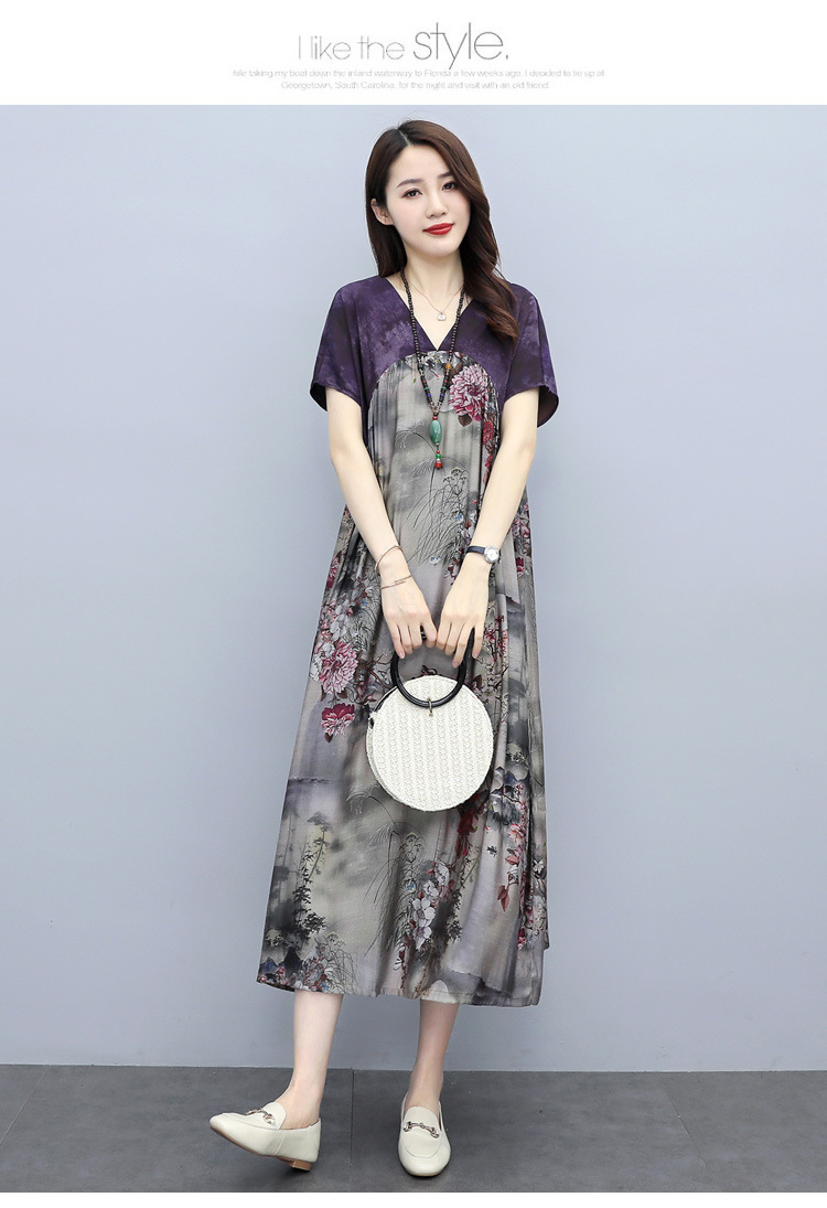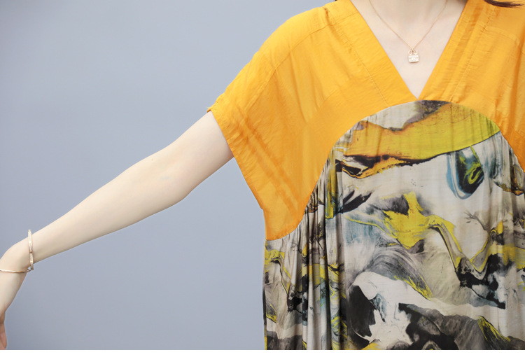 HR YZCB818时尚优雅气质宽松拼接印花连衣裙