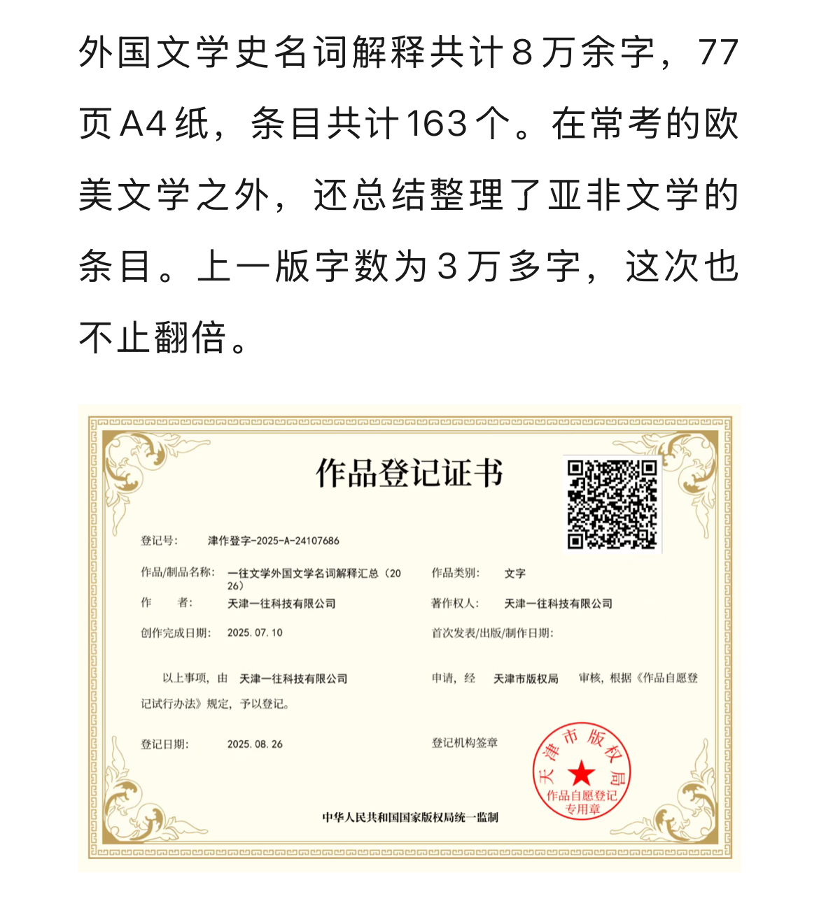 - 一往文学,8年专注文学考研咨询,带出数千名文学专业研究生。