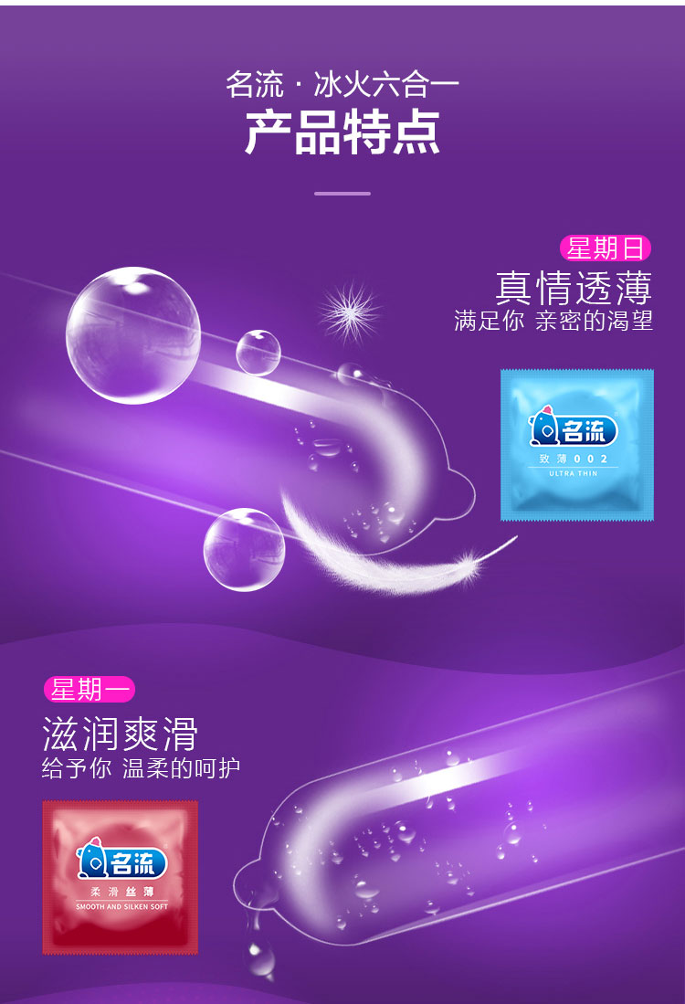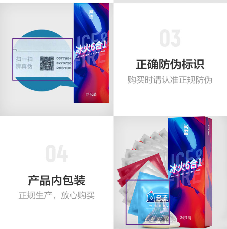 【年末亏本清仓】名流冰火6合1安全避孕套(24只)