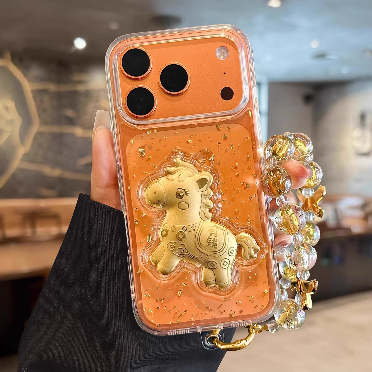 【精致美观时尚❗️满满新年仪式感】立体滴胶苹果17promax马上有钱16金箔13新年12透明15新年14手机壳。jc