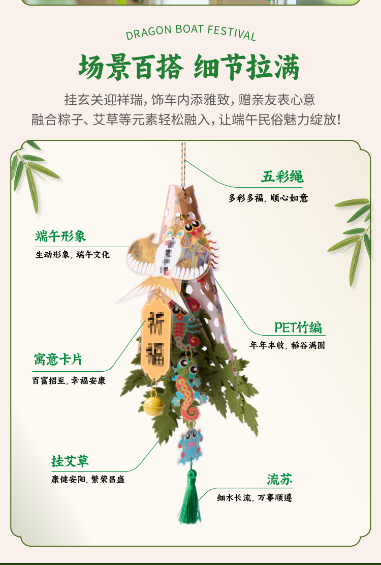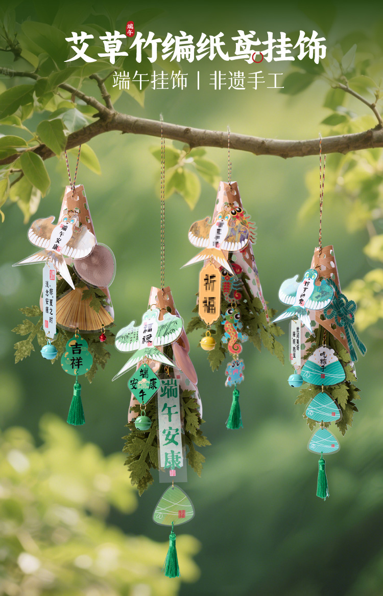端午节手工艾草竹编纸鸢挂饰DIY制作材料传统佳节趣味手工门挂饰