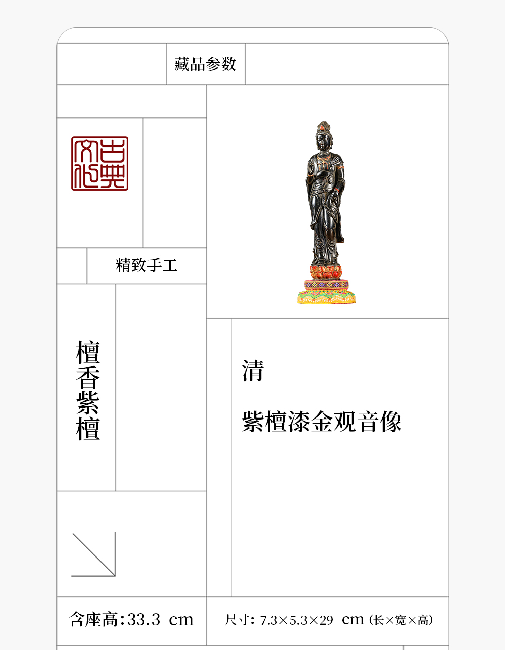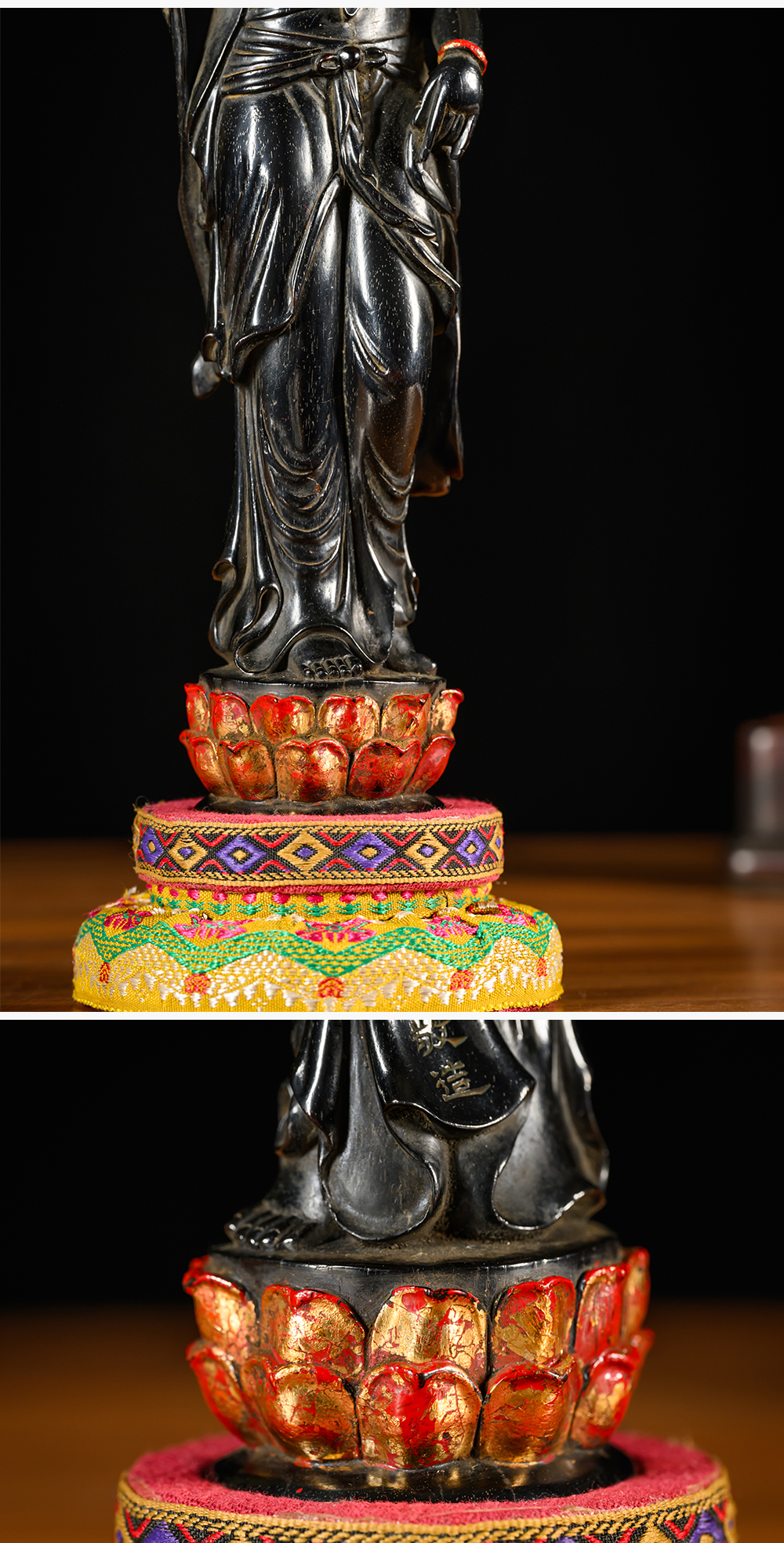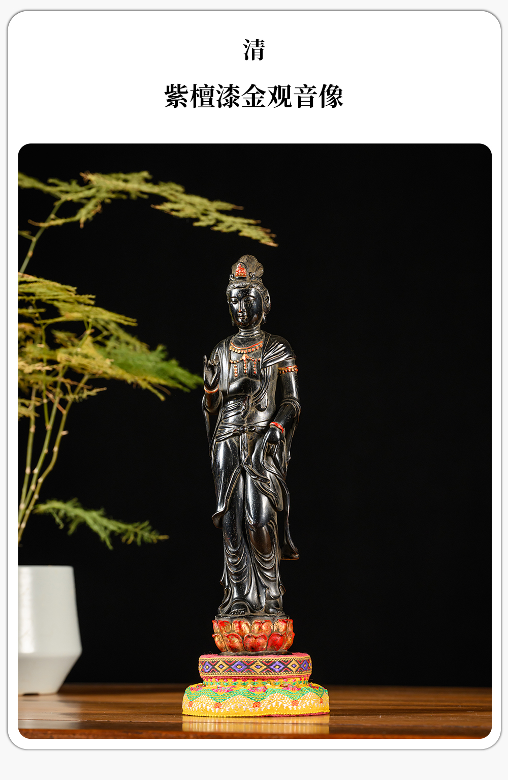 清 紫檀漆金观音像