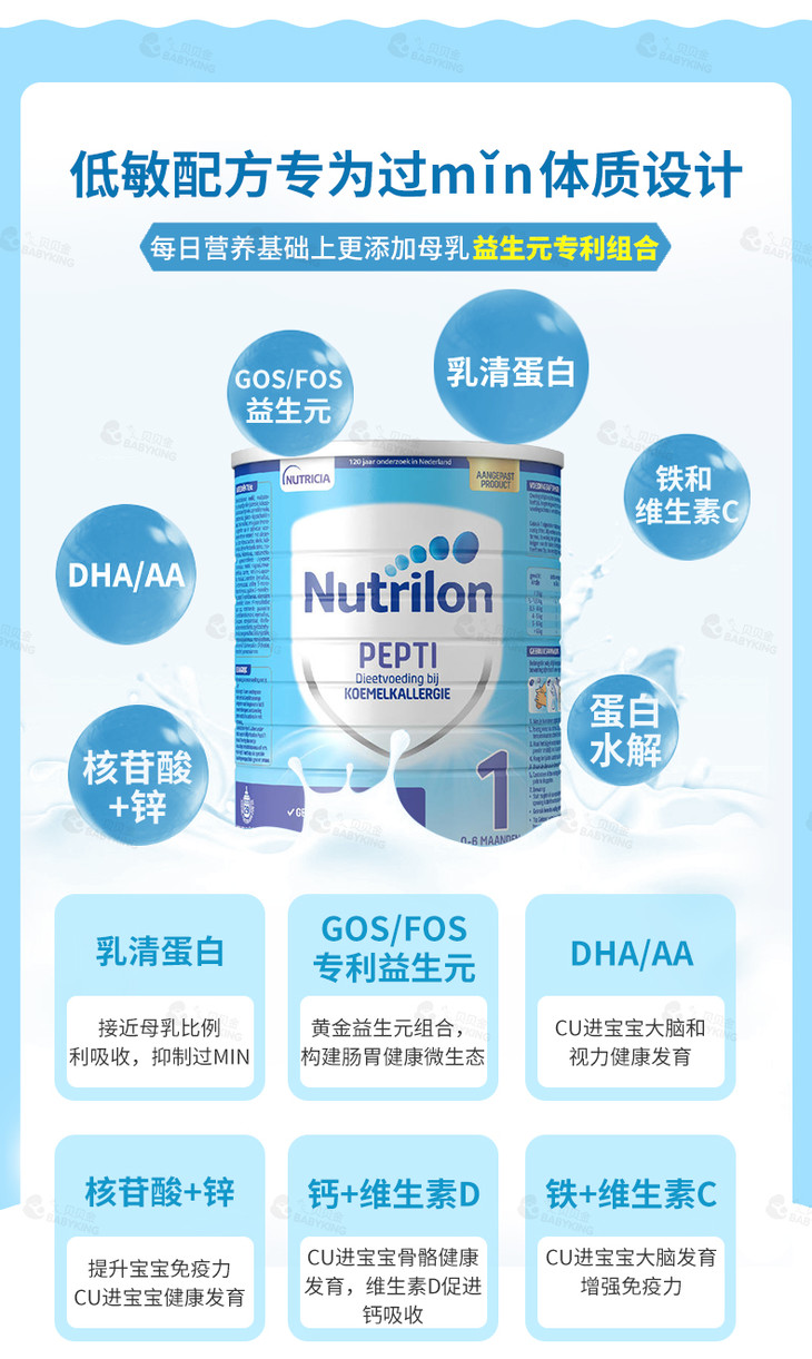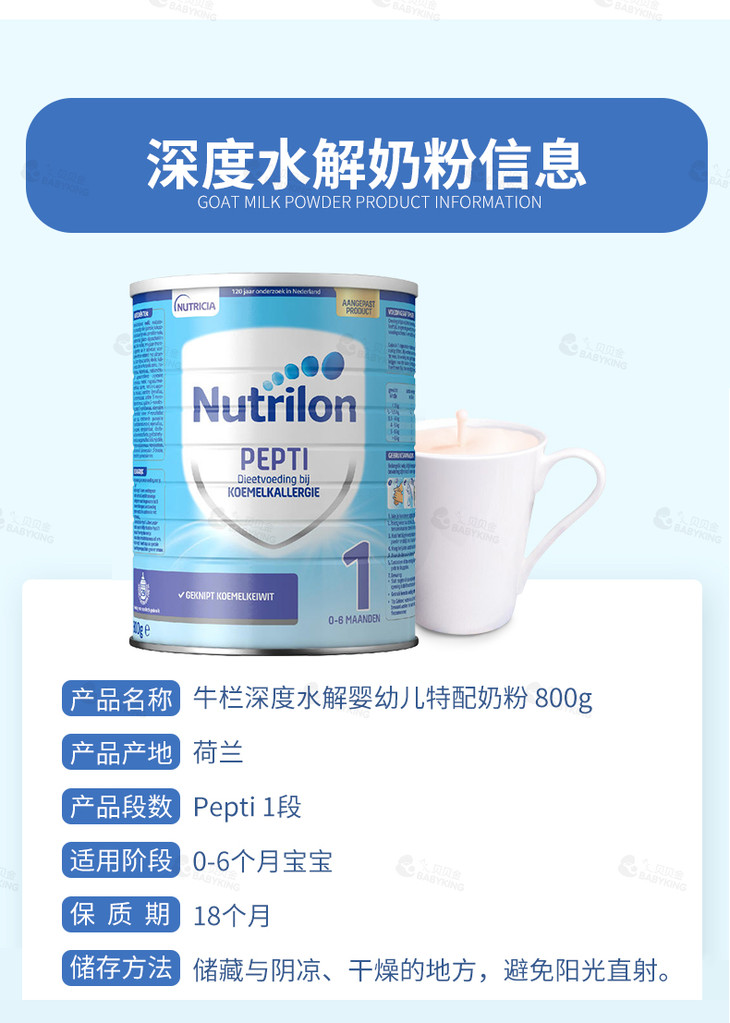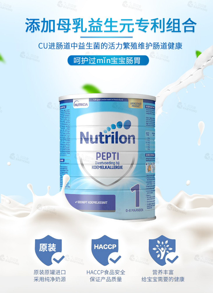 荷兰牛栏Nutrilon 深度水解婴儿奶粉Pepti 1段 800g