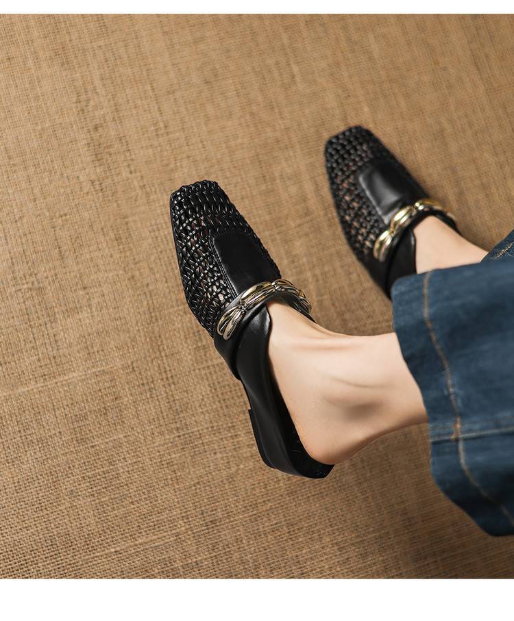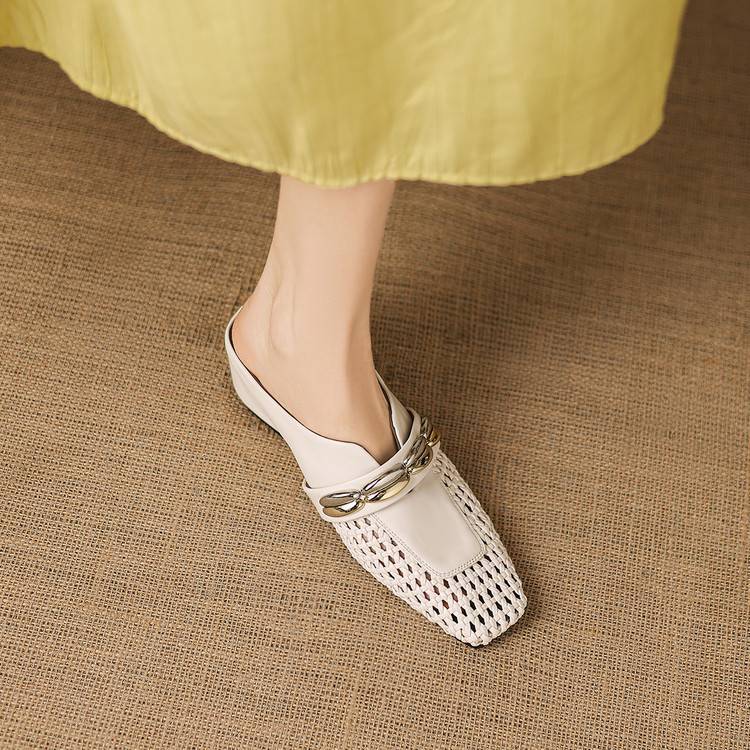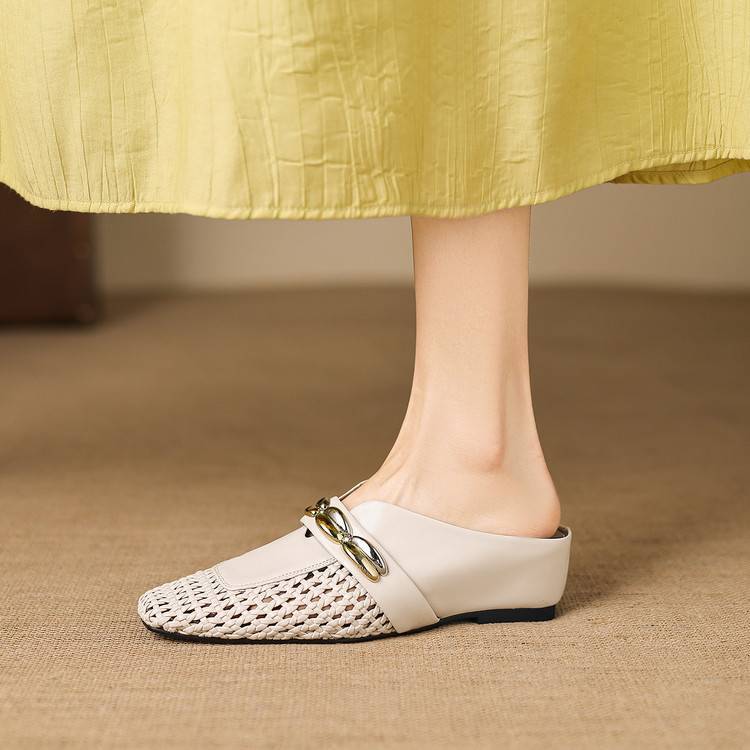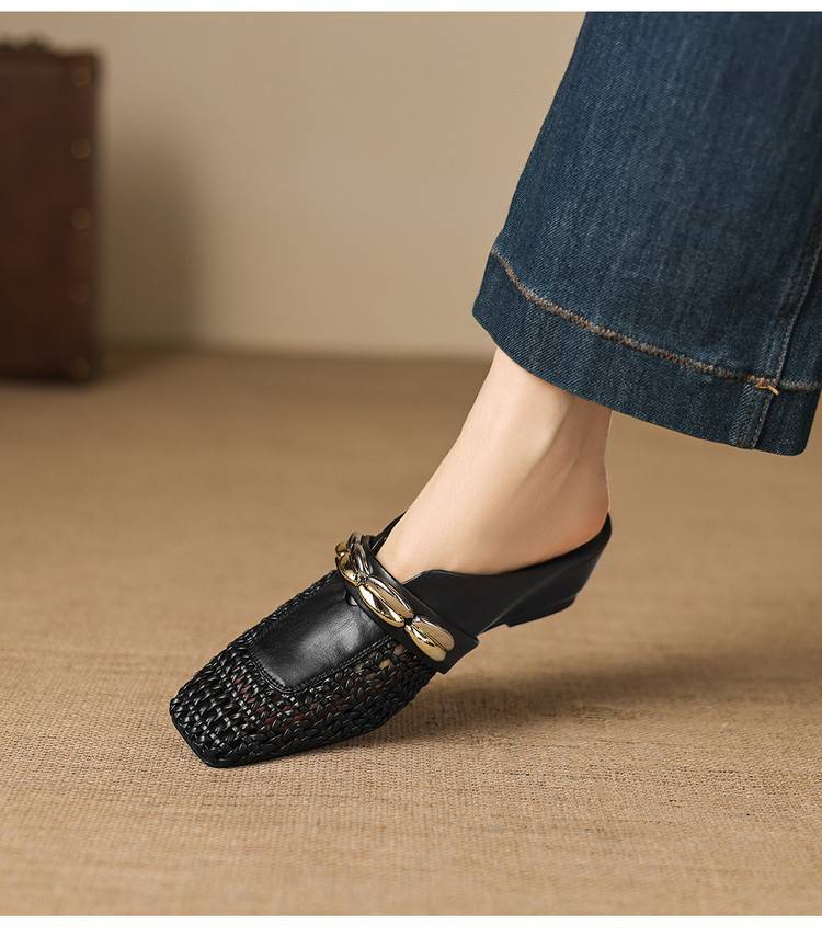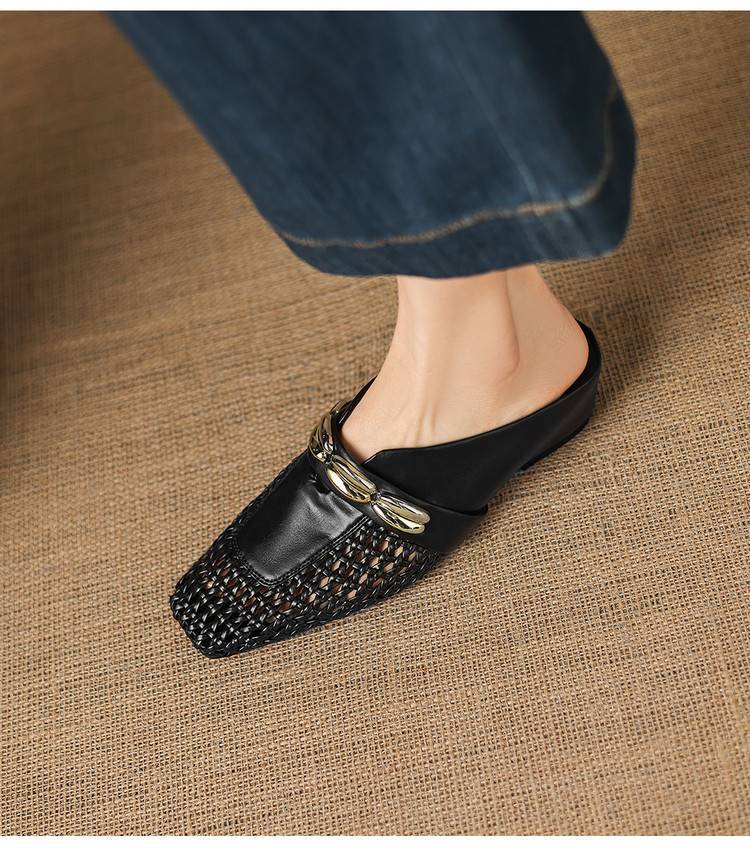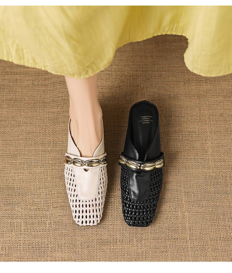 【预售5天】包头凉拖鞋女夏外穿出高级感绝美新款编织拼接镂空内增高方头NGMZR&72-122