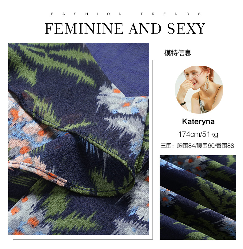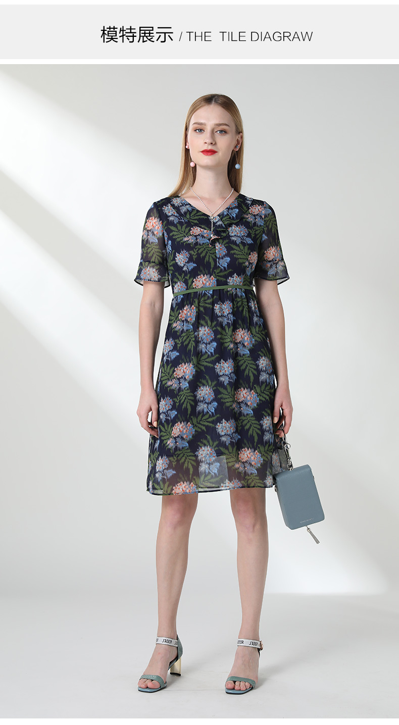 乔万尼夏流行桑蚕丝印花气质高腰度假风真丝连衣裙女中长EN2E588