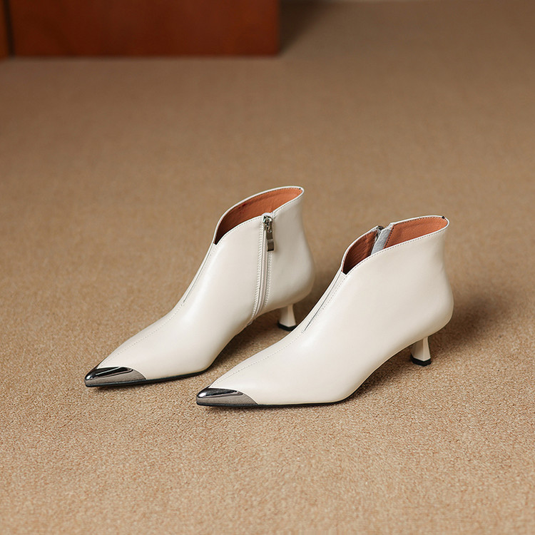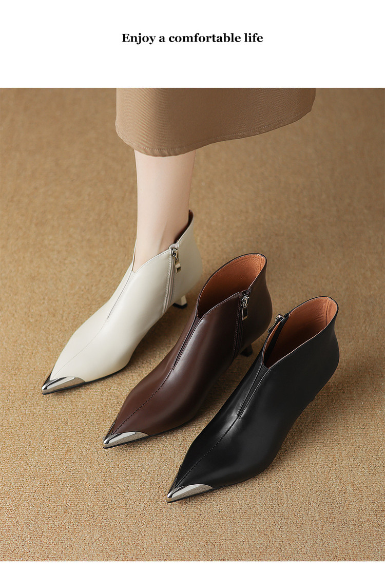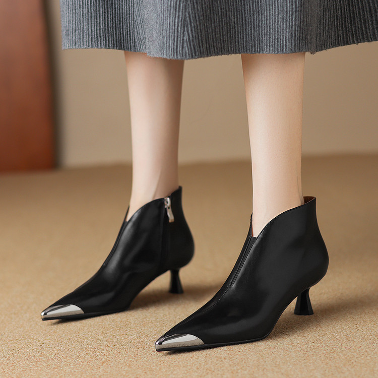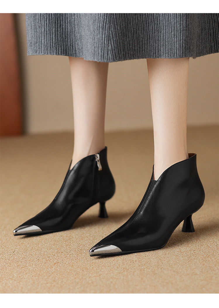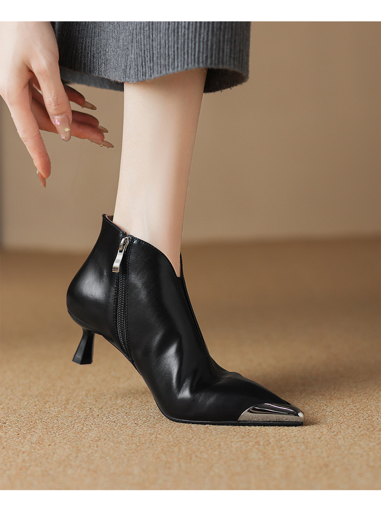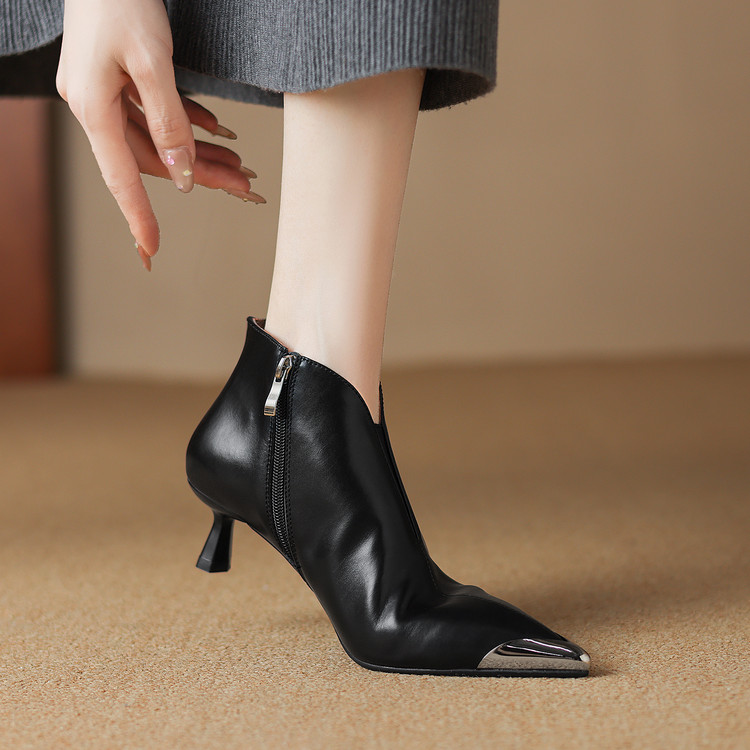 【预售5天】尖头侧拉链短靴女新款猫跟及裸靴洋气金属头软皮短筒瘦瘦靴SLLK&sl-7967