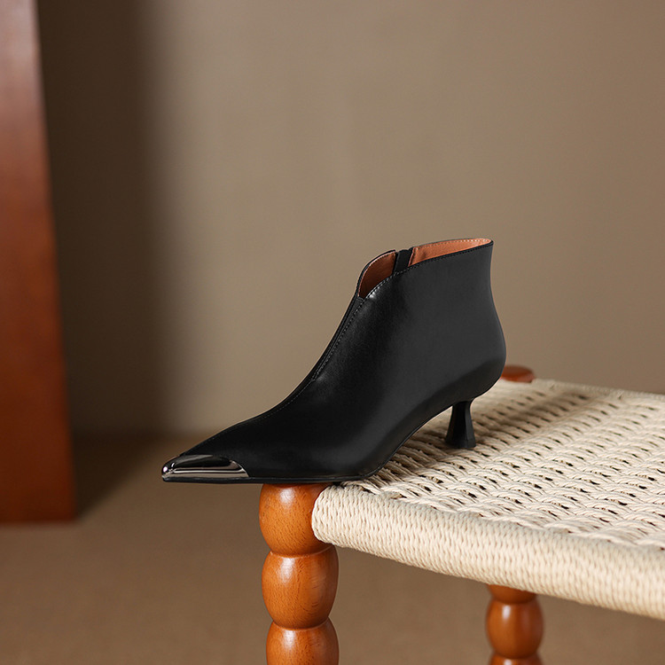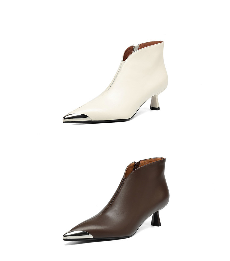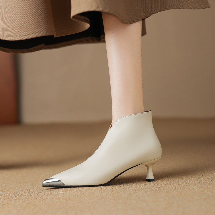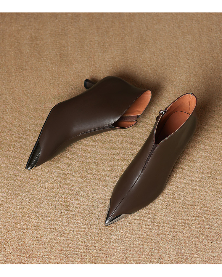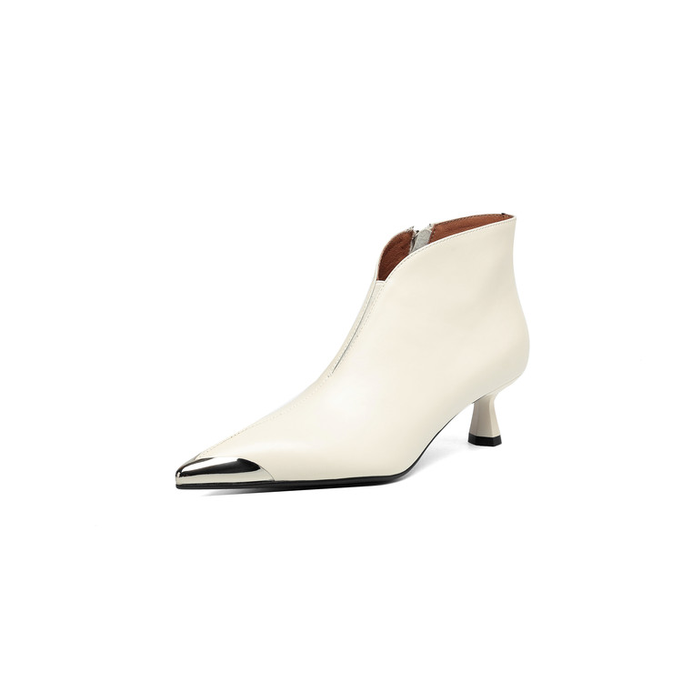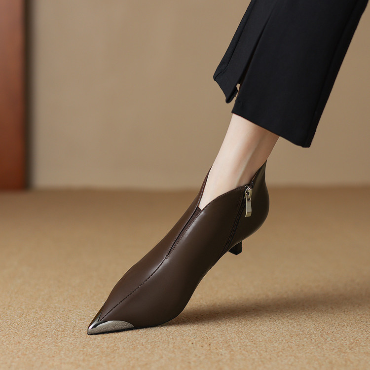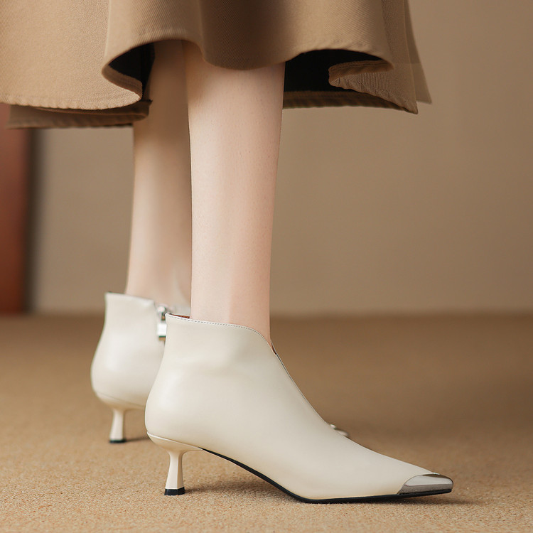 【预售5天】尖头侧拉链短靴女新款猫跟及裸靴洋气金属头软皮短筒瘦瘦靴SLLK&sl-7967