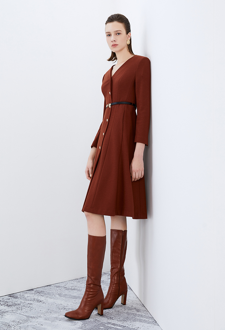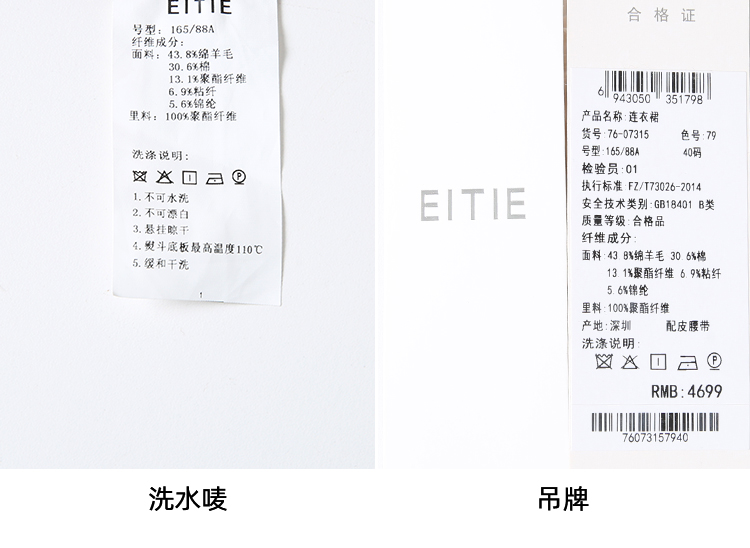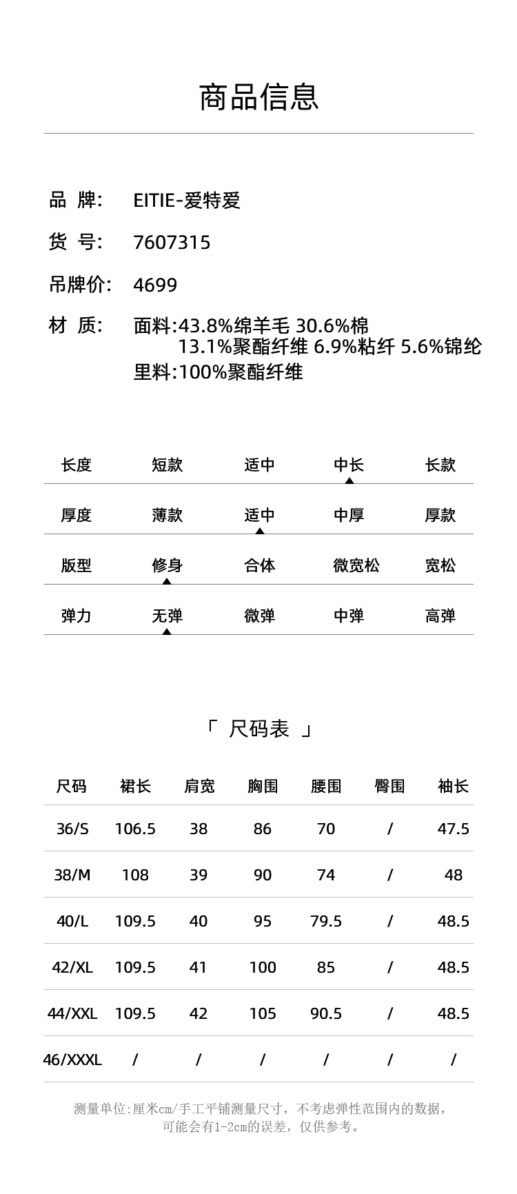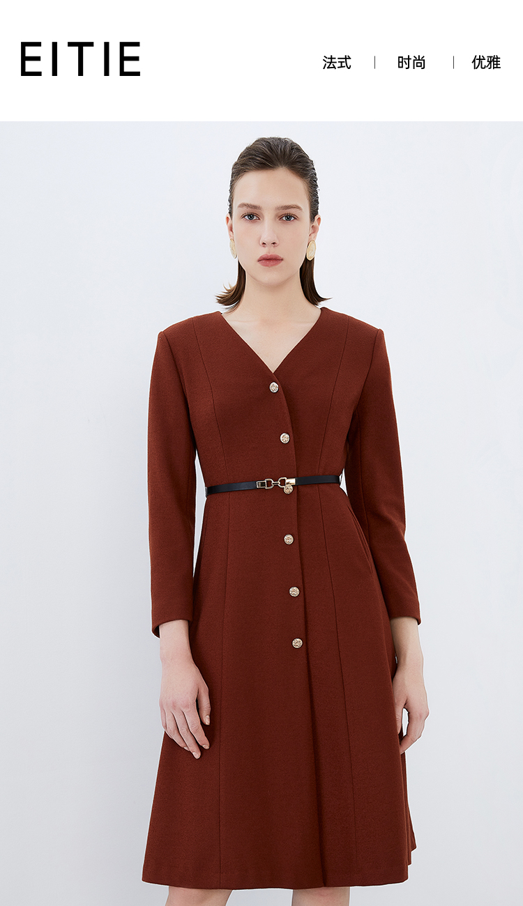 EITIE爱特爱冬季新款法式优雅气质显瘦连衣裙7607315