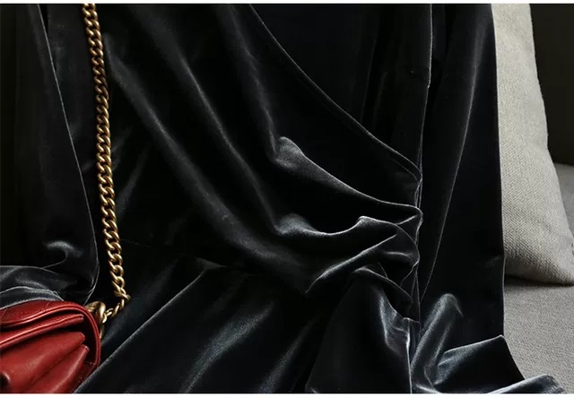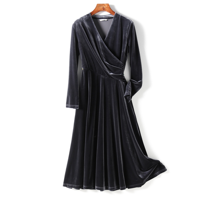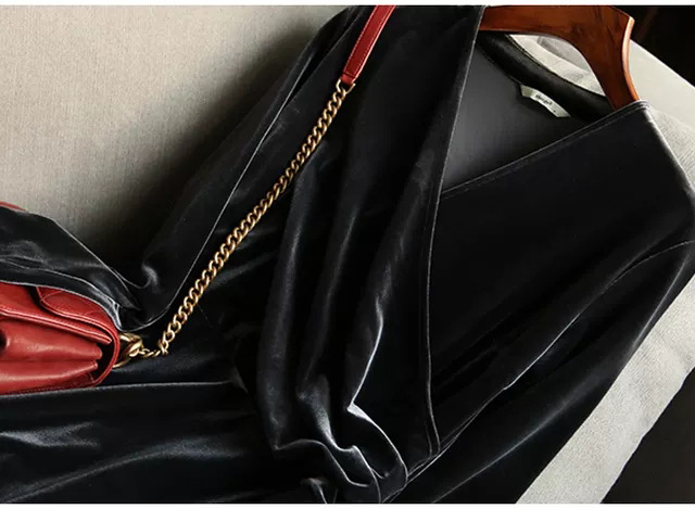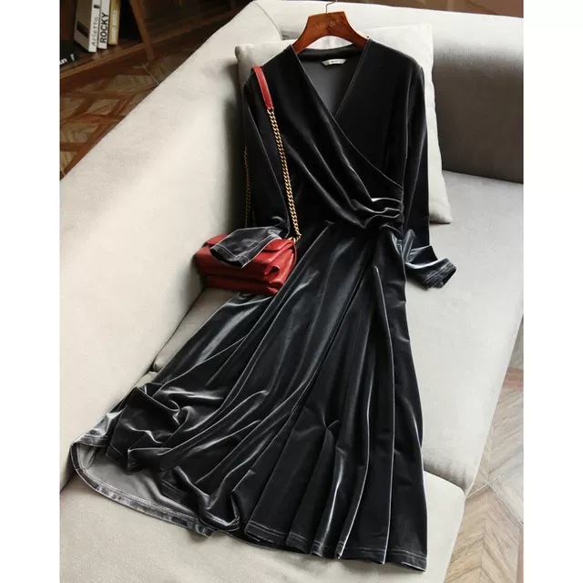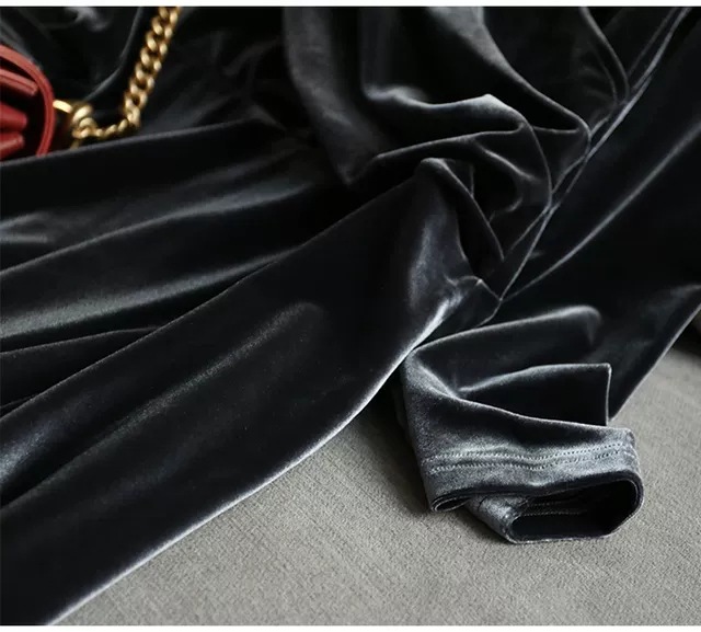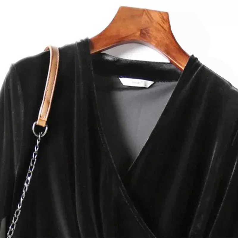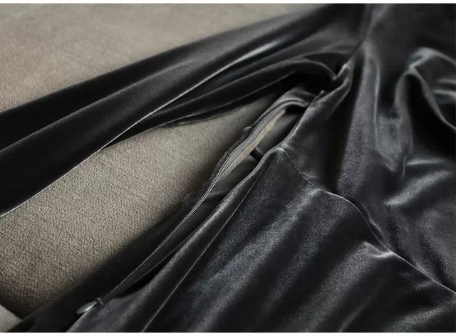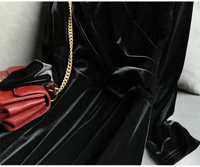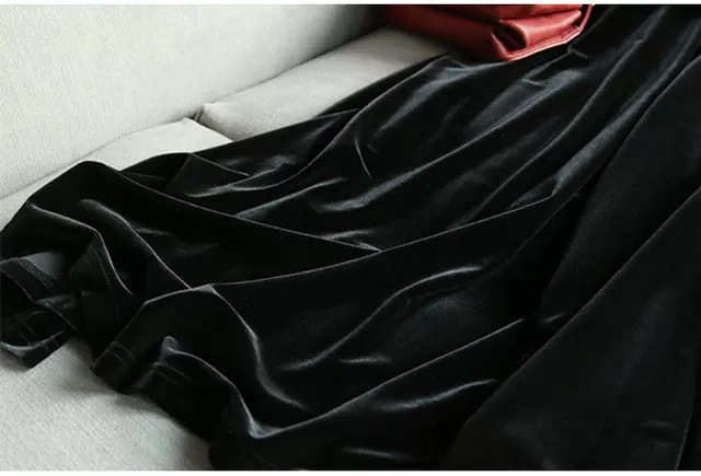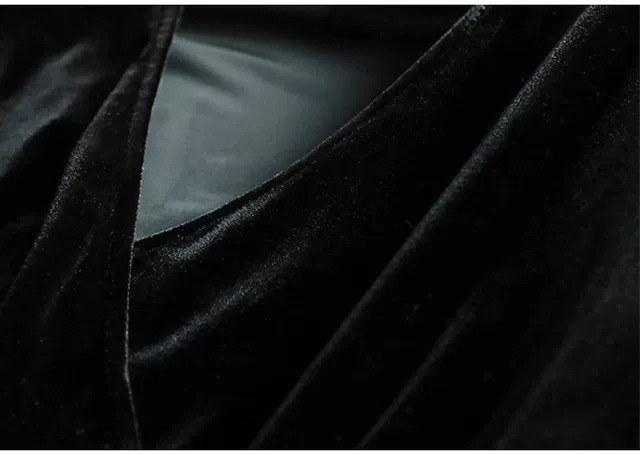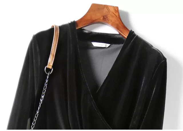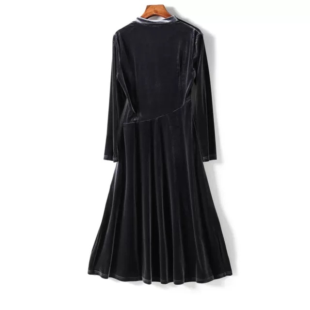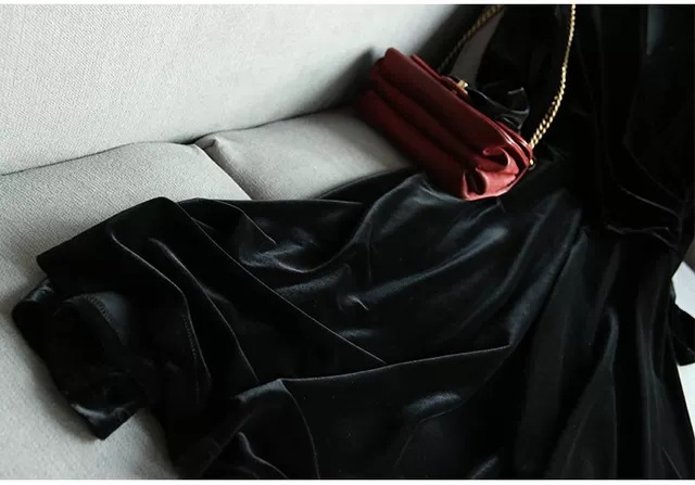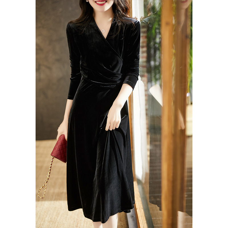 丁摩 黑色金丝绒连衣裙女春秋冬法式收腰高端时尚气质长袖打底裙5ZF-0819