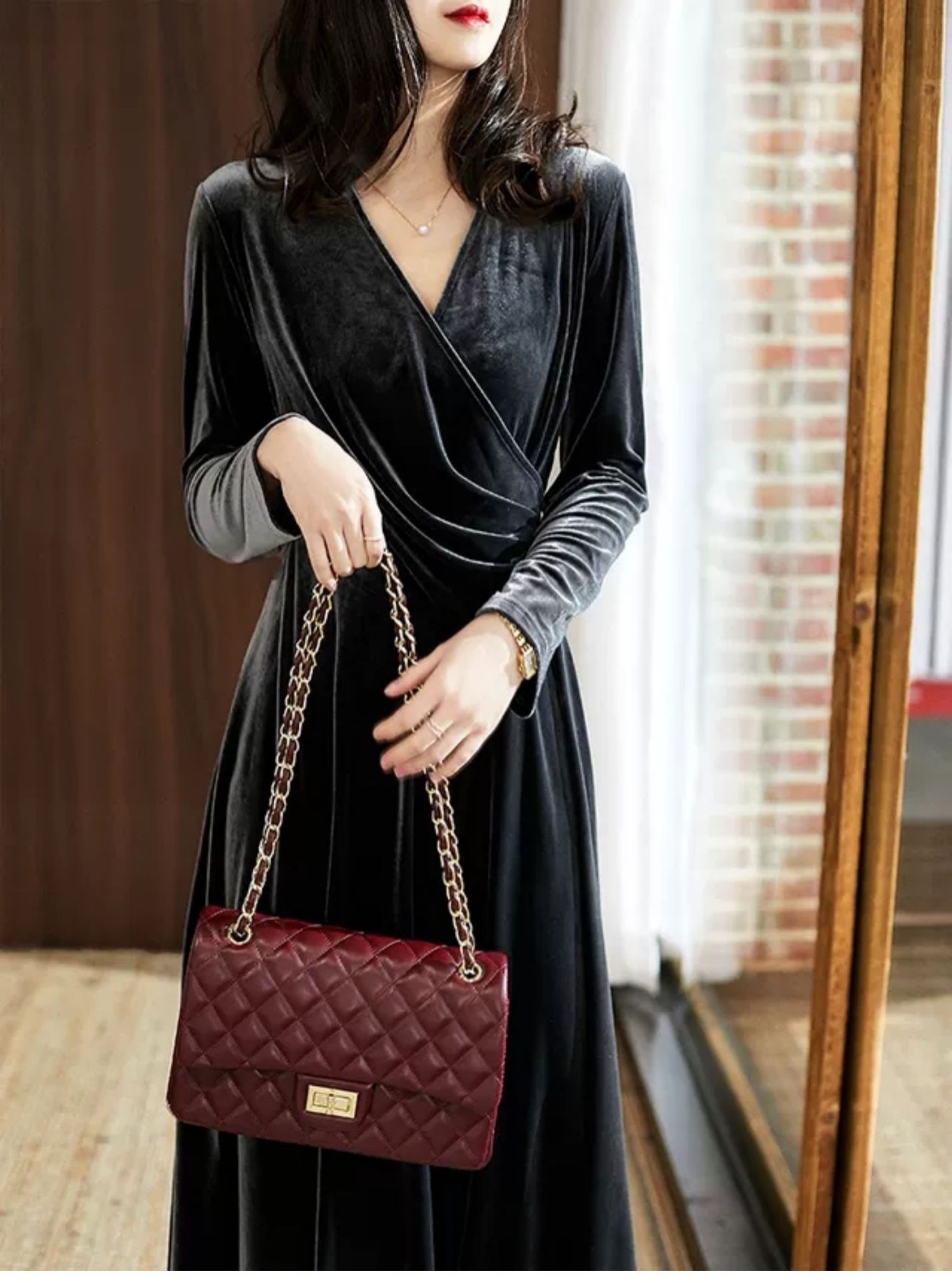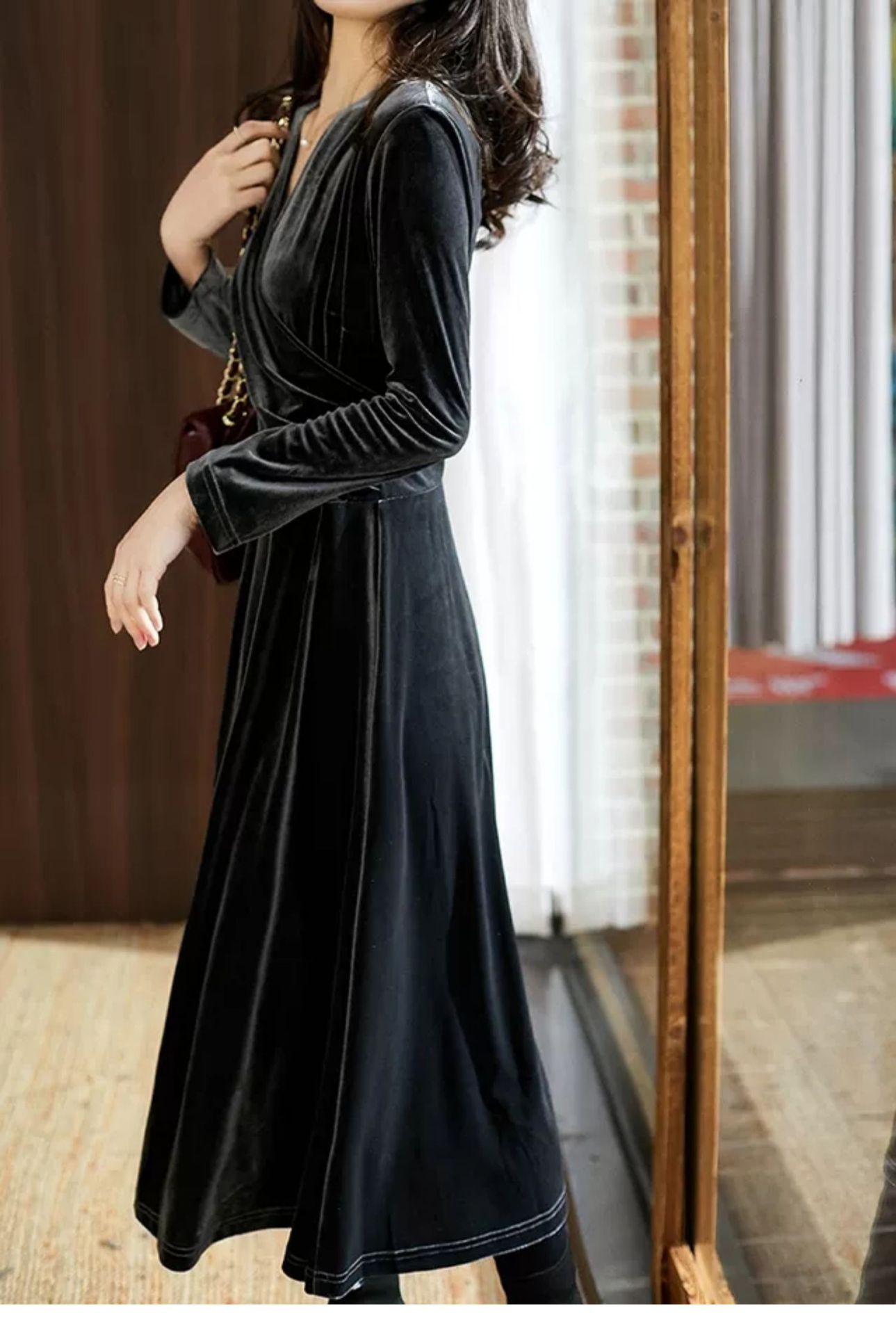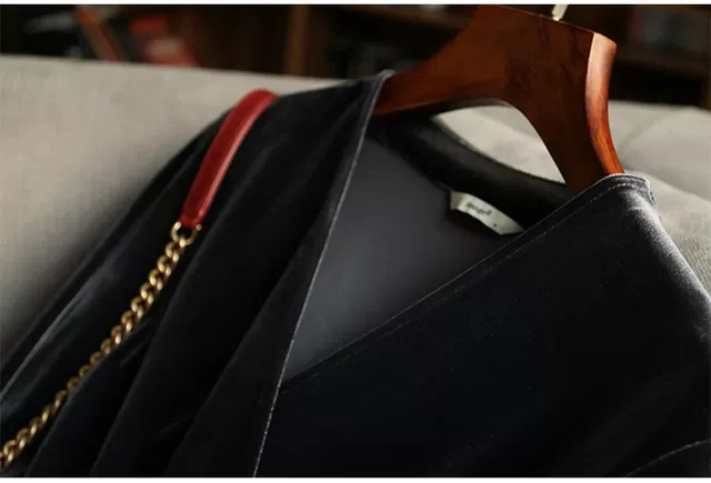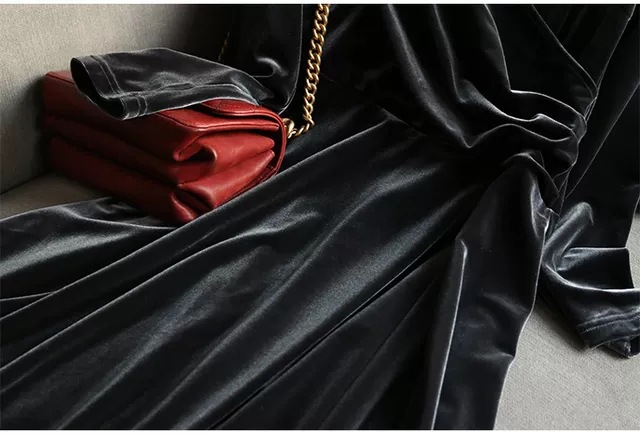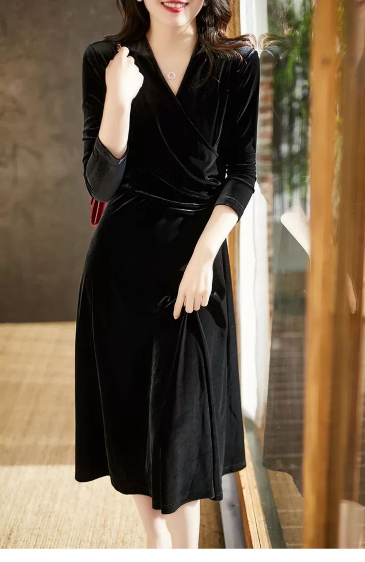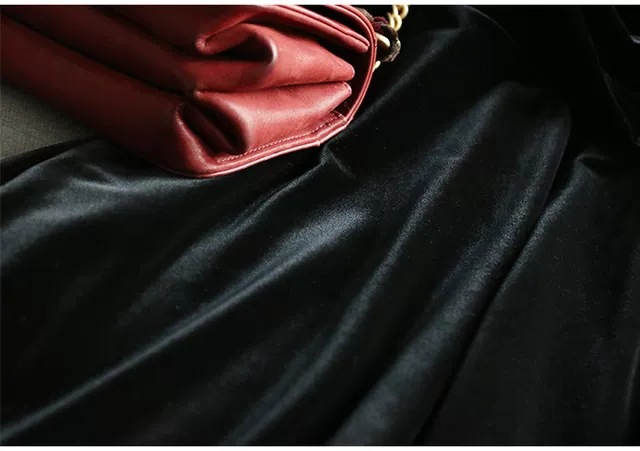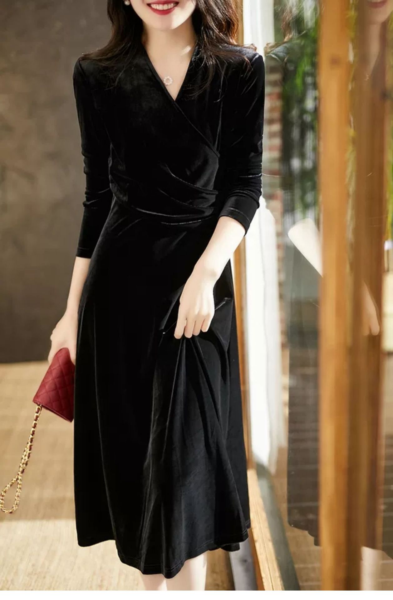 丁摩 黑色金丝绒连衣裙女春秋冬法式收腰高端时尚气质长袖打底裙5ZF-0819