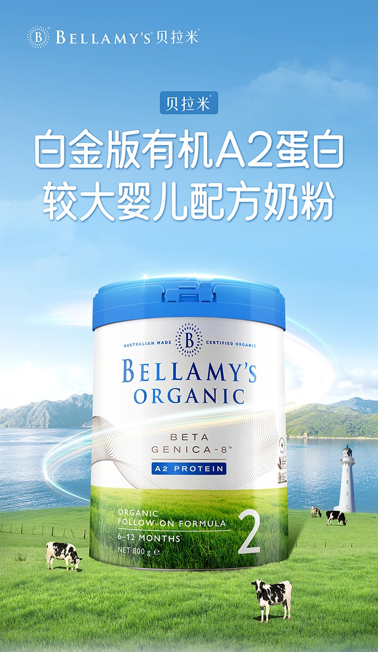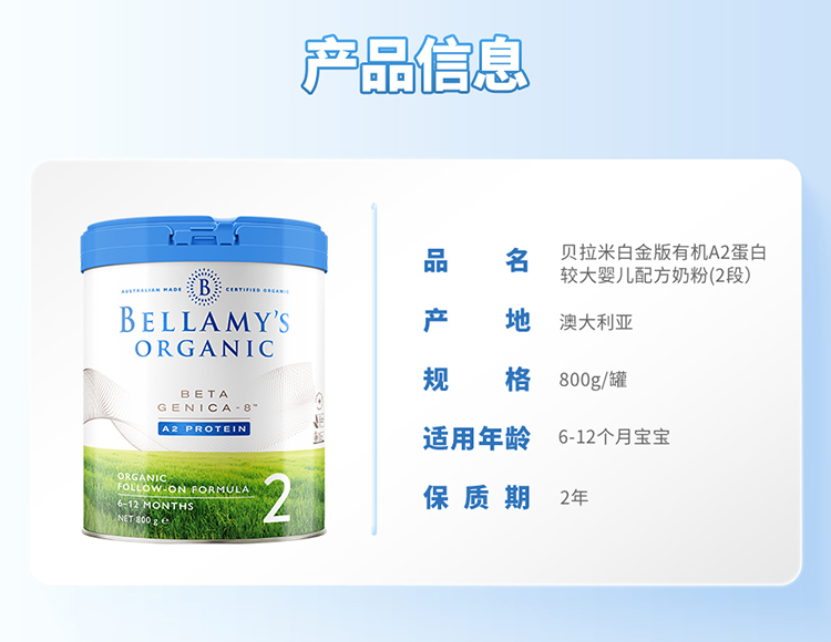 澳洲贝拉米Bellamy‘s Organic白金版有机A2奶粉2段800g(新老包装随机发货)