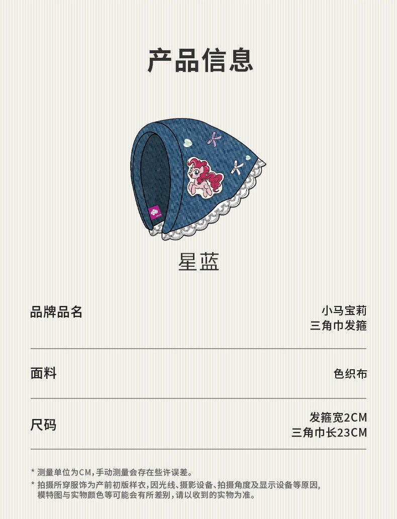 【小马宝莉三角巾发箍】小马宝莉联名年衣儿童女孩发饰头箍卡通风N9261019P01年衣