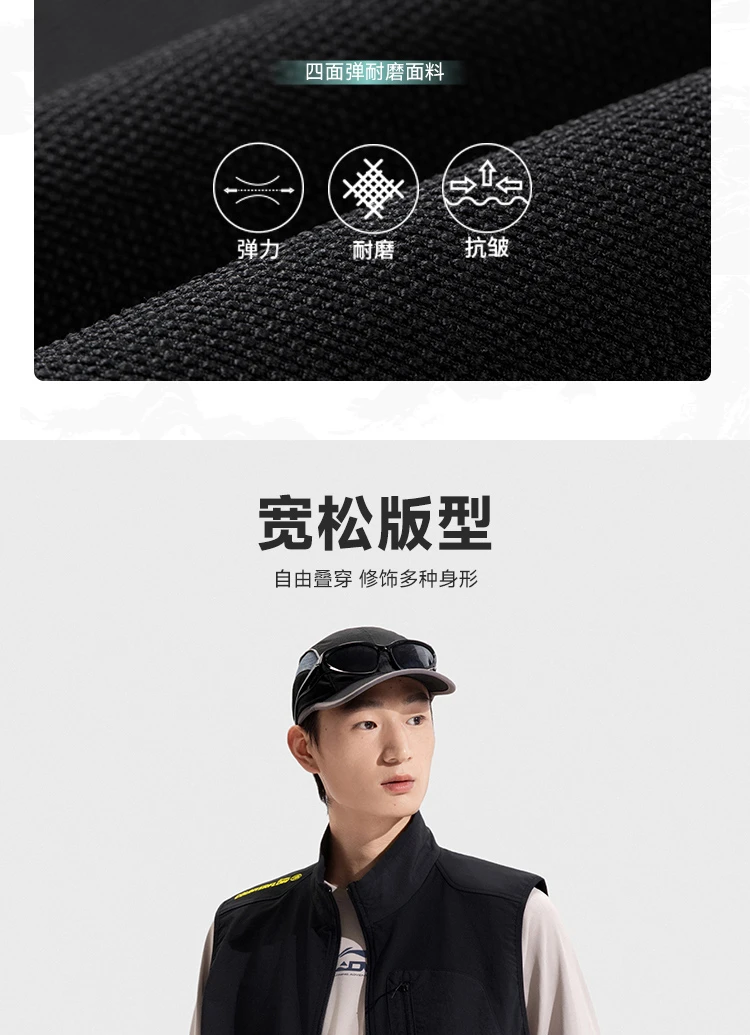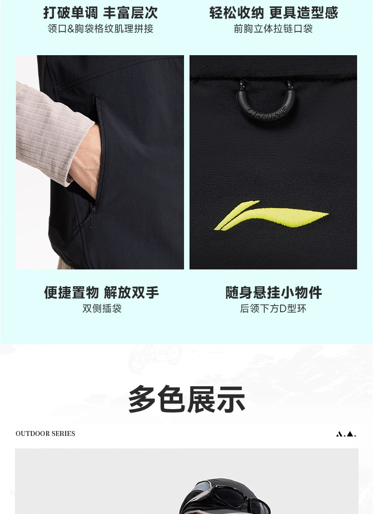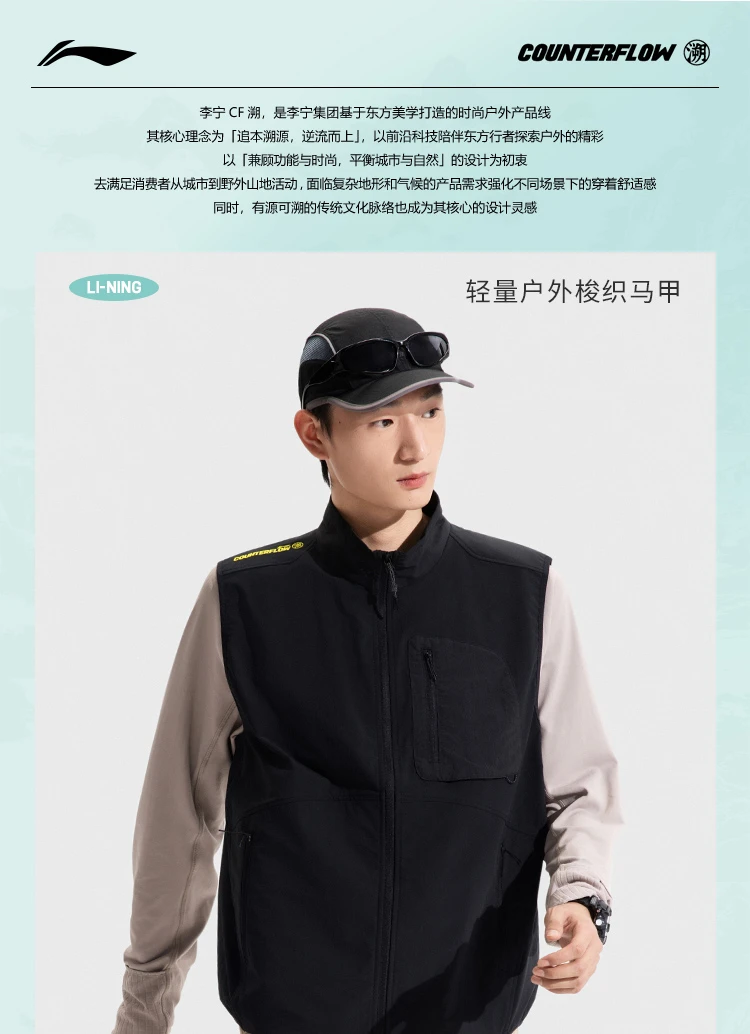 李宁CF溯男女同款反光防泼水宽松单马甲AMDV109
