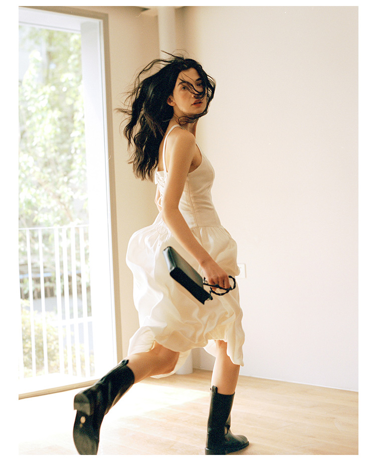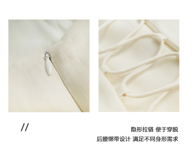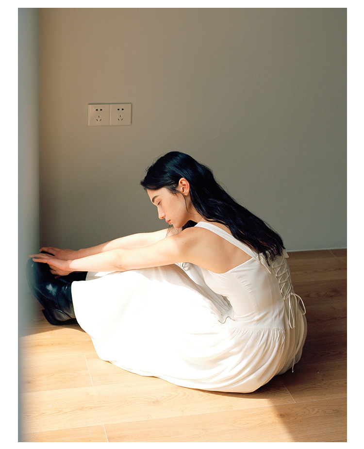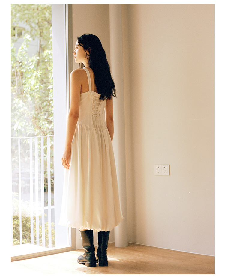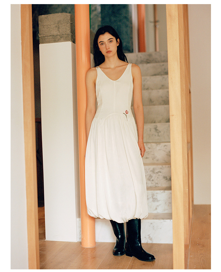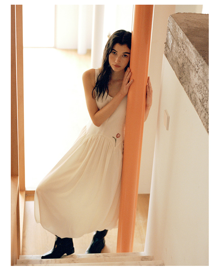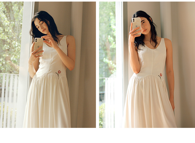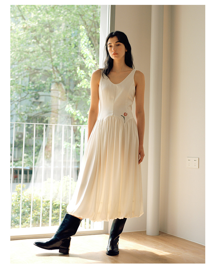 Even Vintage |绒面缎面料 V领艺术感背带连衣裙刺绣郁金香小白裙