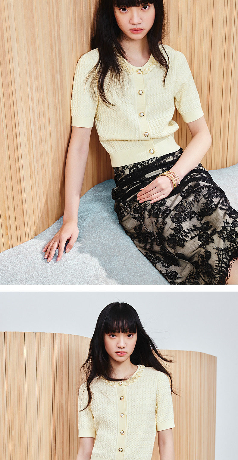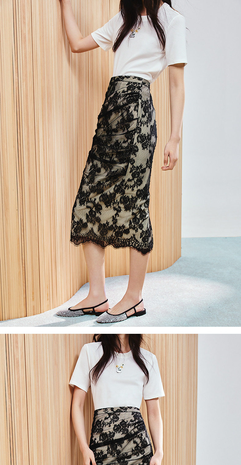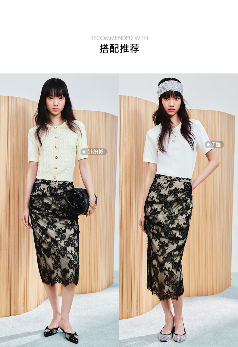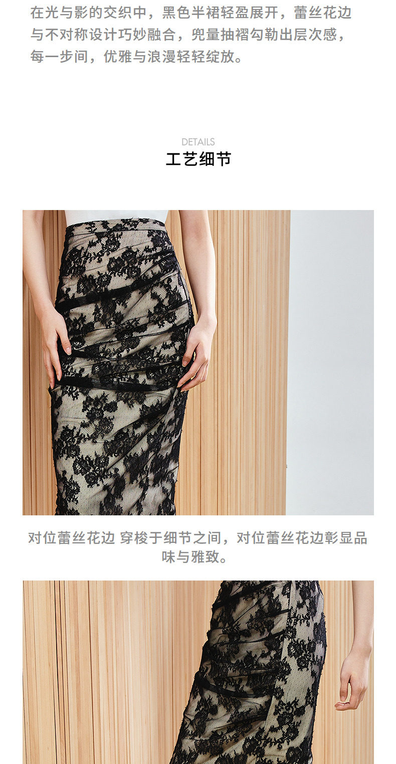 【商场同款-小雏菊系列】MAXRIENY不对称设计抽褶优雅蕾丝半裙(货号:MC86SK007)