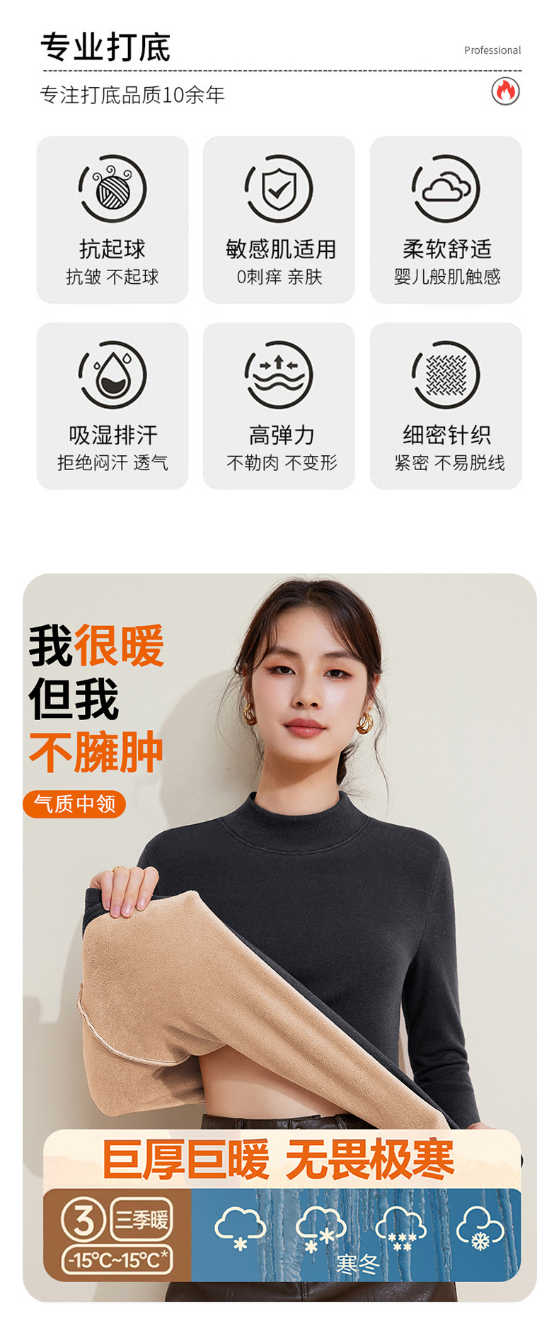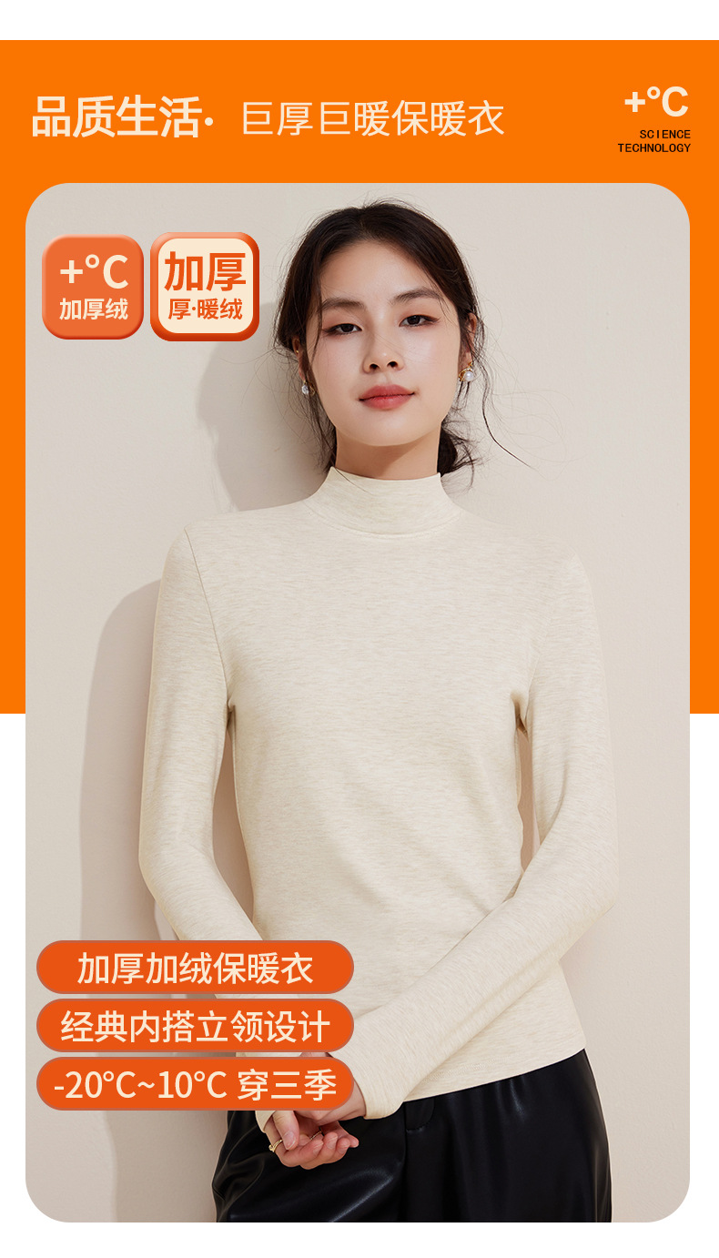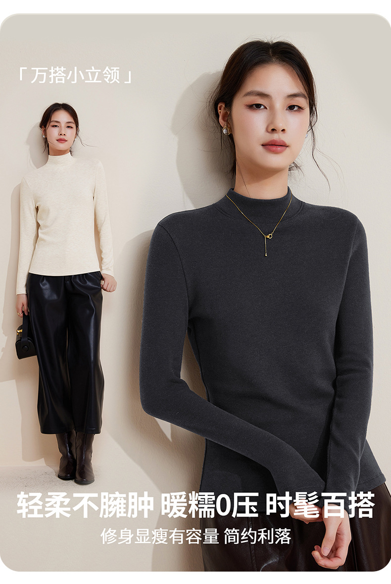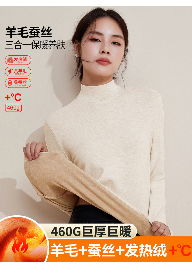 「自j」全新升级【铂金会员146/天猫189/差价43】(10113)洛诗琳巨厚中领发热绒打底衫2025冬季羊毛蚕丝修身加绒上衣