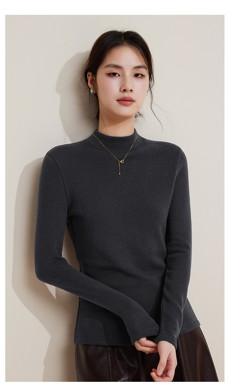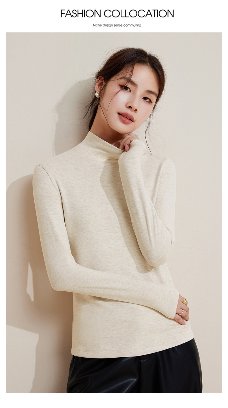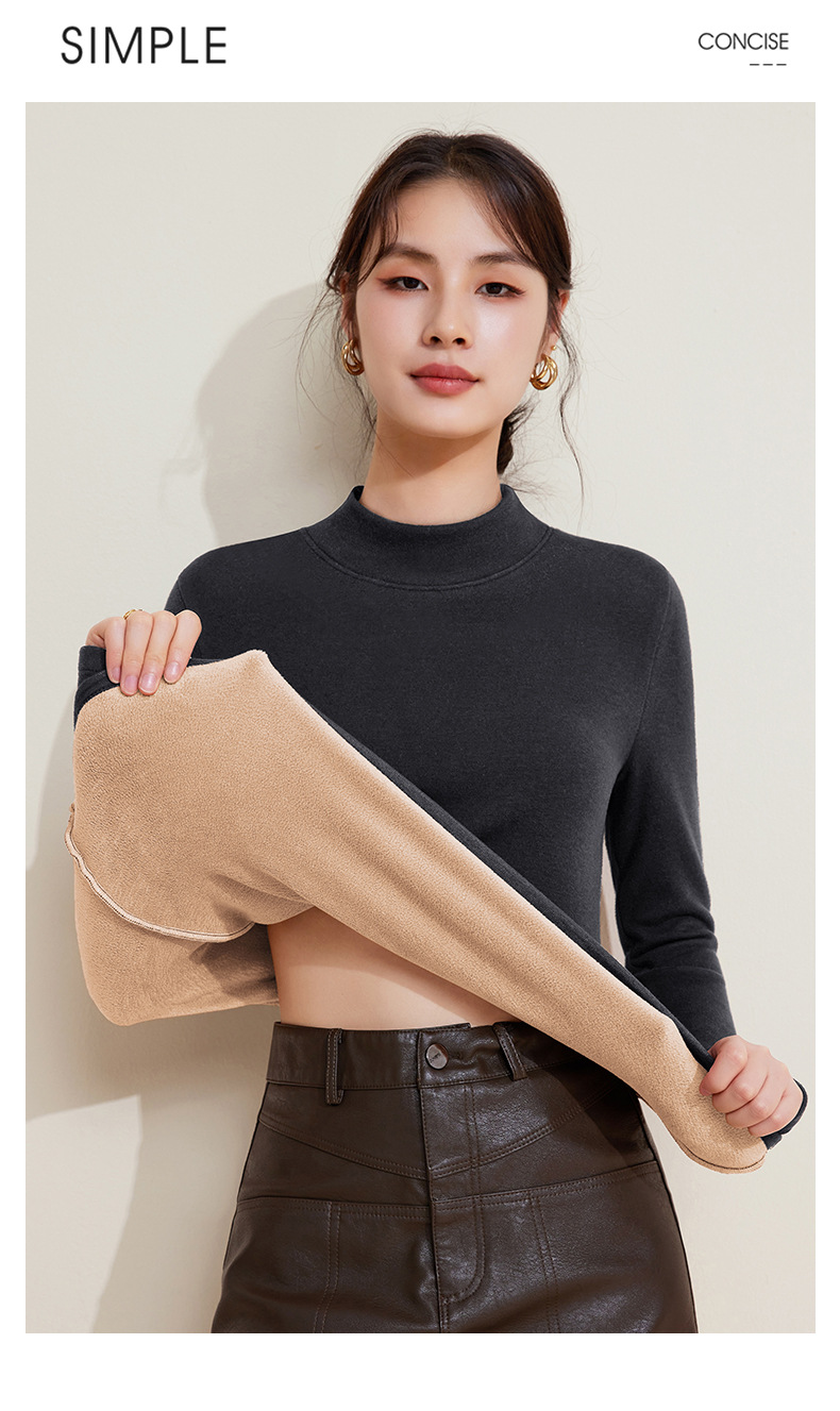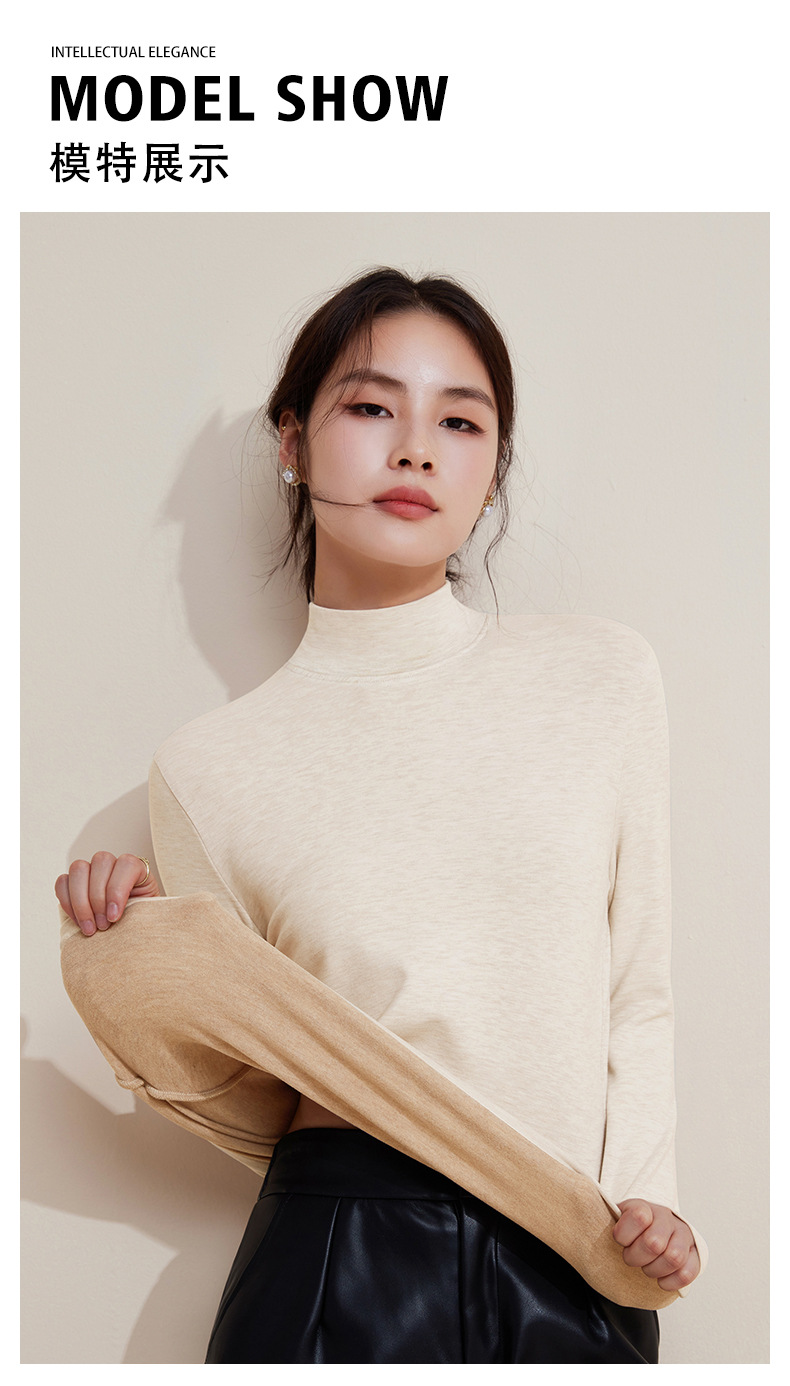 「自j」全新升级【铂金会员146/天猫189/差价43】(10113)洛诗琳巨厚中领发热绒打底衫2025冬季羊毛蚕丝修身加绒上衣