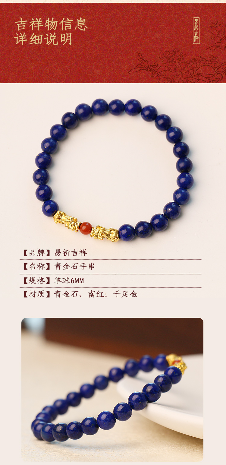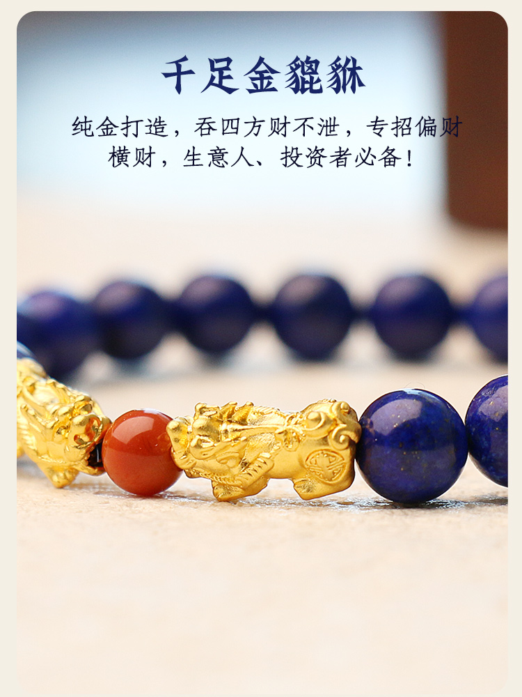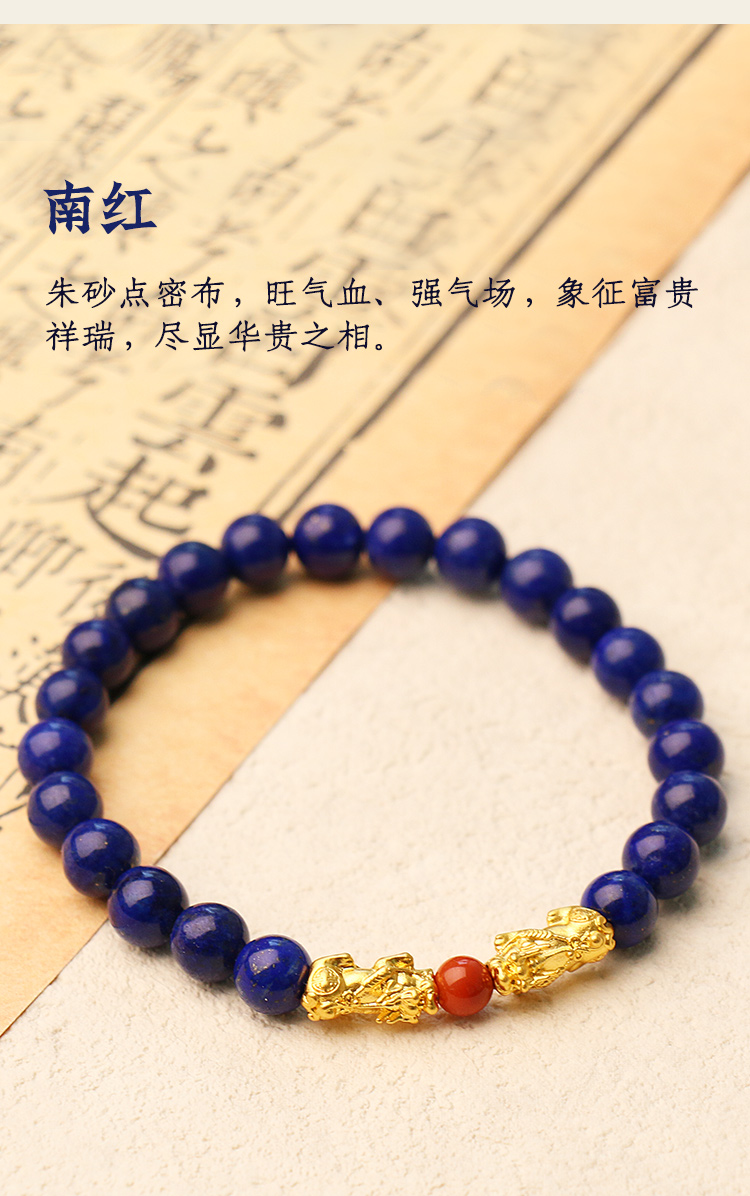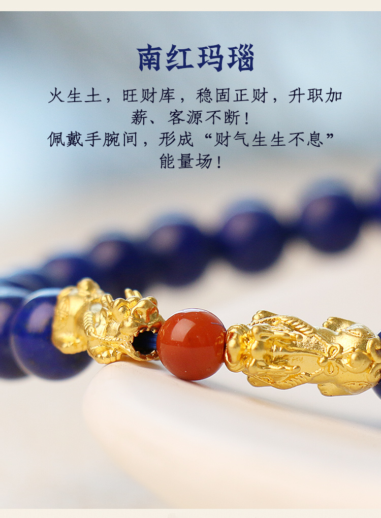 董易奇天然青金石手链男女款招财转运南红手串情侣串珠饰品