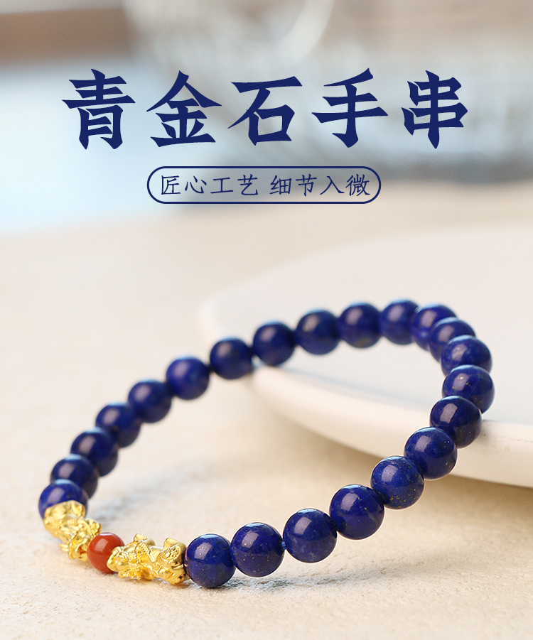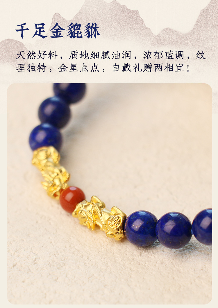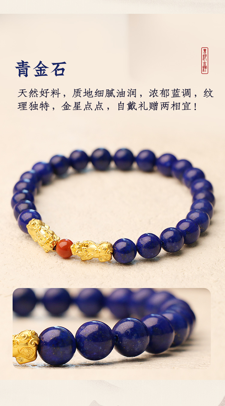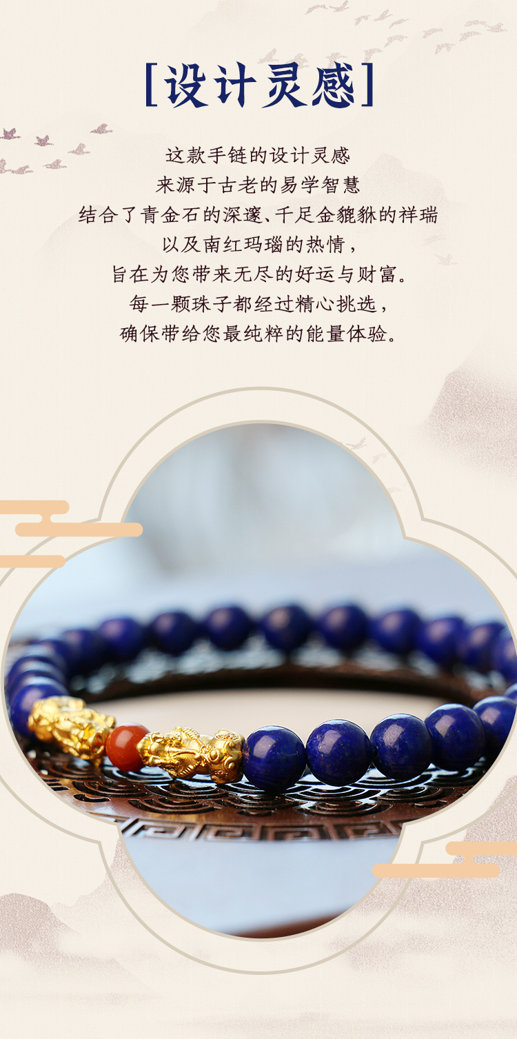 董易奇天然青金石手链男女款招财转运南红手串情侣串珠饰品