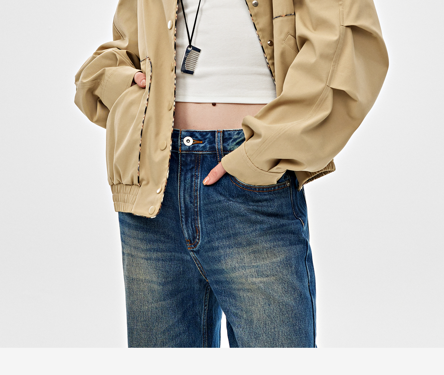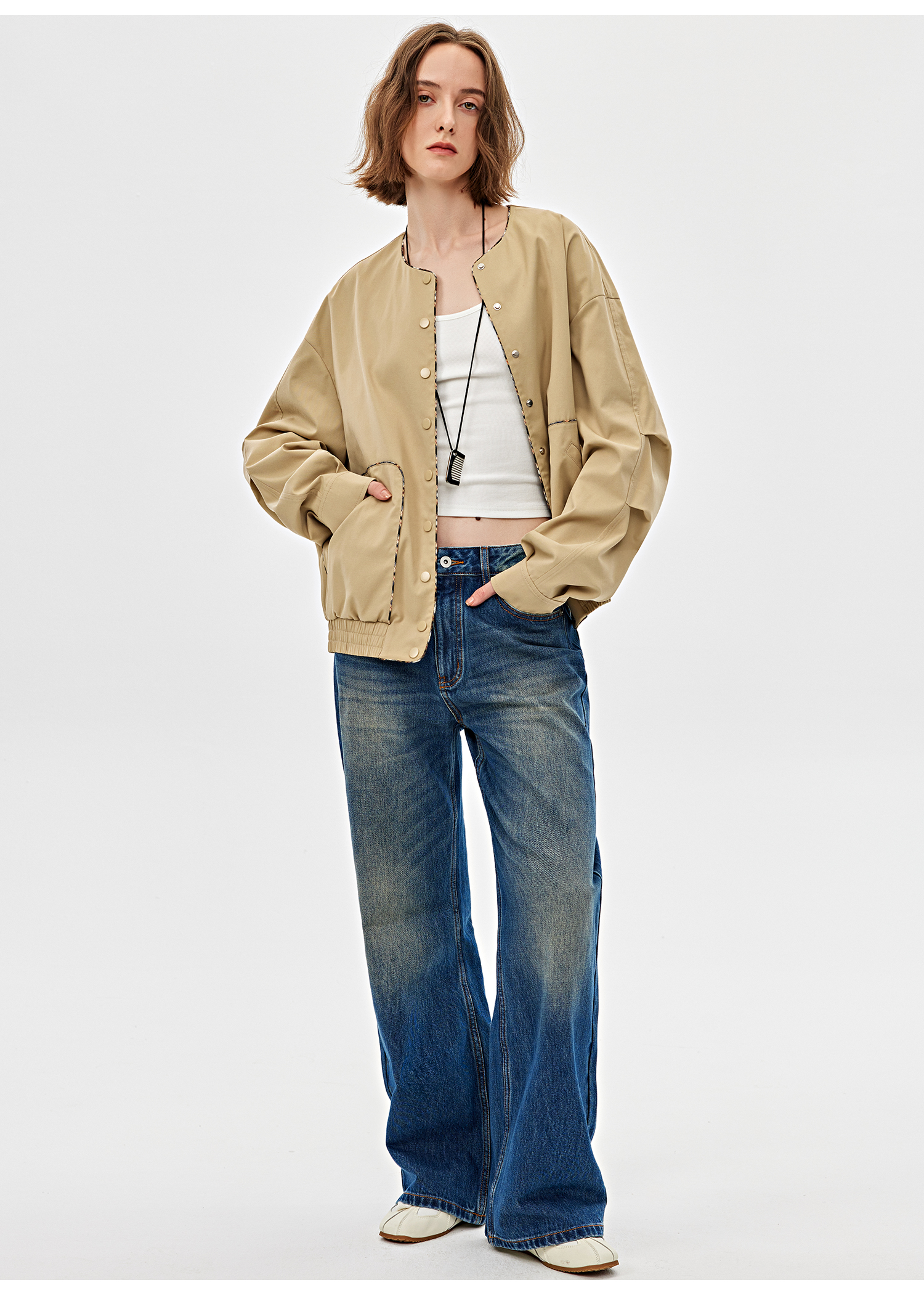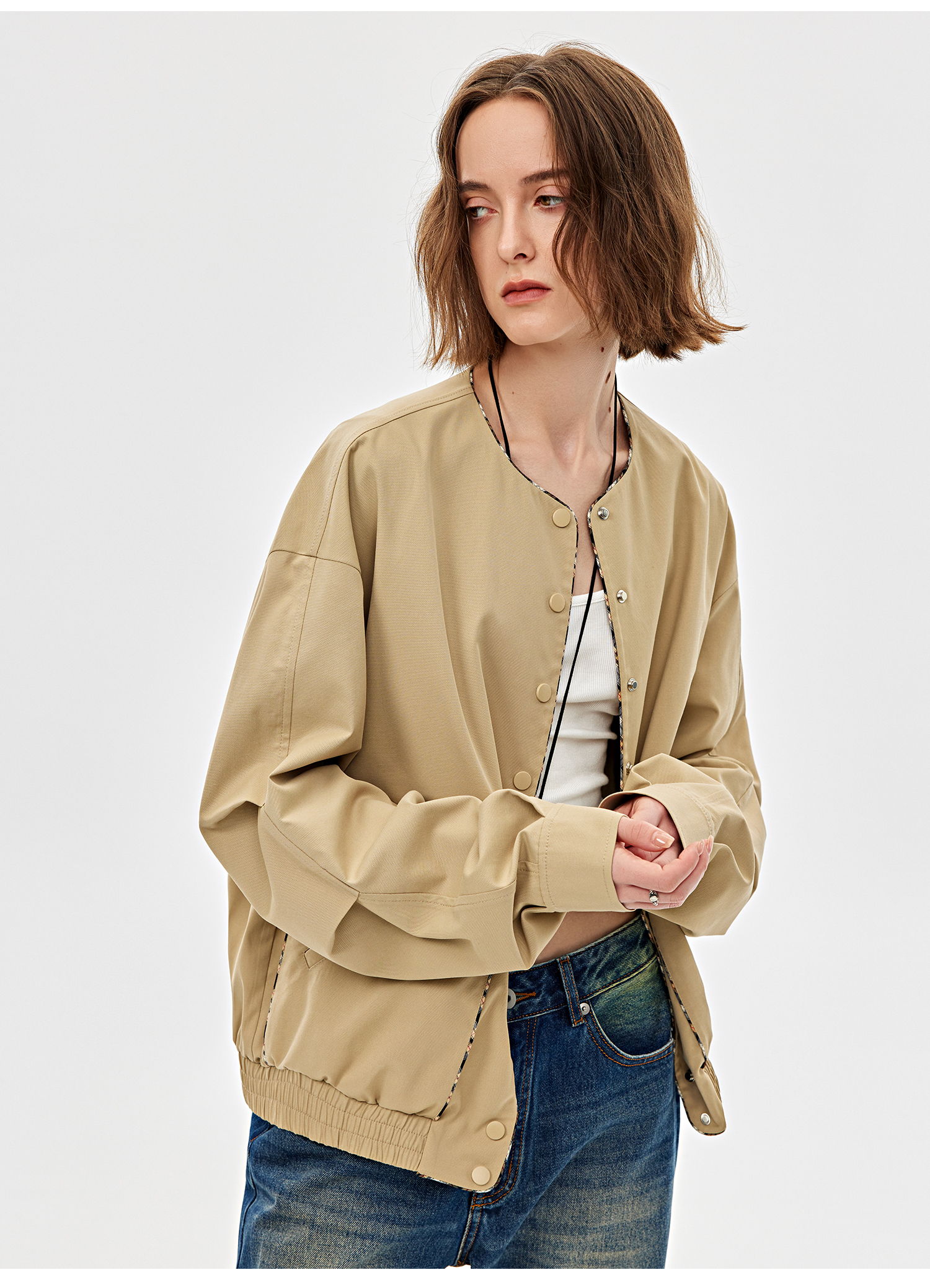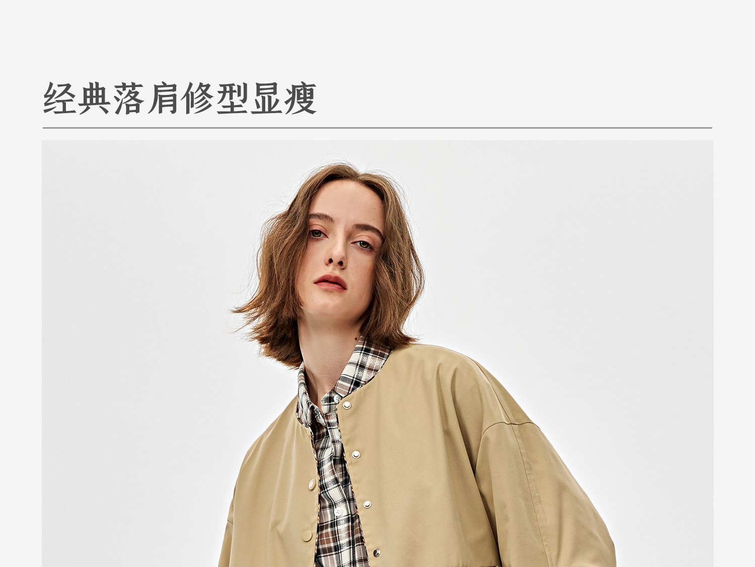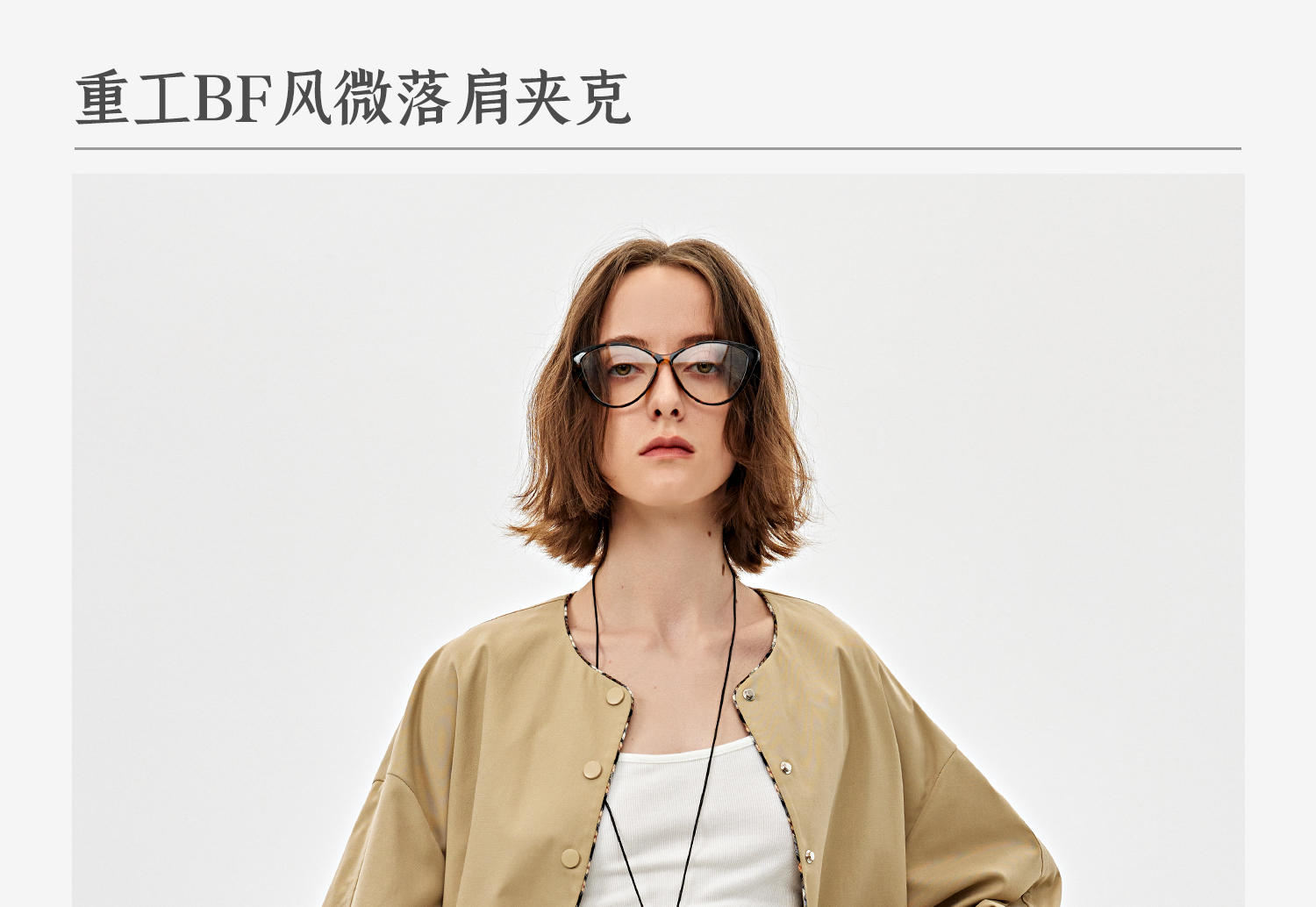 西嘉棉麻混纺重工格纹饰边休闲飞行夹克短款外套女春秋单排扣上衣WT2501012
