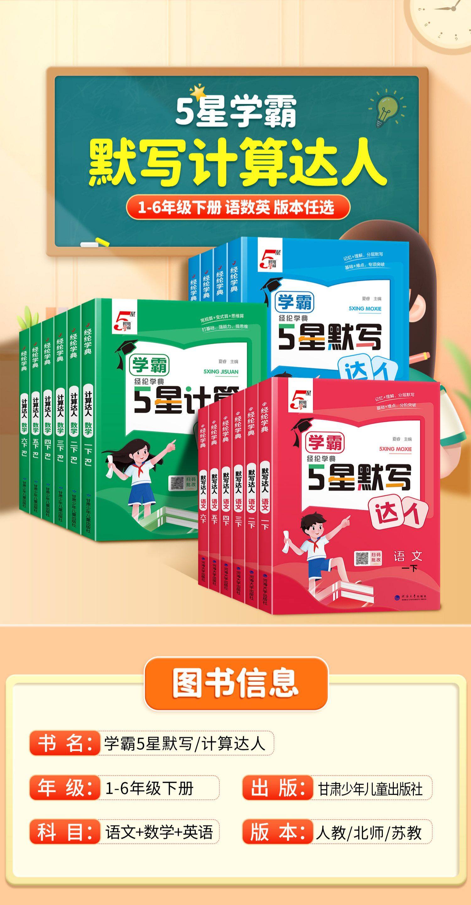 2026春学经纶学典5星默写达人语文默写达人英语、数学5星计算达人、123456年级下册任选人教版同步练习口算天天练