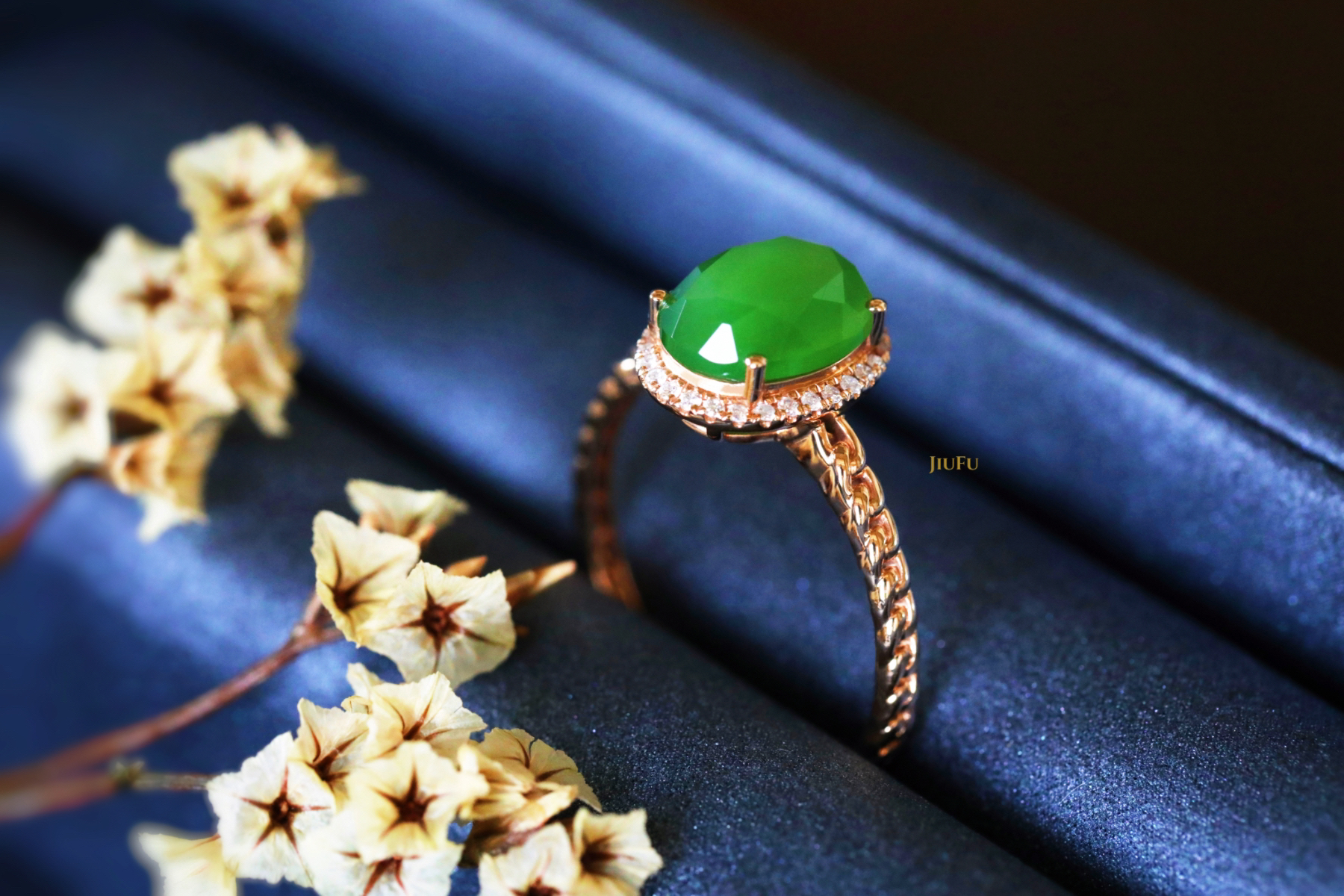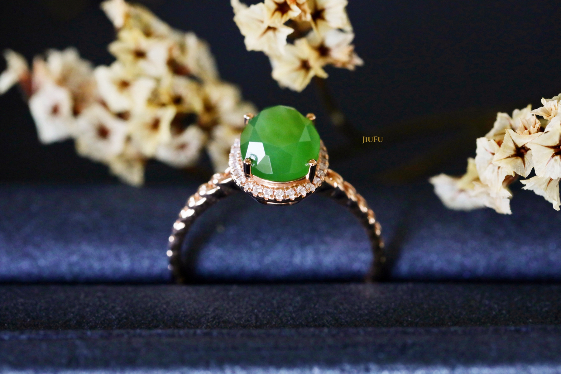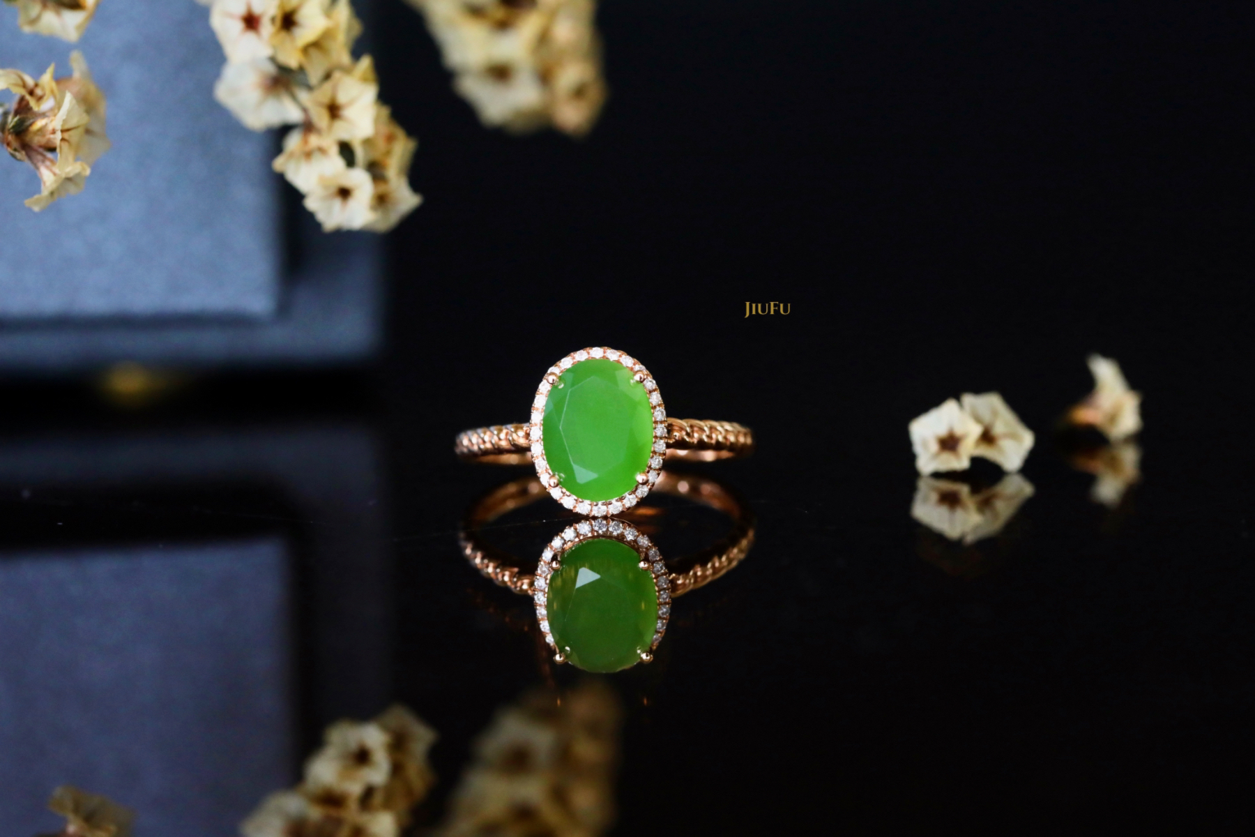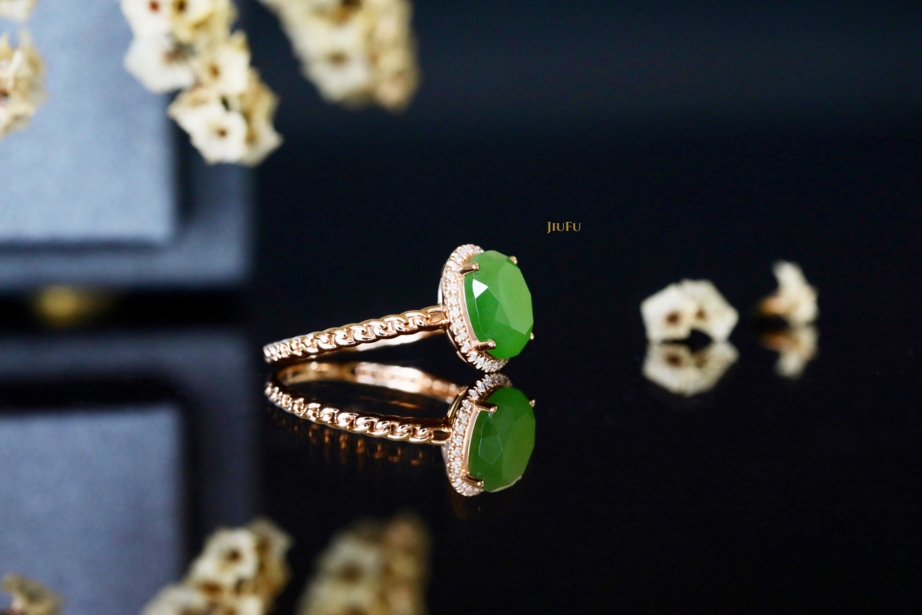 18K玫瑰金和田玉(碧玉)戒指